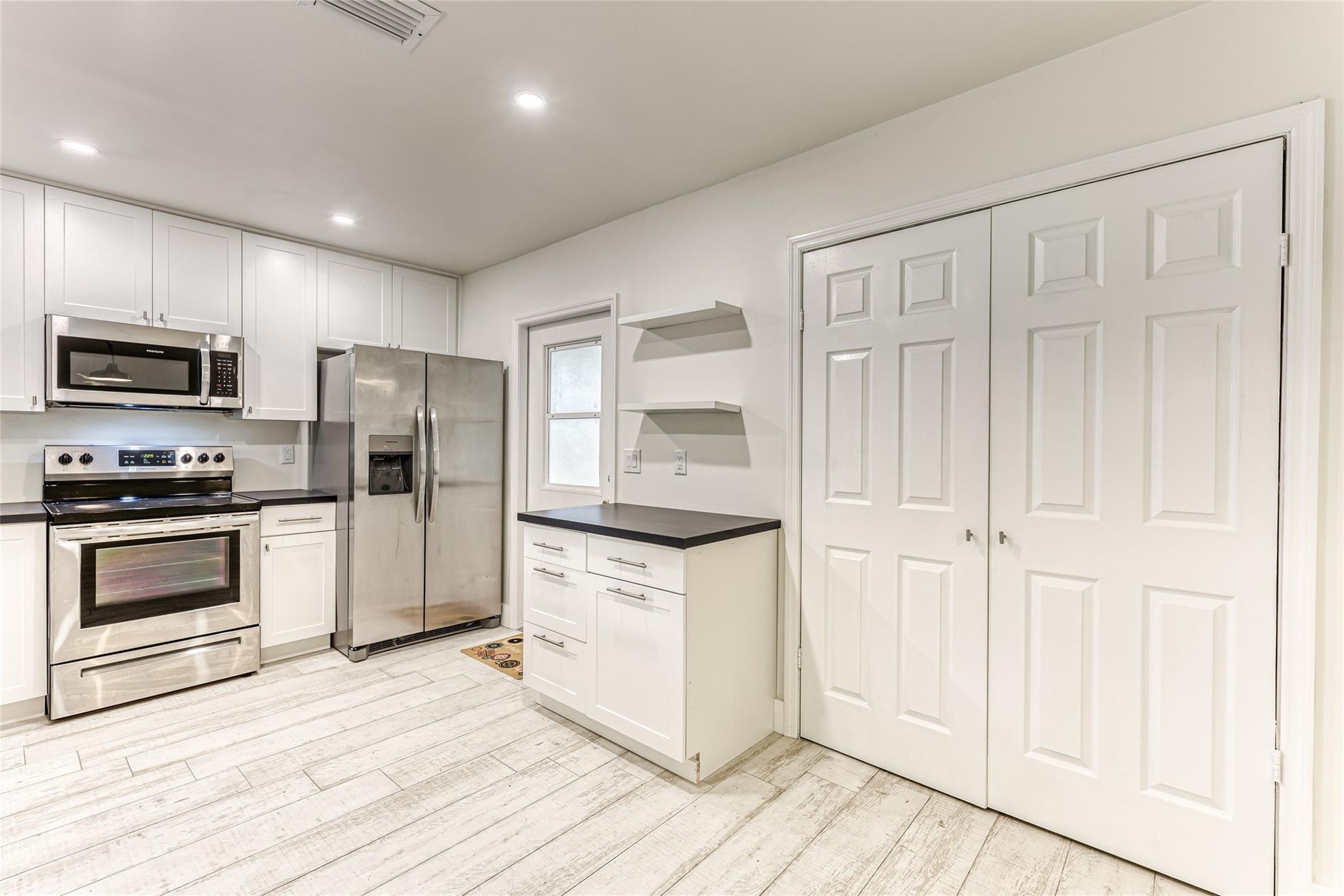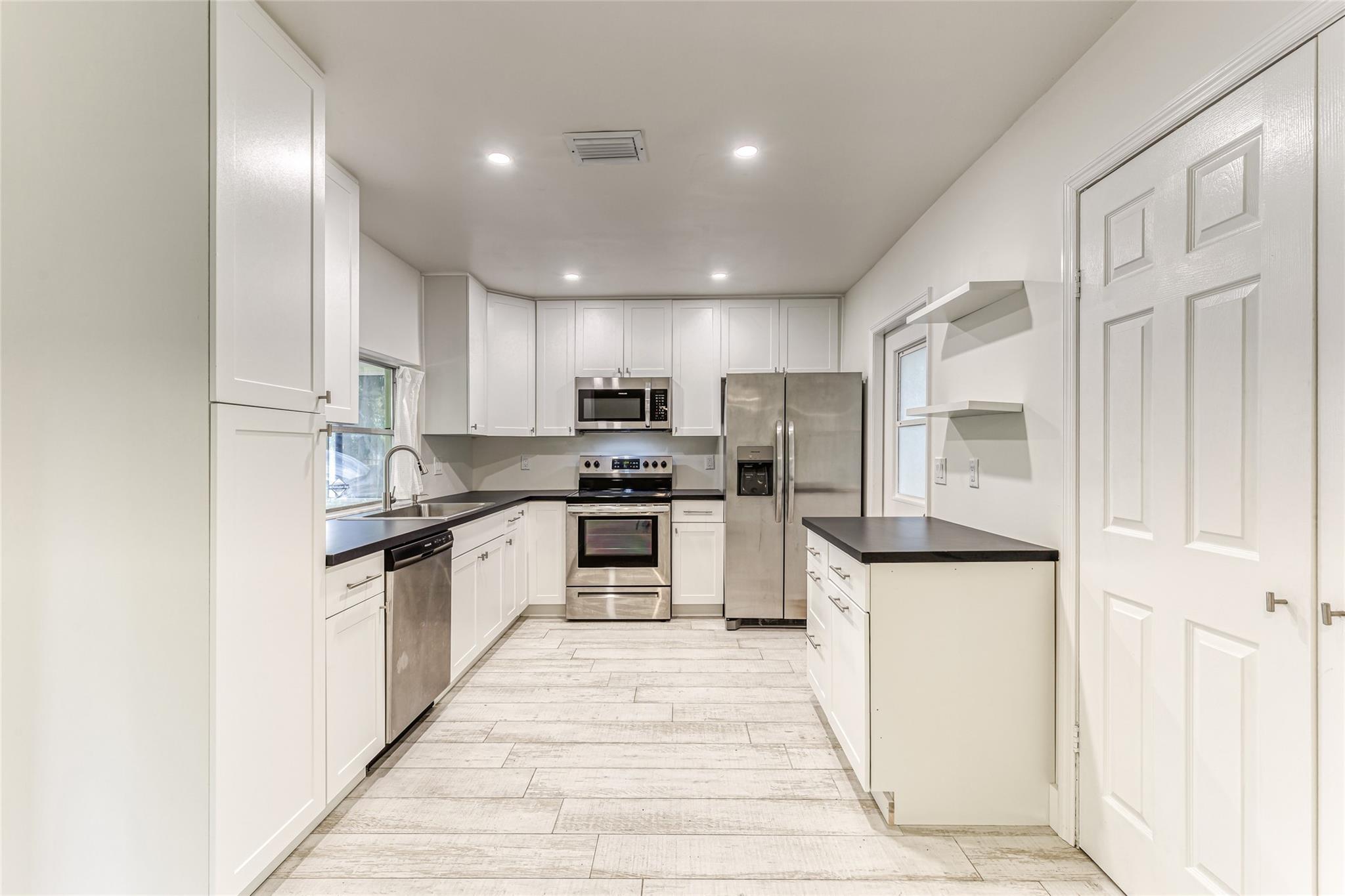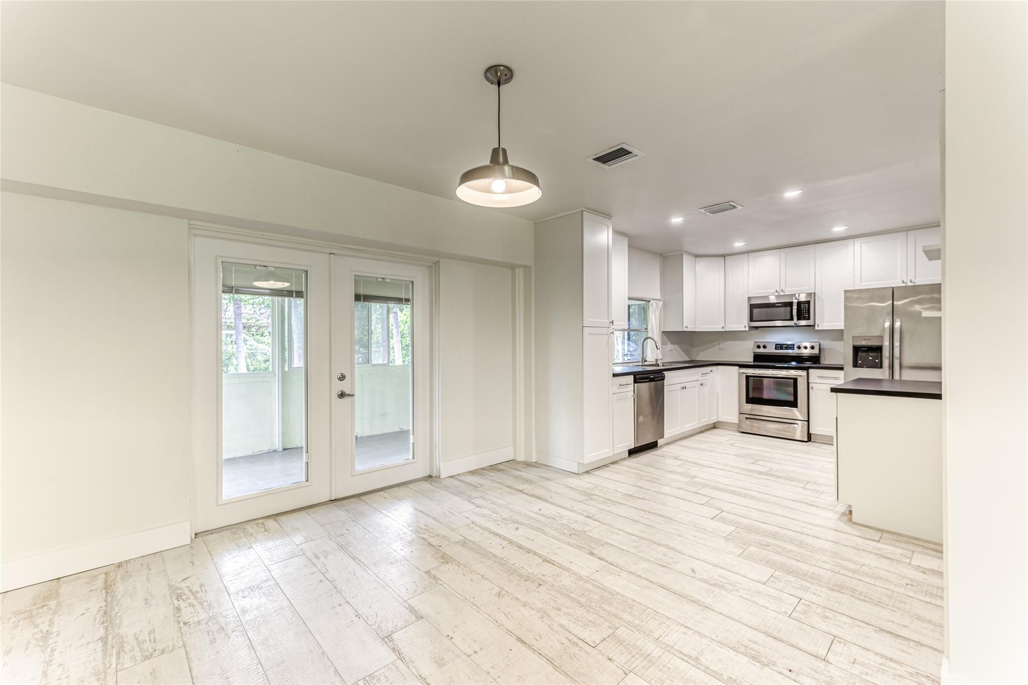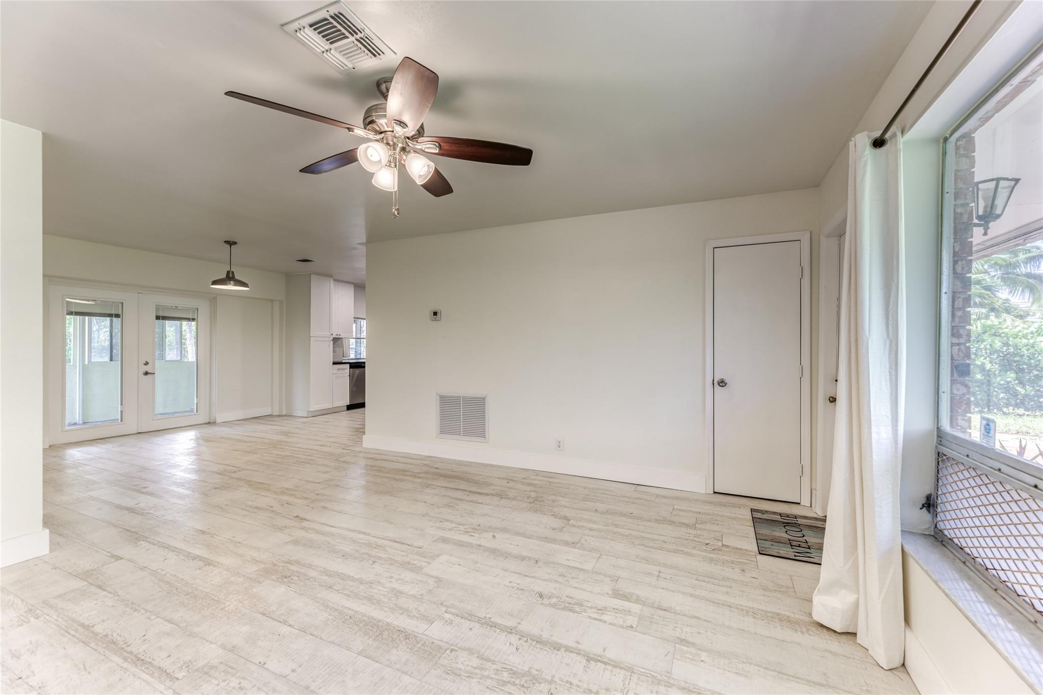 Enjoy this updated 2 bedroom, 1 bath home with a 1 car carport in the heart of Pompano Beach. This freshly painted home features a New Roof 2023, New Kitchen 2022, Updated Bathroom 2022 & new wood-plank tile throughout the entire home 2022. Enjoy entertaining in this large kitchen with white cabinets, new appliances, floating shelves, and tons of great storage. The living room is large with tons of natural light and dining room has french doors out to the back screened patio and backyard. The home also features new duct work, indoor laundry room, updated electrical, large back screened patio that is perfect for extending living space. The home has a huge fenced yard with tons of room for boat, car and RV parking. Centrally located and close to great dining, shopping and transportation.