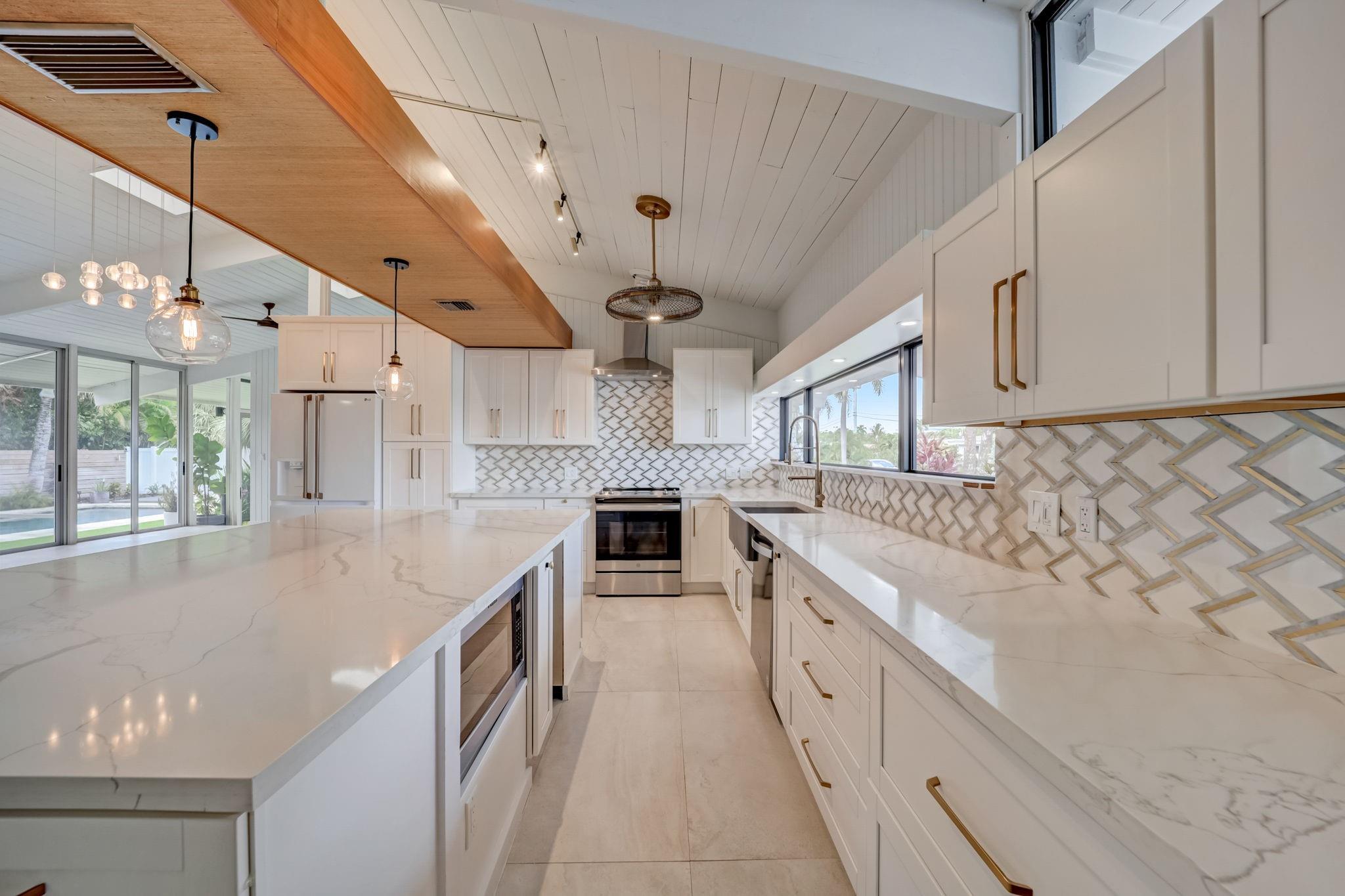Welcome to this stunning mid-century home located in the desirable neighborhood of Coral Ridge Country Club Estates. This architectural gem offers a perfect blend of timeless elegance and modern amenities. The open-concept layout seamlessly connects the living, dining, and kitchen areas. The living areas feature large windows and sky lights that flood the space with natural light, while offering picturesque views of the surrounding landscape. One of the highlights of this remarkable property is the chef's kitchen. Equipped with top-of-the-line appliances, premium cabinetry, and a generous center island. Whether you're preparing a family meal or hosting a gathering, this kitchen is sure to impress. Brand new roof 2023 Resurfaced pool 2022