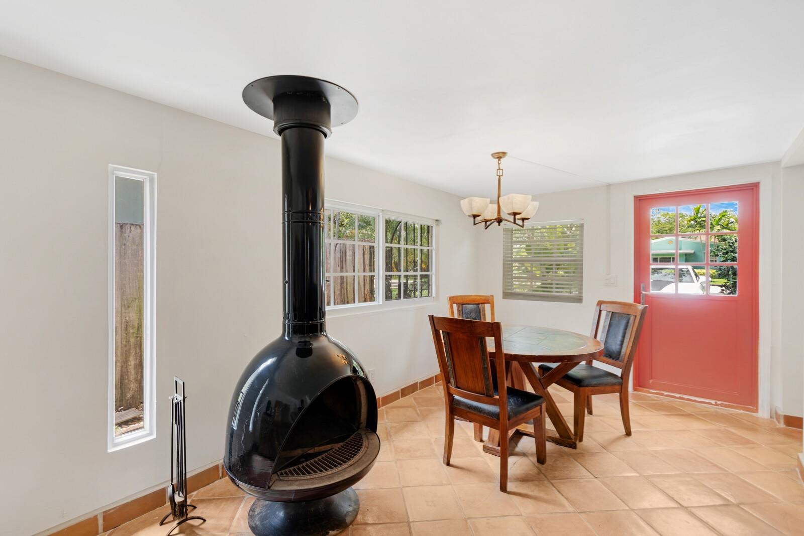 Charming Home in desirable Tarpon River neighborhood in Fort Lauderdale! Once you enter the front door, you are greeted with a Spacious Living Room & Cozy Dining Room with a wood burning fireplace! Open kitchen layout overlooking living room has stainless steel appliances! Two Large Bedrooms with Remodeled Bathrooms. Master Bathroom has Marble Finishes & Custom Vanity. Third Room can be a Bedroom, Den or Office Space and has a view of the Backyard Garden! Upgrades include All Impact Windows & Doors, Metal Roof, Newer A/C, new Gutters, Cover for Outdoor Patio, Large Pantry, & Laundry Room with Sink. Enjoy an Outdoor Oasis with wood deck & great for entertaining guests! Plenty of room for a pool! Great neighborhood with park!