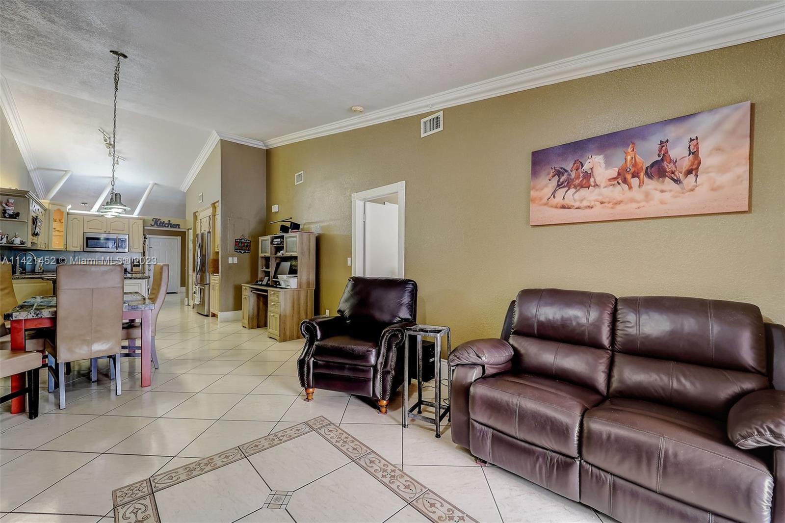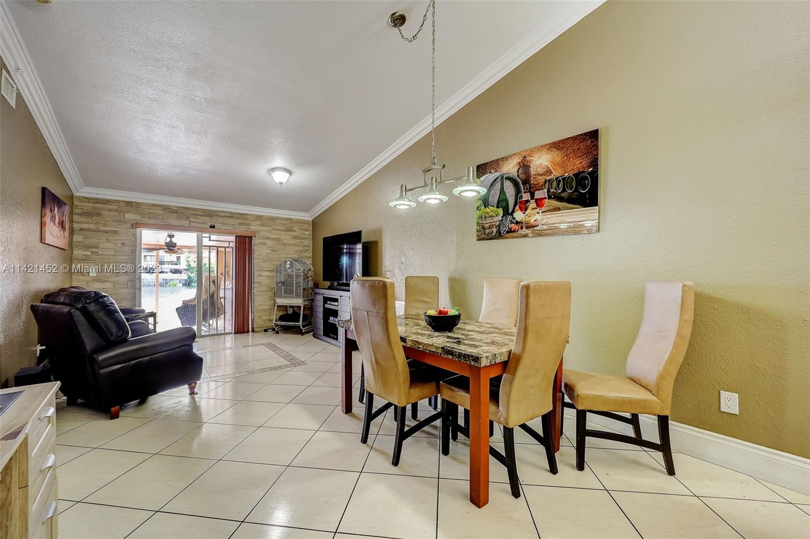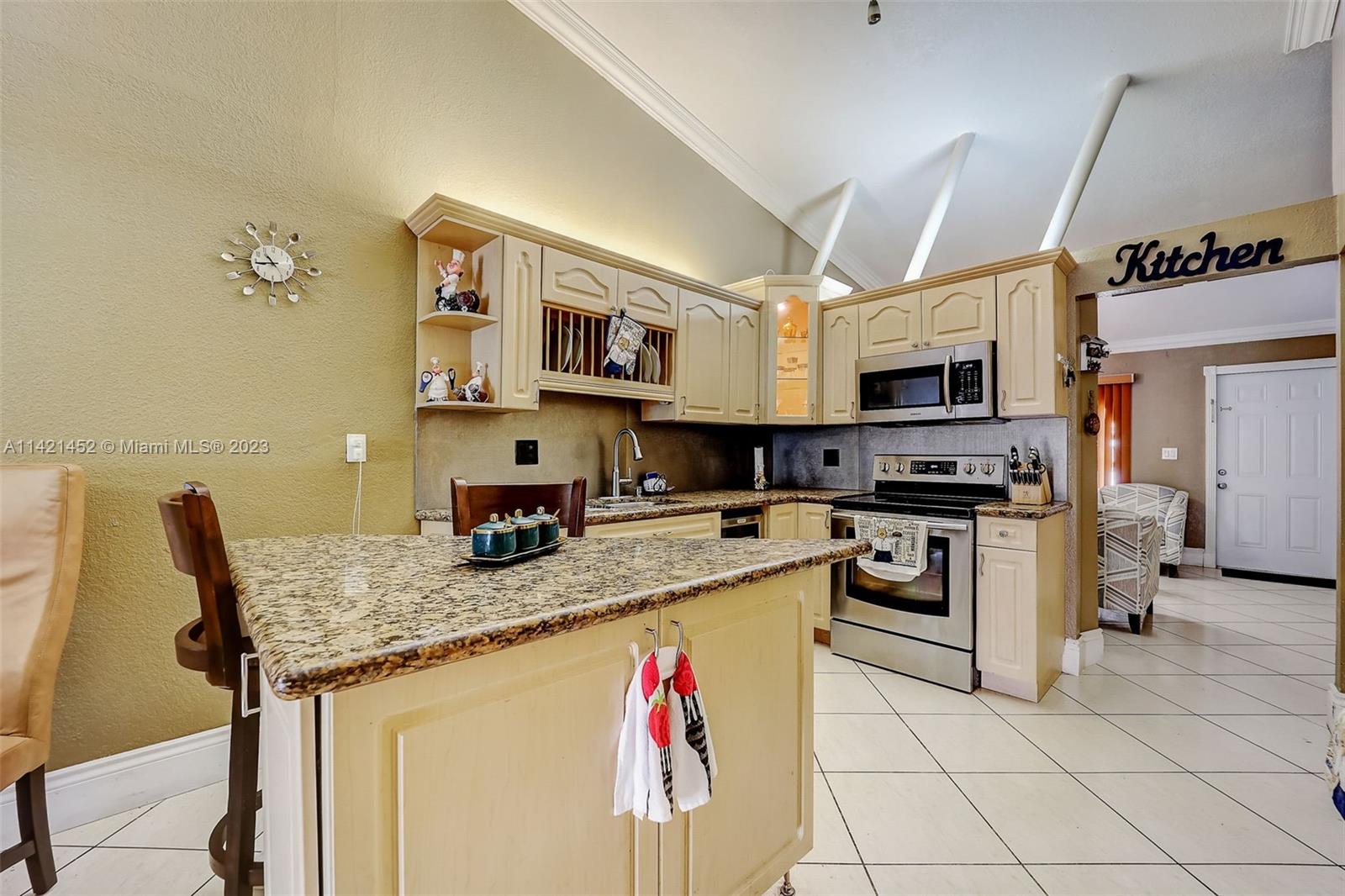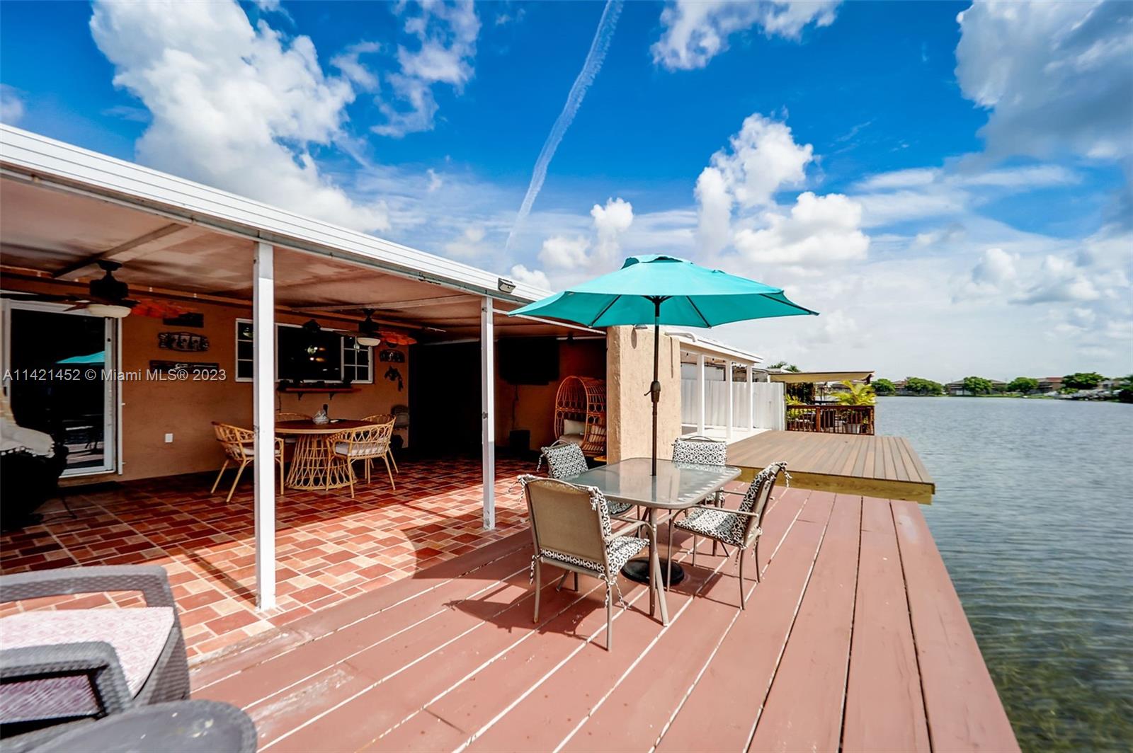 Don’t look further! This one-story single-family house in west Hialeah offers 3 beds, 2 baths. Nestled in the desirable Alameda by the Lake community. Prepare to be enchanted by the breathtaking lake views, offering a sense of tranquility that will soothe your soul. Relax on the 12 ft deck with concrete pilings, all tiled patio under the aluminum patio roof perfect for entertainment and gatherings. The vaulted ceilings inside create an open feel, updated kitchen with stainless steel appliances. Enjoy the split layout and all tile floors. A Tile roof add elegance and character. Full-size washer/dryer included. Close to great schools, and all you can need. Don't miss this opportunity for lakefront living in the City of Progress! THIS IS A MUST SEE!