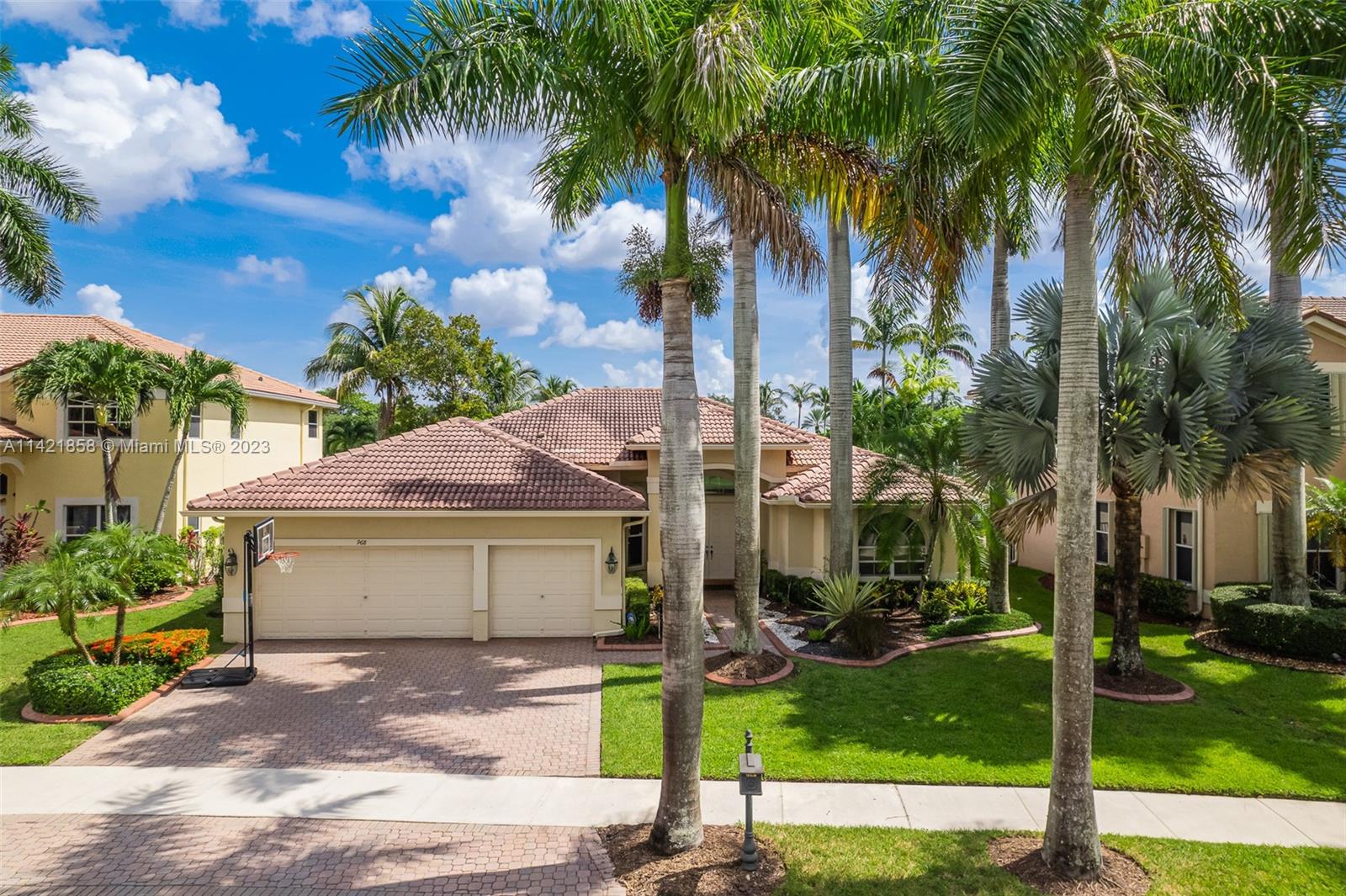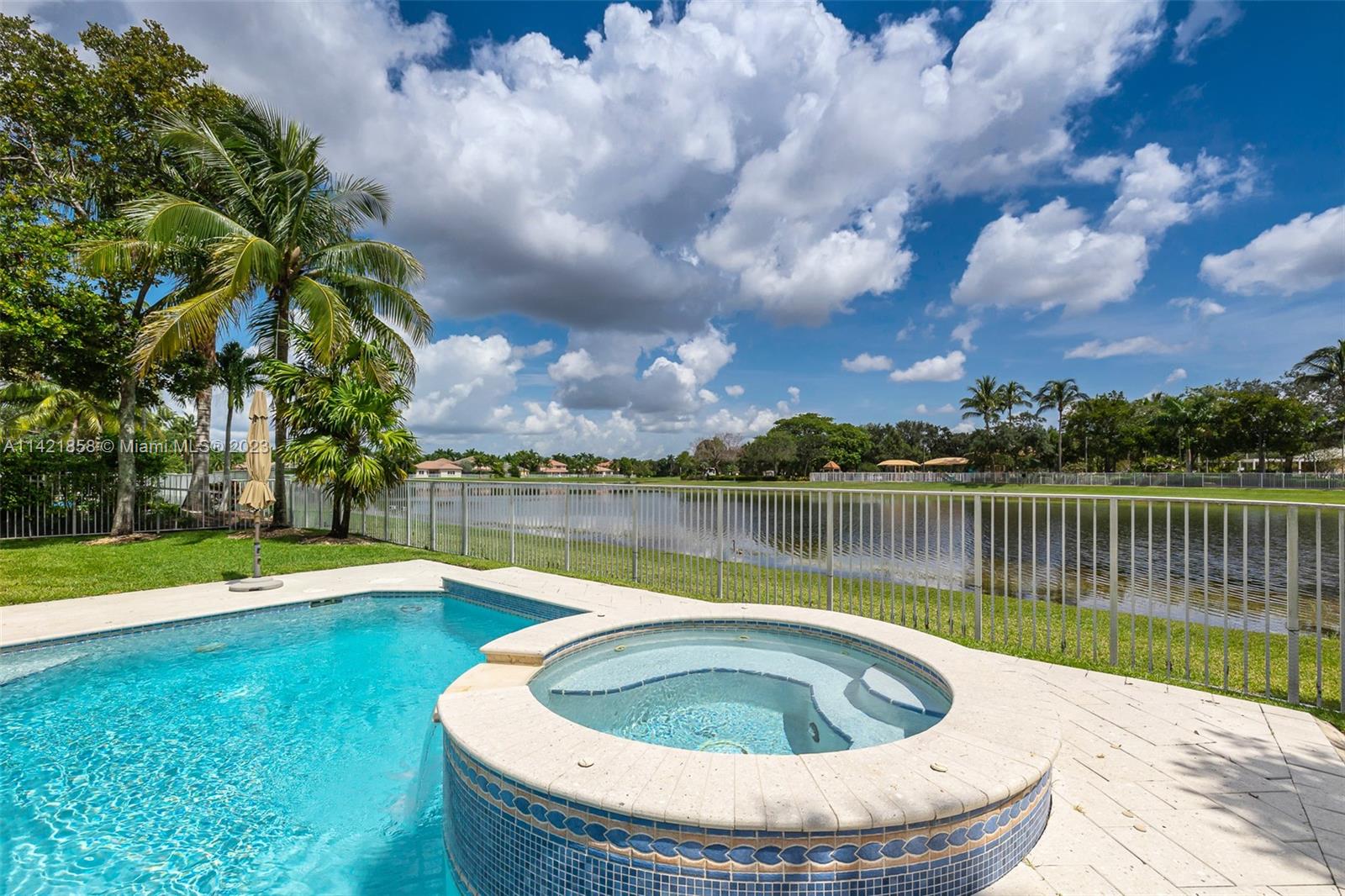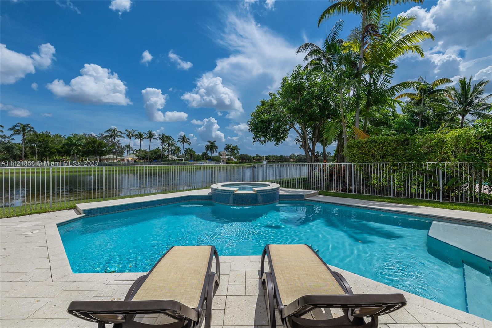 Spectacular premium location in Savanna, The Cove. Quiet royal palm tree street. Location, location, location. This water view home, has lots of natural lighting and an open, bright floor plan. Located in Gated Community of Savanna, 4 bedrooms, 3 bathrooms, 3 car garage, vaulted ceilings, laundry room, accordion shutters and an amazing lake view. Primary bedroom has 2 walk-in closets. Pool area is private. Stunning backyard with covered patio. Fabulous resort-style amenities for the entire family; clubhouse with heated lap pool, resort pool, kids pool, water slide, playground, soccer field, basketball court, hockey rink, BBQ area, miniature golf, and much more. 24 hour guarded gated community near to Weston Regional Park, Publix, restaurants and stores. Excellent A+ schools.