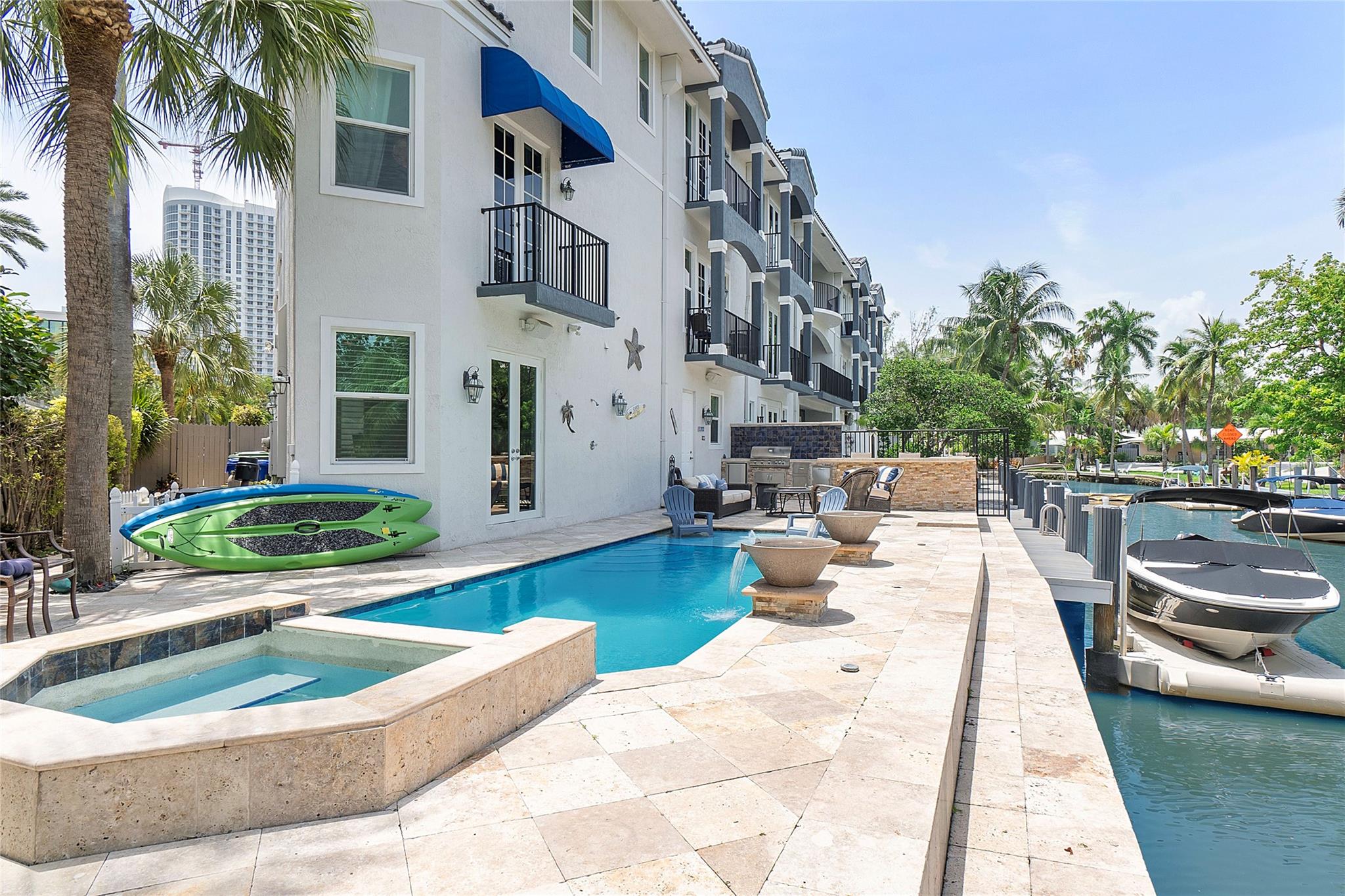 3BR 3BTH beautifully updated townhome on 75Ft of waterfront property. Perfect to jump on your boat and enjoy the Las Olas Sandbar and waterfront restaurants. Only One block off of fabulous Las Olas Blvd and all that it has to offer. 10+ walk ability score! Over 300k in upgrades. This home has spared no expense. Some of the features include Newly painted building with ledger stone front. Full size pool & waterfall spa, Summer kitchen bar ,fridge and Blaze oversized Grill. Lifetime warranted impact windows. Custom entertainment center with 75" TV & wine fridge and surround sound. Upgraded paint, floors and lighting. 2car garage plus additional 2 spots inside fully gated driveway. Private Boat dock. 10 passenger SeaRay and floating dock available for purchase. Truly one of a kind