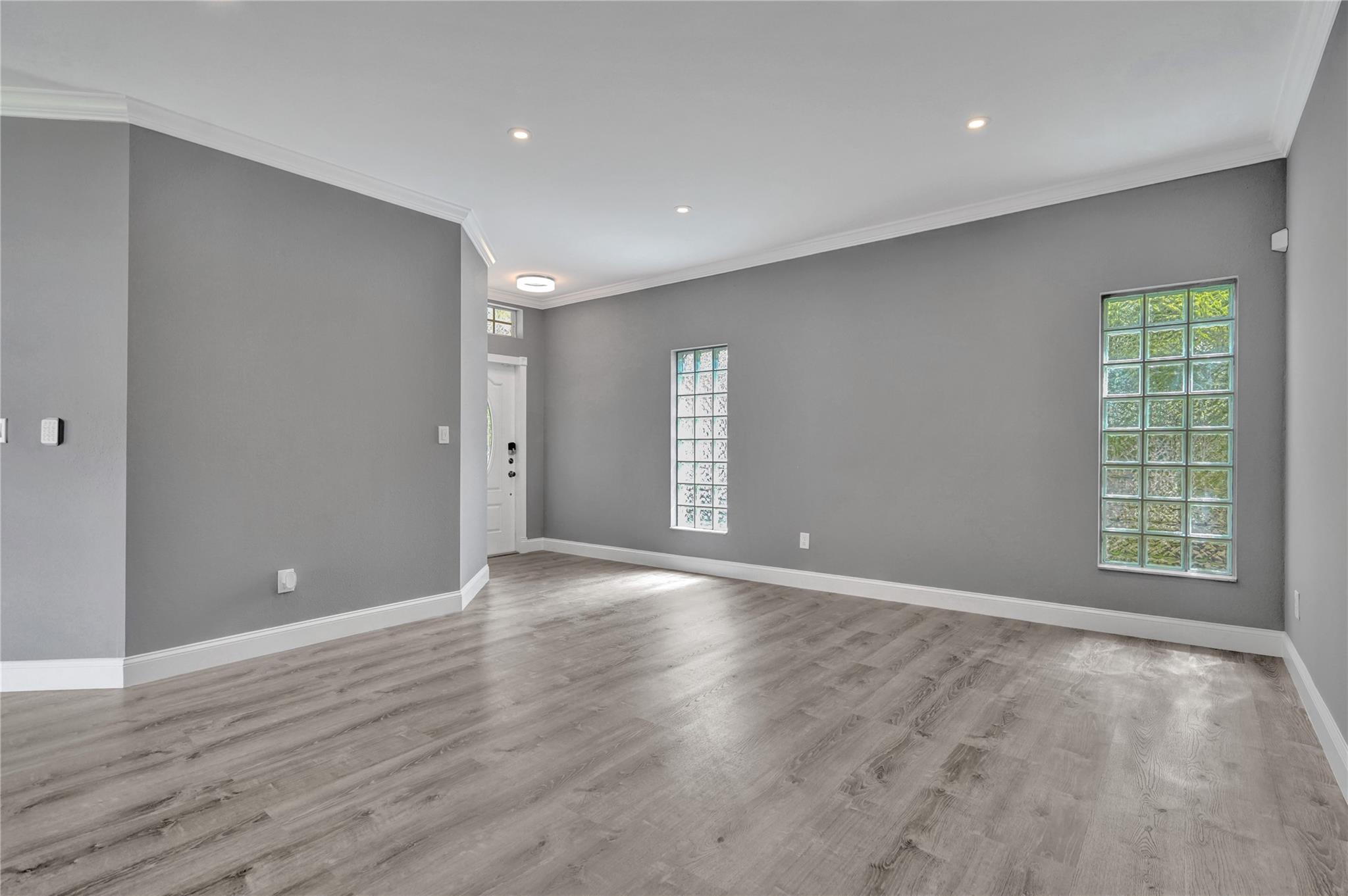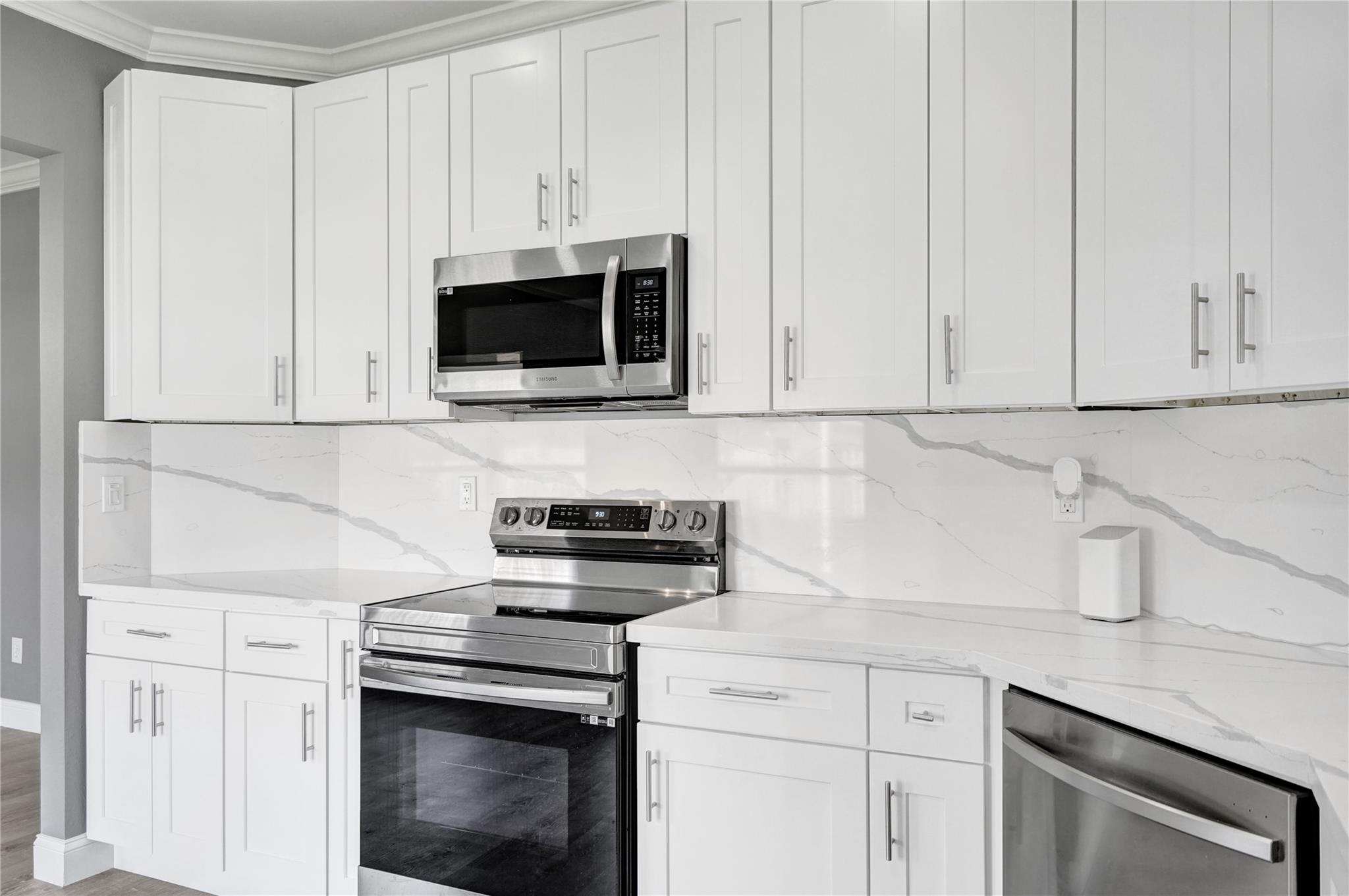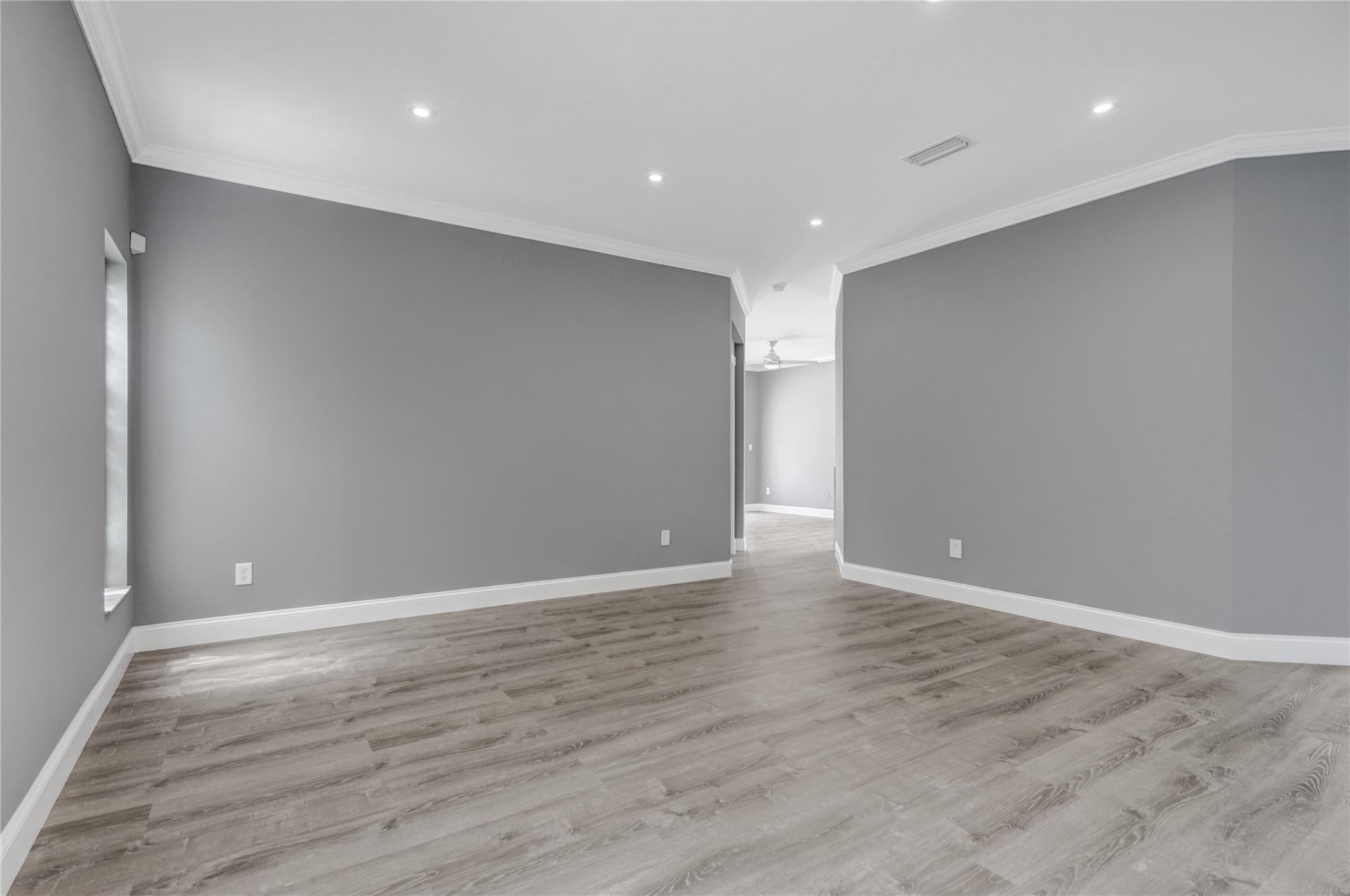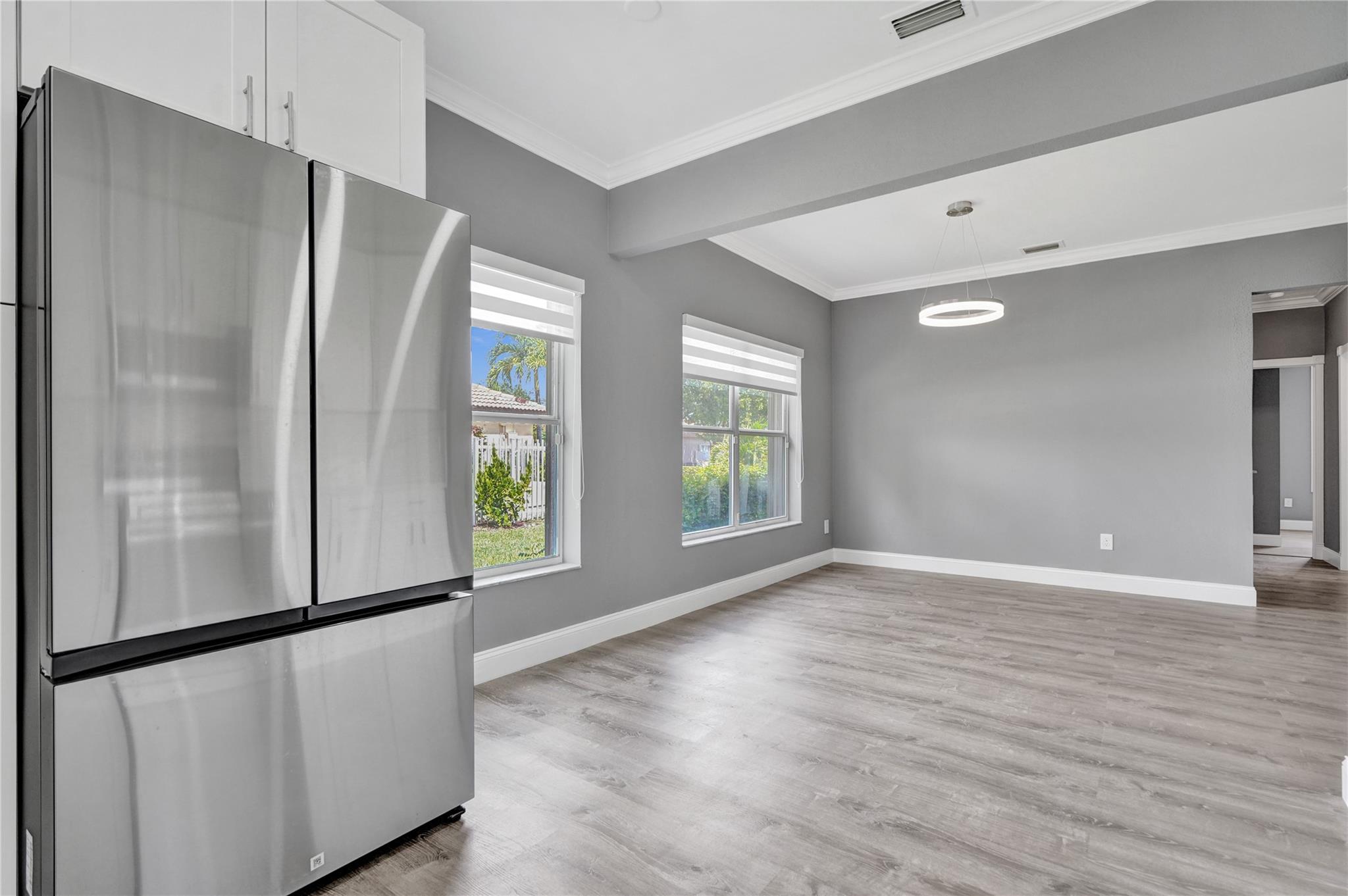New roof 2020! Beautifully updated w designer accents featuring freshly painted interior w smooth ceilings, new vinyl wood flooring w 10 year warranty in all living areas & bedrooms, elegant luxe bathrooms w stately tile & quartz counters, LED framed mirrors. Spacious open kitchen w extended new cabinets, new stainless appliances, great refrigerator!, quartz counters & backsplashes. LED lighting & stylish window blinds accent this home's open concept. Private fenced yard with large patio, no neighbors on one side, close stroll to the community pool. 2022 water heater, accordion shutters. Gated community of Chapel Cove w monthly HOA dues of $70 monthly includes water for lawn irrigation. Chapel Trail Master HOA fee is $366 quarterly, includes Cable TV & internet. Walk to elementary school.