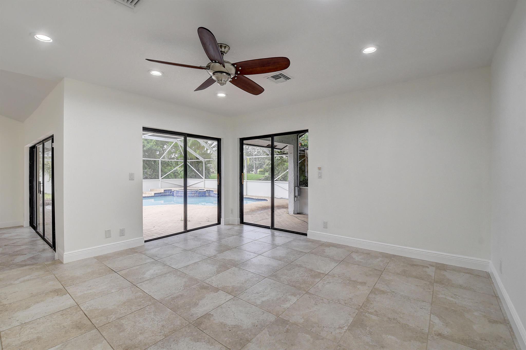 Welcome Home to this desirable Boca Chase neighborhood! Updated 4/2 Pool Home with beautiful detail and finishes. Double door entry, gorgeous tile floors. Kitchen equipped with Stainless Steel appliances and fantastic backsplash. Separate Dining, additional bar seating allowing easy conversation to the open living room space with soaring ceilings. Flex Room, Primary Bedroom Suite offers dual sinks and shower. Screened Pool with paver patio is what Florida Dreams are made of!!! 2018 Roof, Low HOA and great location.