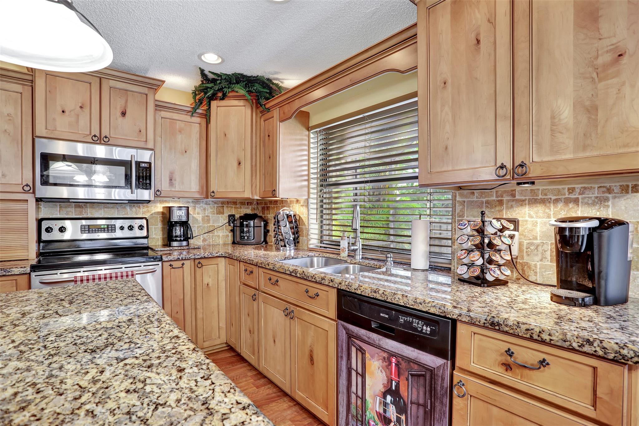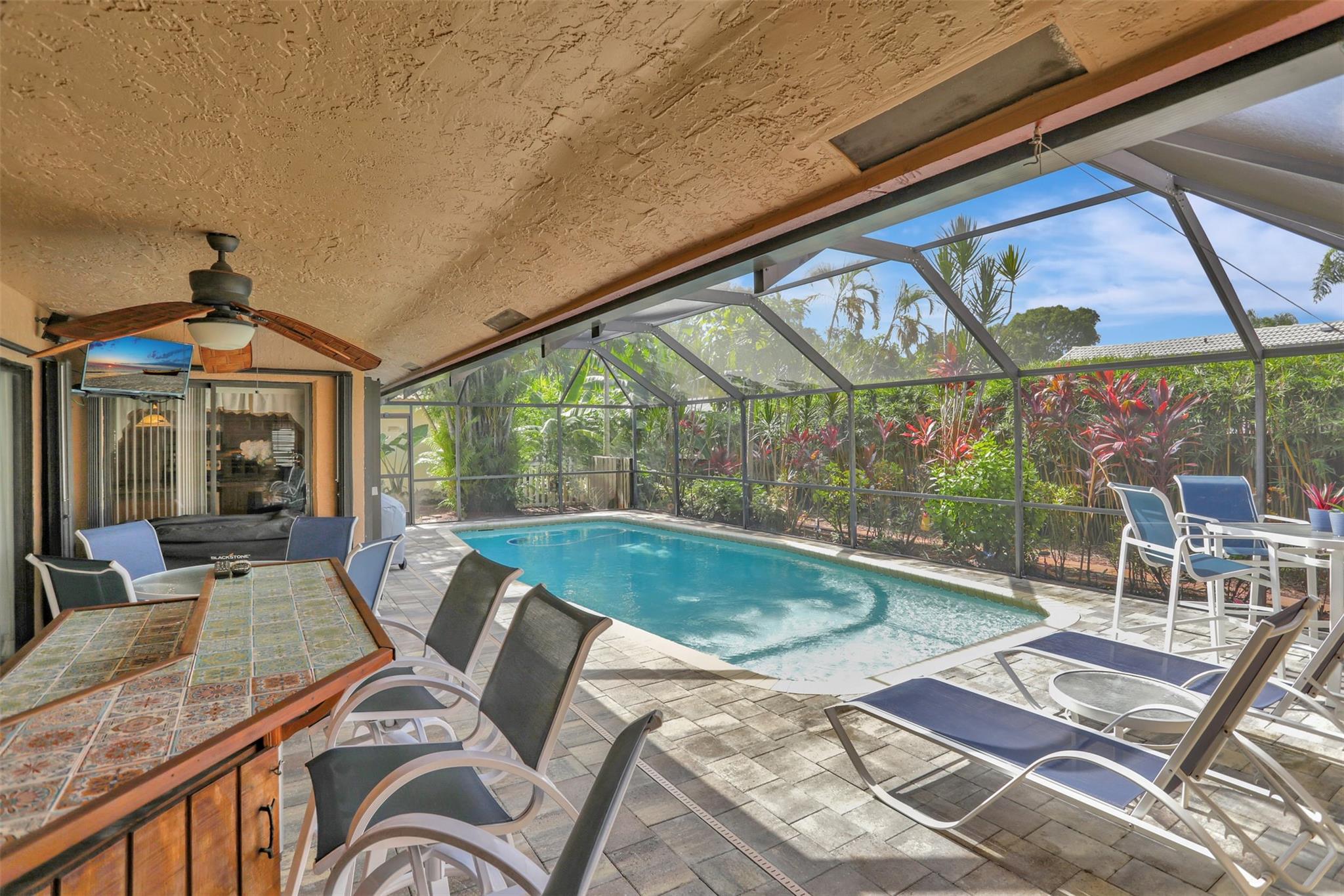 Truly a dream oasis! (See 3D virtual tour.) This stunning cul-de-sac home offers tranquility & convenience while combining style w/ functionality. Views of the resort-like pool area from the kitchen, family rm, living rm. Spacious kitchen features upgraded wood cabinets, granite, SS appliances, island + brkfast area. *All windows have accordion shutters; garage door is Miami-Dade approved. Updated bathrooms have impact cabana doors to the tropical pool area.* All bdrms are generously sized. Living areas have vaulted ceilings. Relaxation is yours as the pool bar and TVs stay! Gorgeous paver pool deck-2021. *Updated elect panel. Plantation shutters. Beautifully maintained home is close to shopping & highways for easy commuting. Schools and Fern Glen Pk are a short walk. A winning decision!