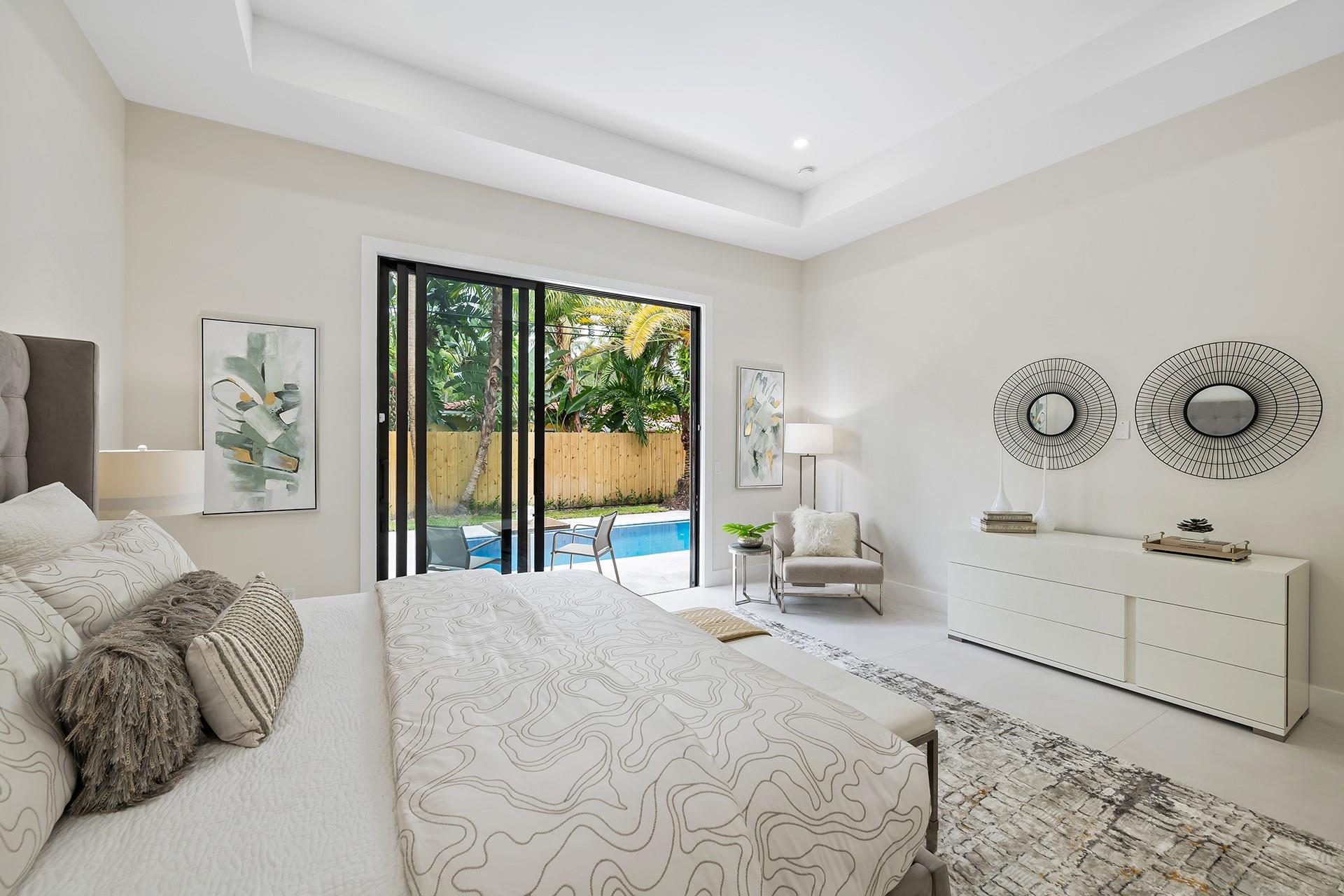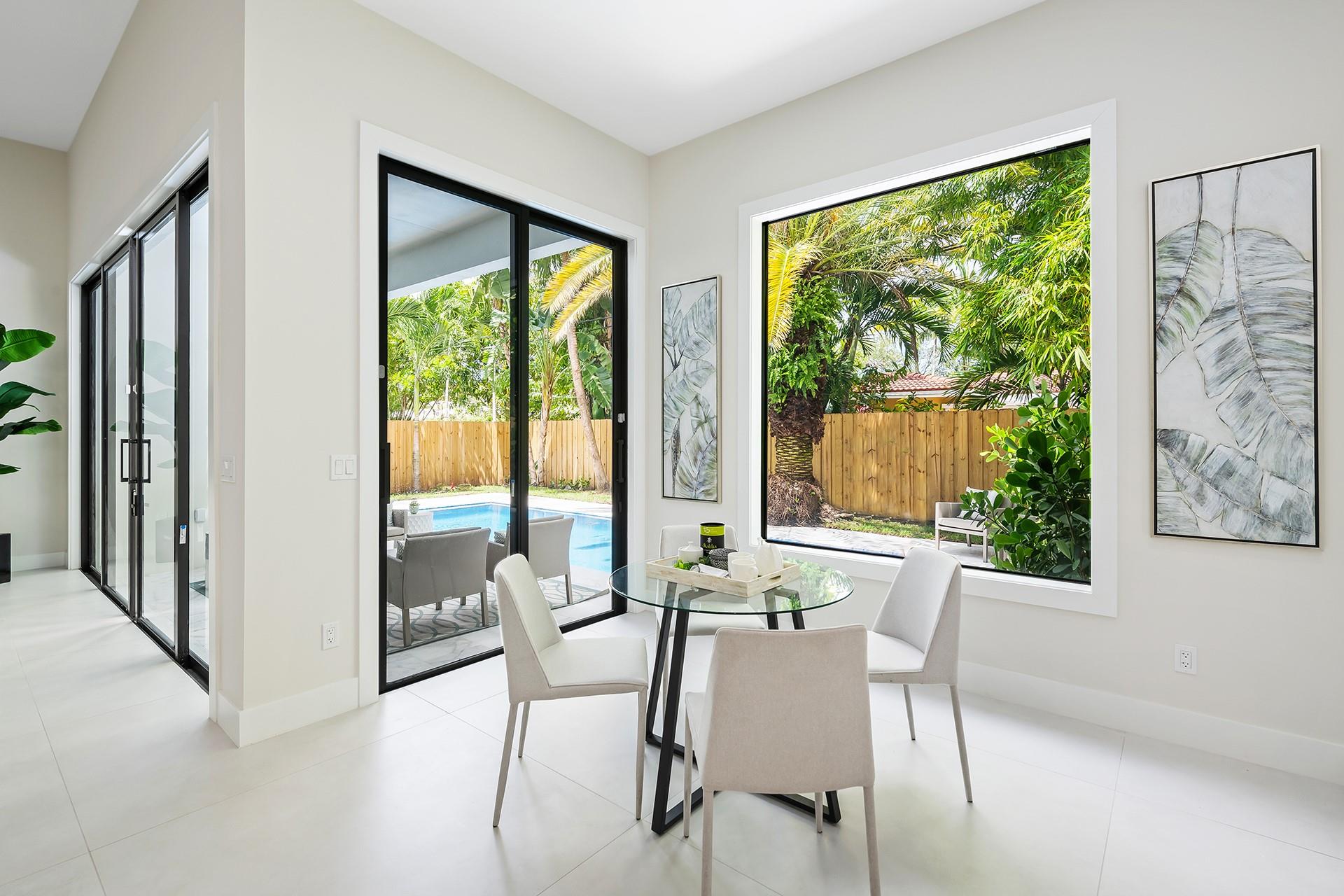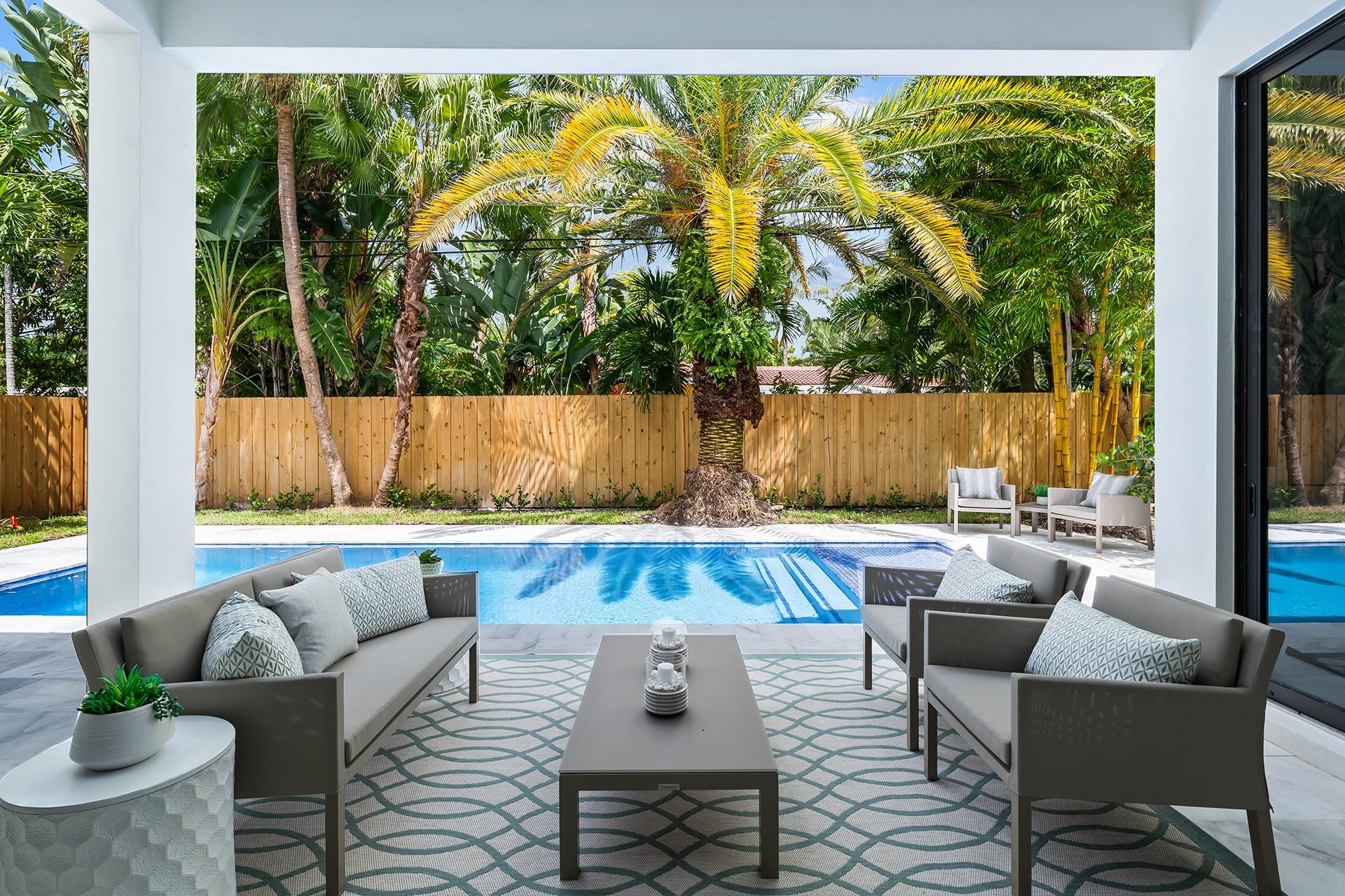 **READY FOR OCCUPANCY** | NEW CONSTRUCTION In E. Fort Lauderdale. Inspired by Transitional Contemporary Design meeting all the requirements of today's buyer. The bright open floor plan is enhanced by 11 & 13 ft ceilings & walls of glass providing an open concept lifestyle. Multiple sliding doors blend indoor & outdoor living spaces. A covered loggia overlooks the pool & tropical landscaping. The large eat in kitchen opens onto the enormous great room & dining room. The primary suite boasts a coffered ceiling, 2 large walk-in closets & spa inspired bathroom. 2 additional bedrooms, 2 additional full bathrooms, a designated home office & laundry room complete the floor plan. Minutes from restaurants, supermarkets, shopping, fitness centers, parks and the beach. Square footage from architect.