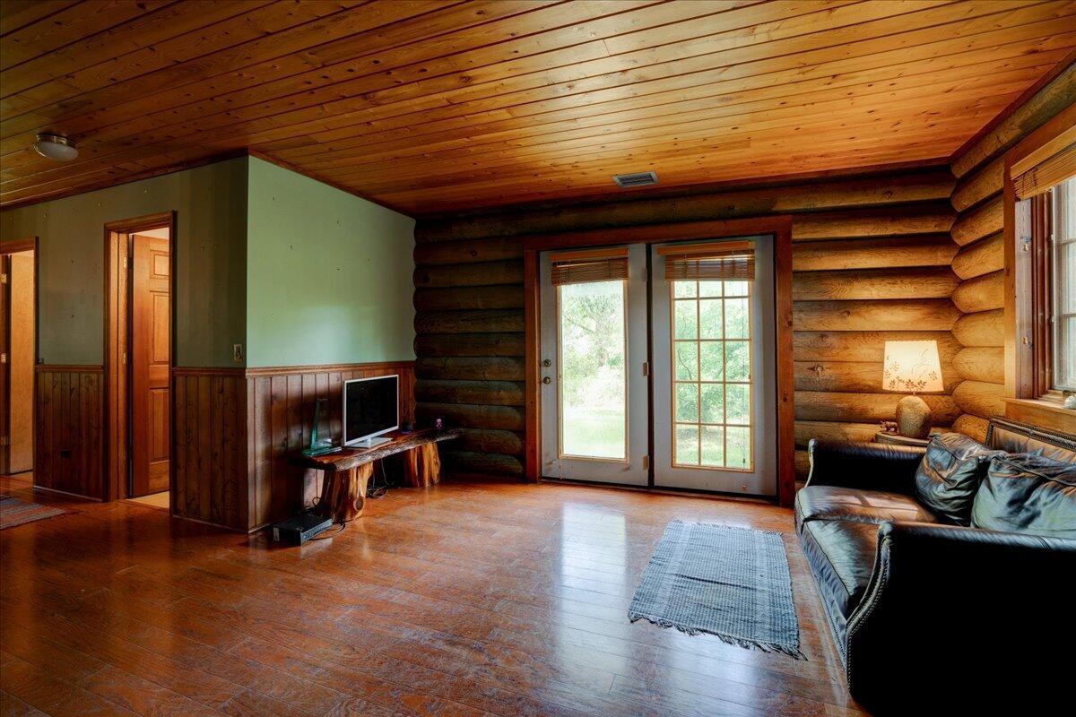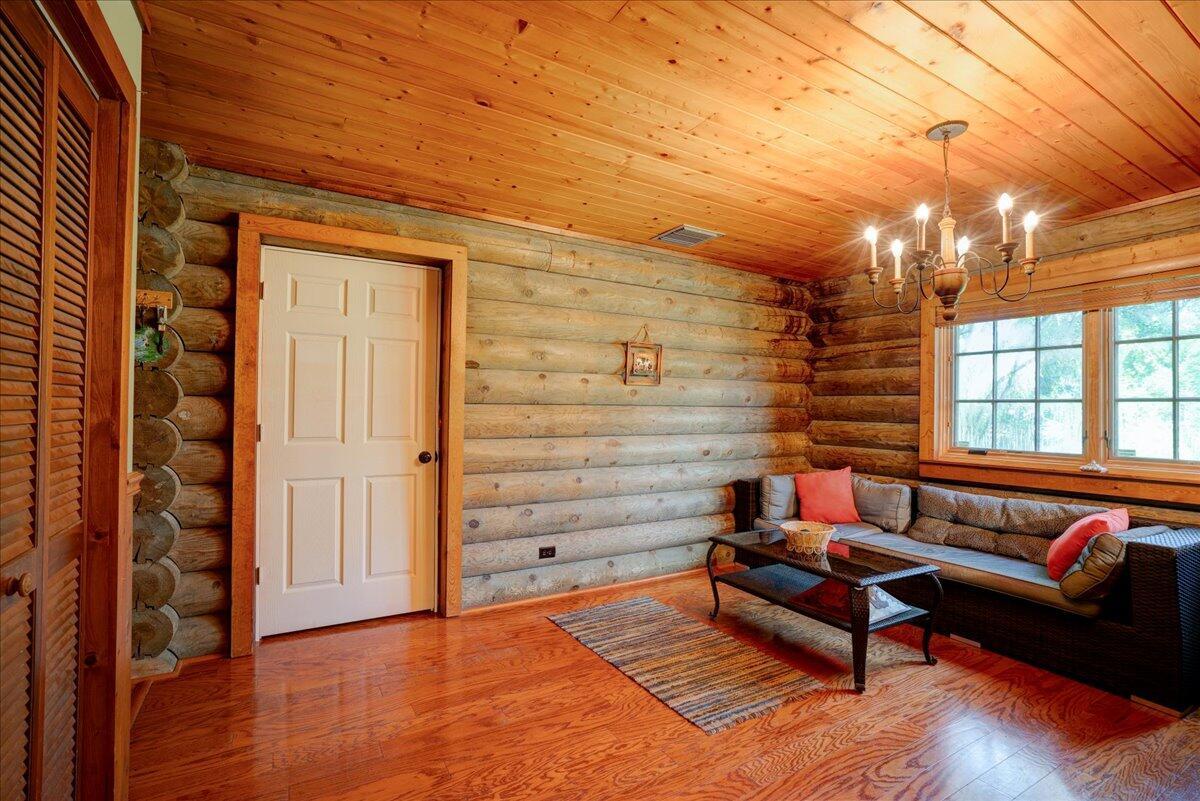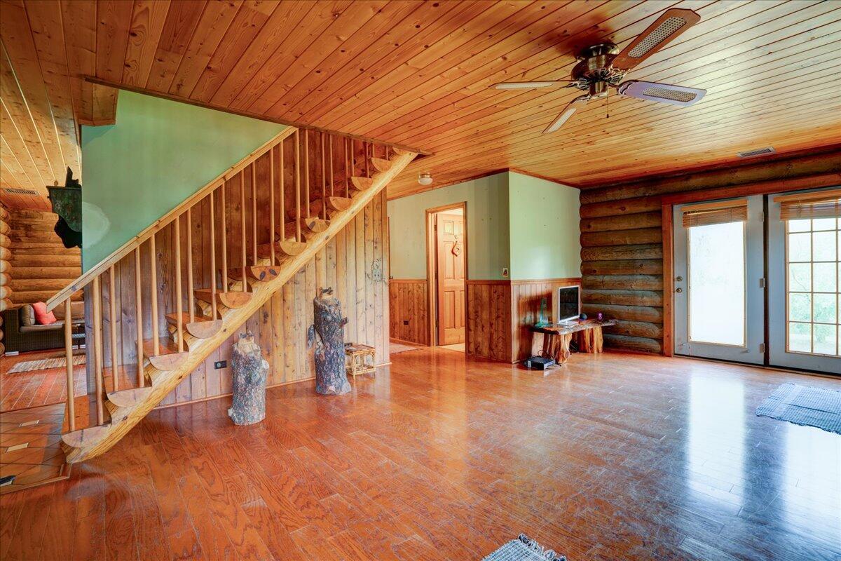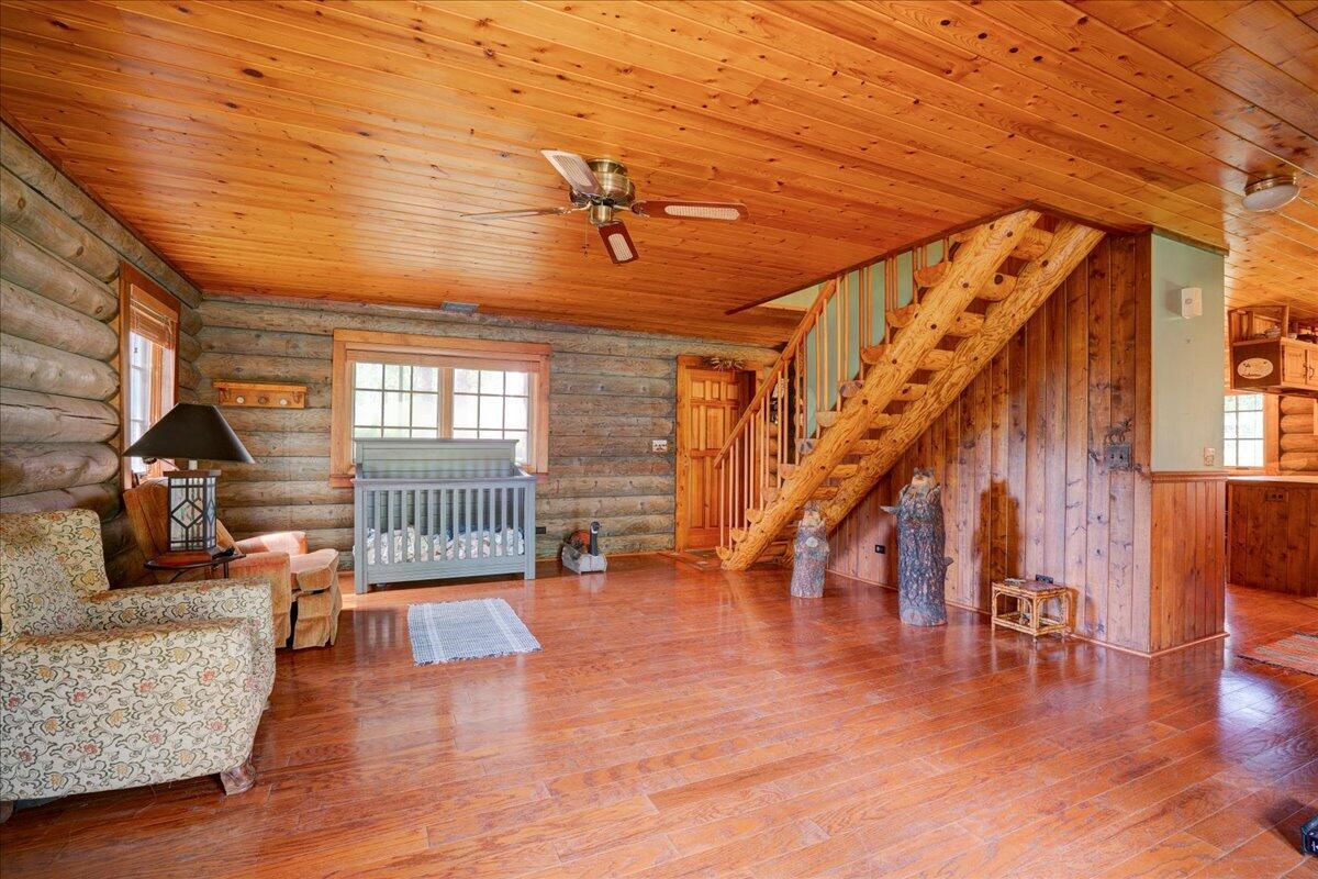 Welcome to this one-of-a-kind 3-bedroom log home, nestled on a sprawling 1.25 lot. This distinctive property exudes rustic charm. Its unique character and the idyllic surroundings make it a perfect opportunity for those seeking a personalized retreat.As you approach the property, you'll be immediately captivated by the classic log construction that exudes warmth and character. The home's exterior features sturdy logs, creating a timeless aesthetic that seamlessly blends with the surrounding landscape. A spacious front porch beckons you to sit back, relax, and take in the peaceful ambiance of the wooded surroundings.Step inside, and you'll be greeted by an inviting interior that showcases the beauty of natural wood. The living area features a wood floor, and pine panel ceiling.