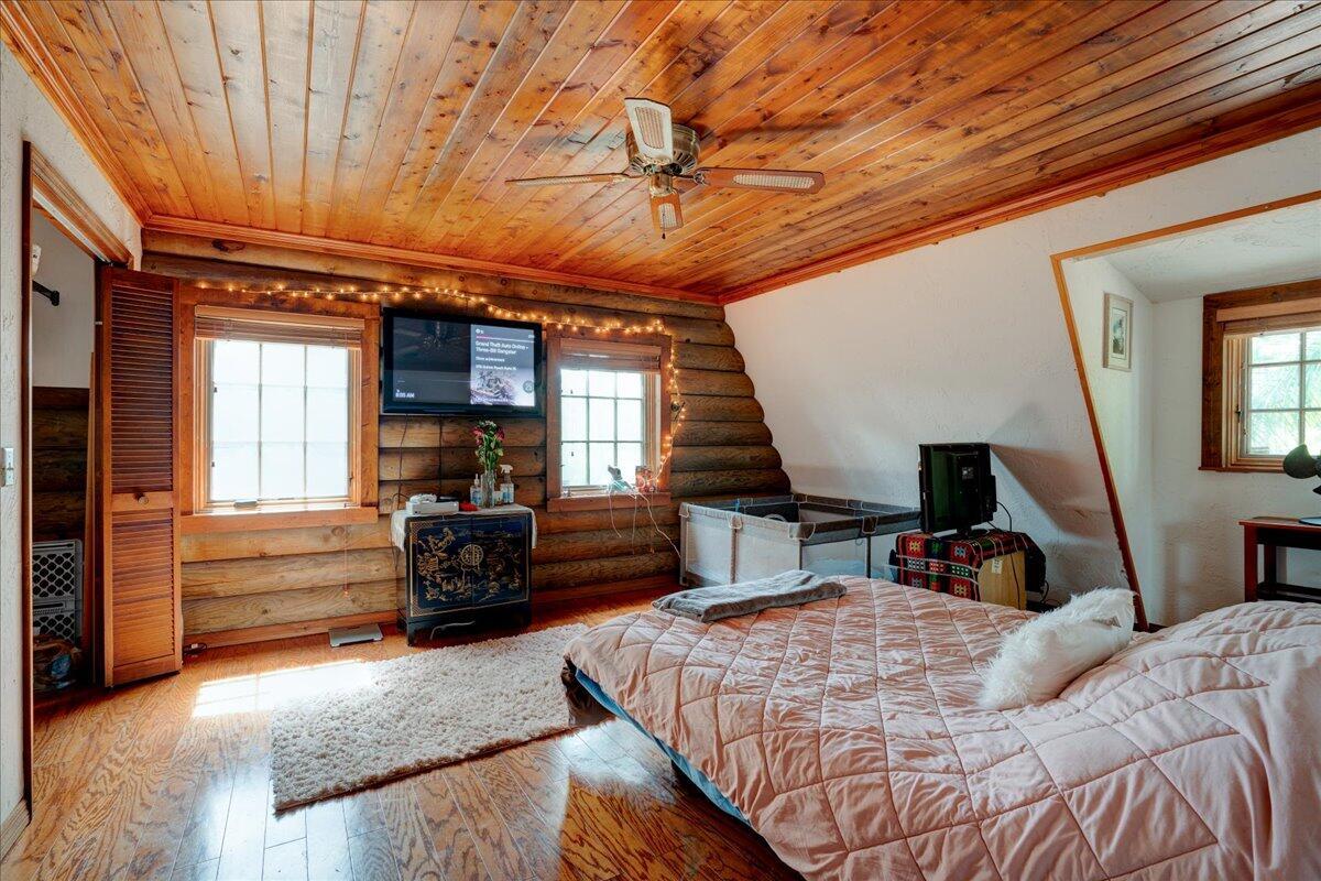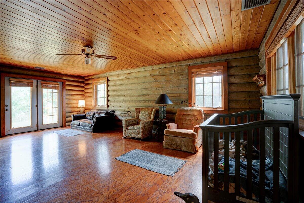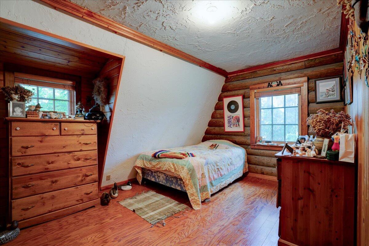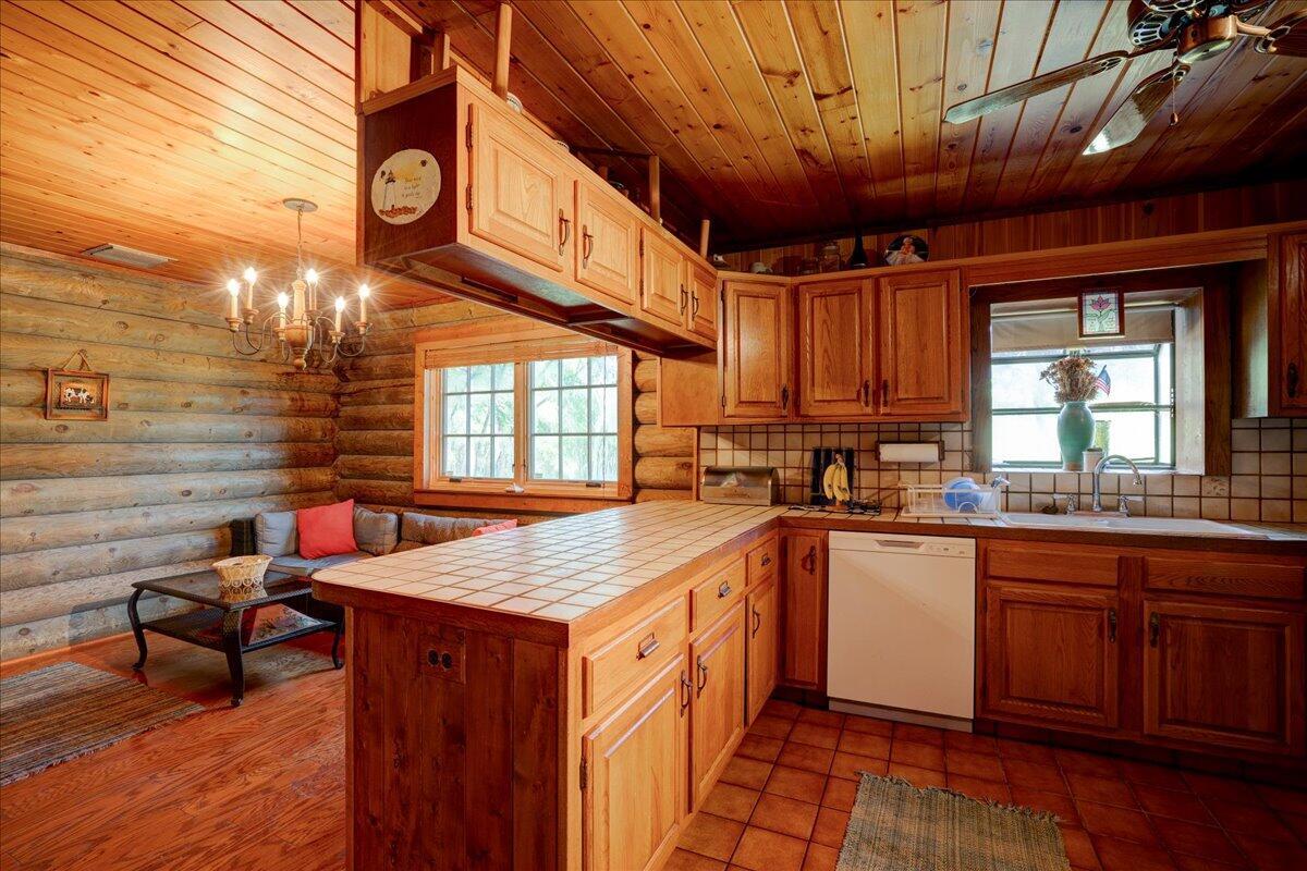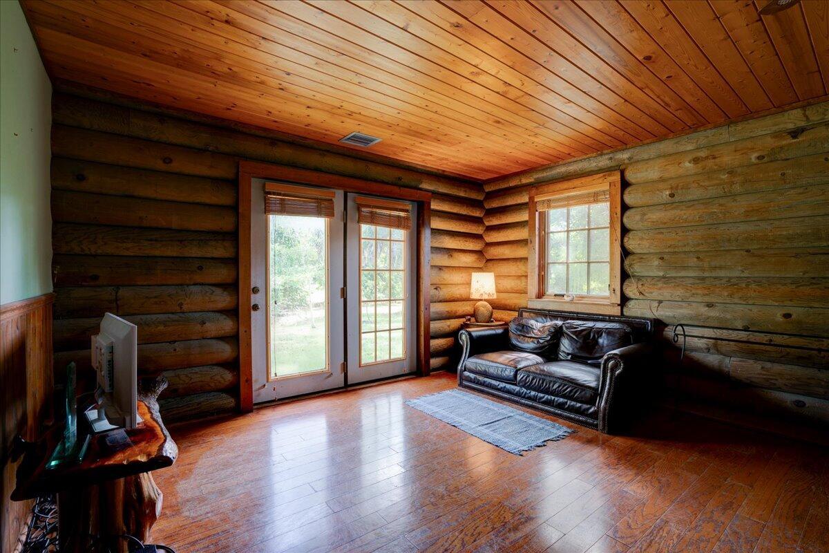 Welcome to this one-of-a-kind 3-bedroom log home, nestled on a sprawling 1.25 lot. This distinctive property exudes rustic charm. Its unique character and the idyllic surroundings make it a perfect opportunity for those seeking a personalized retreat.As you approach the property, you'll be immediately captivated by the classic log construction that exudes warmth and character. The home's exterior features sturdy logs, creating a timeless aesthetic that seamlessly blends with the surrounding landscape. A spacious front porch beckons you to sit back, relax, and take in the peaceful ambiance of the wooded surroundings.Step inside, and you'll be greeted by an inviting interior that showcases the beauty of natural wood. The living area features a wood floor, and pine panel ceiling.