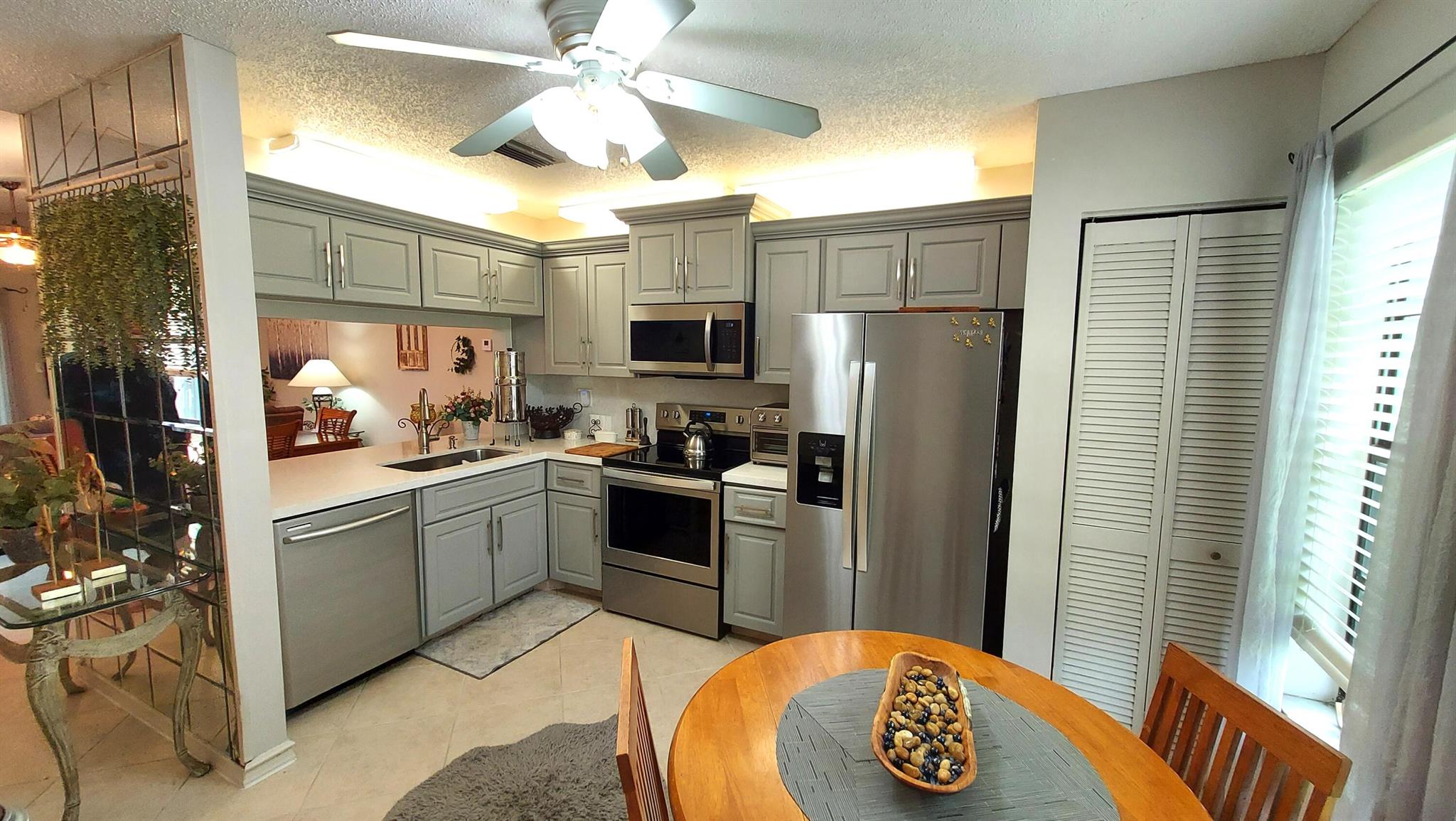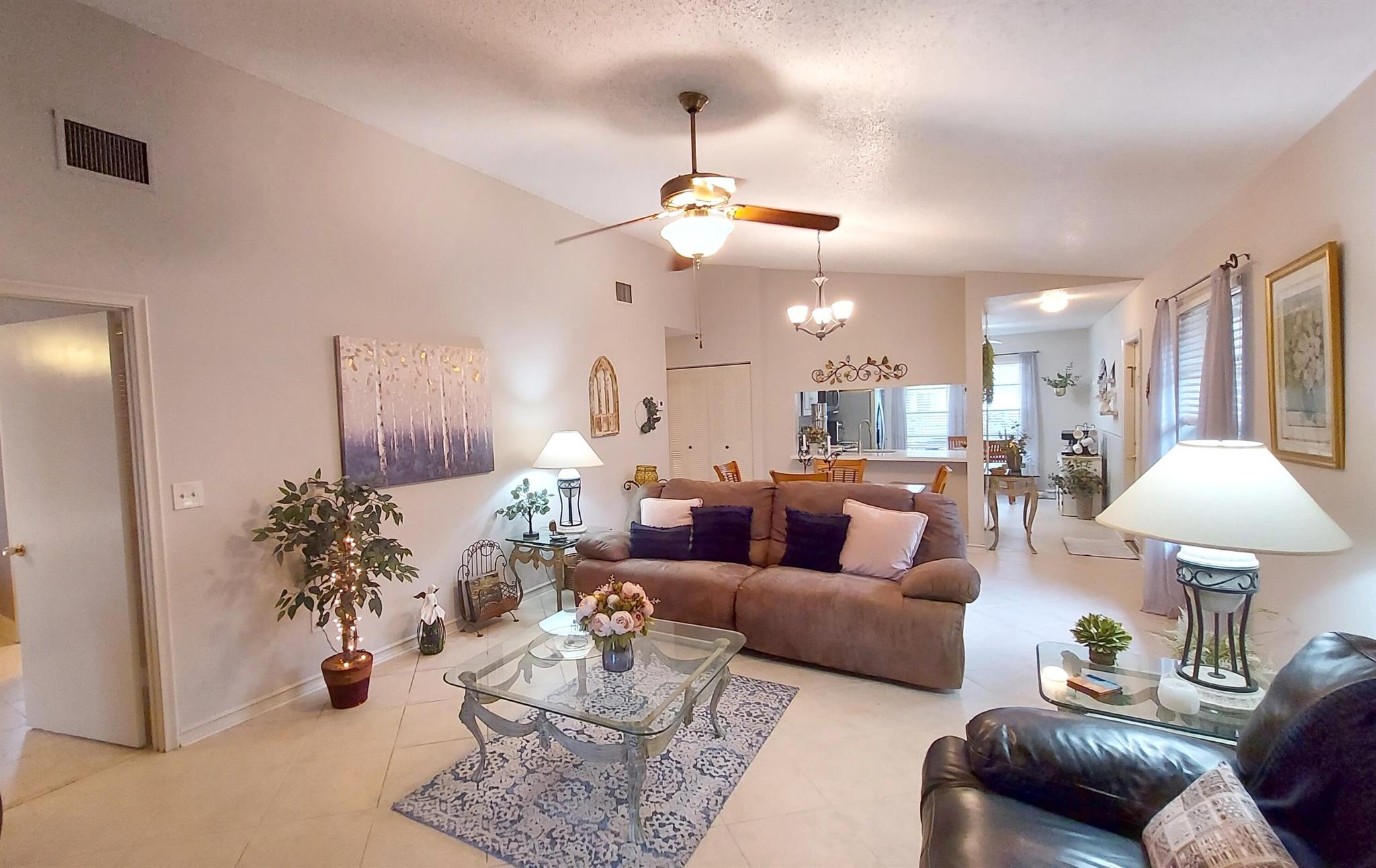 Very well kept 3/2 CBS home with beautiful updated kitchen and peaceful waterfront lot * BRAND new a/c system June 2023 * 100% tiled floors throughout * Vaulted ceilings make the home feel very spacious * 2 car driveway * Enjoy the water view from the screened, covered porch * Lots of storage / closet space * fenced-in side yard * Low HOA fee includes lawn care & irrigation! * Community pool, clubhouse, playground, and tennis * Convenient location * Lovely home under $400K * Will not last!