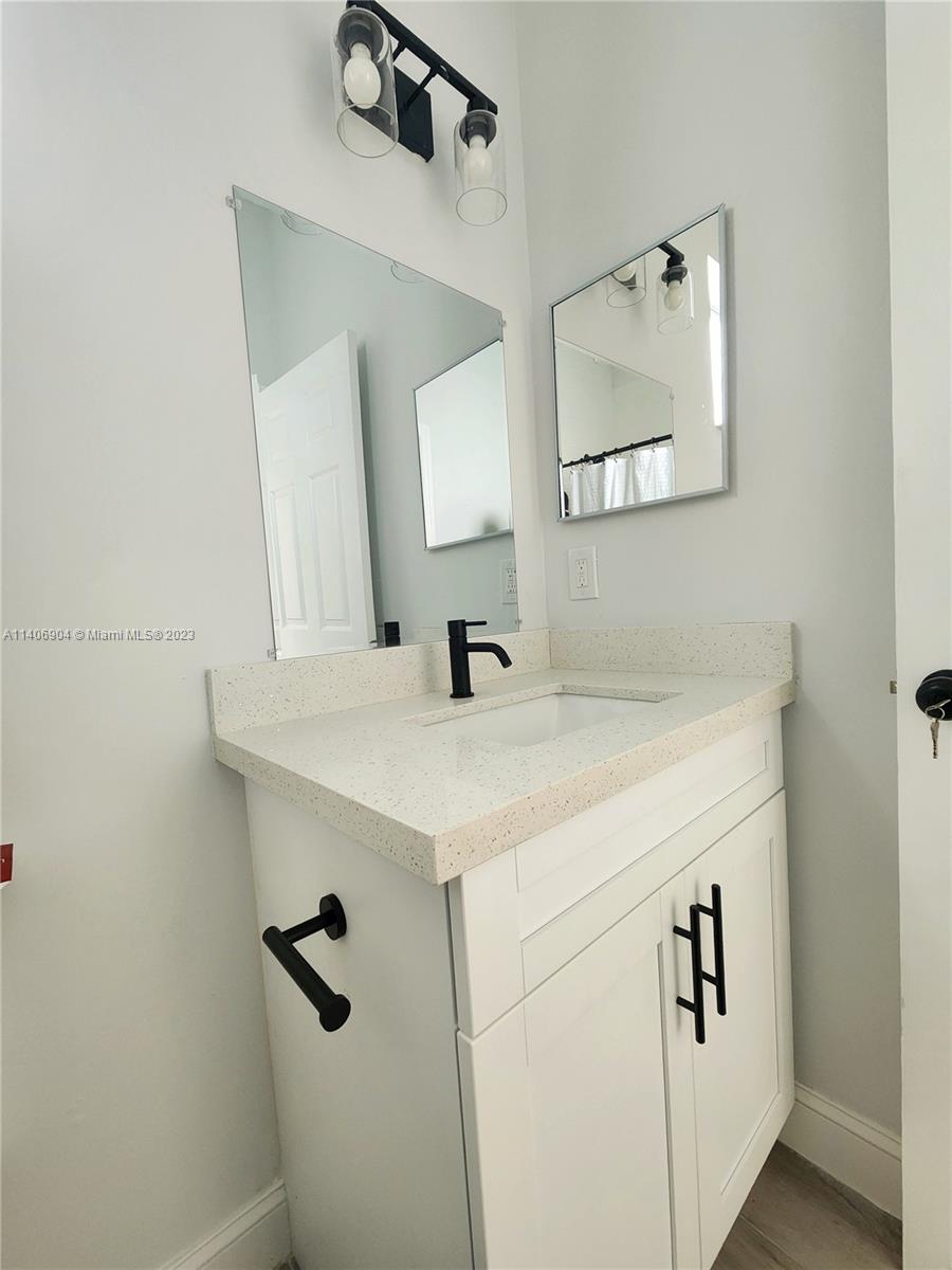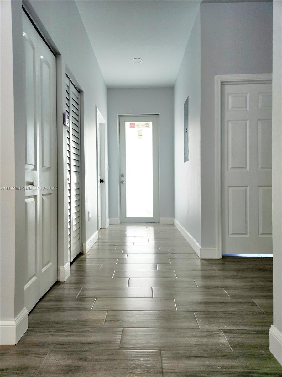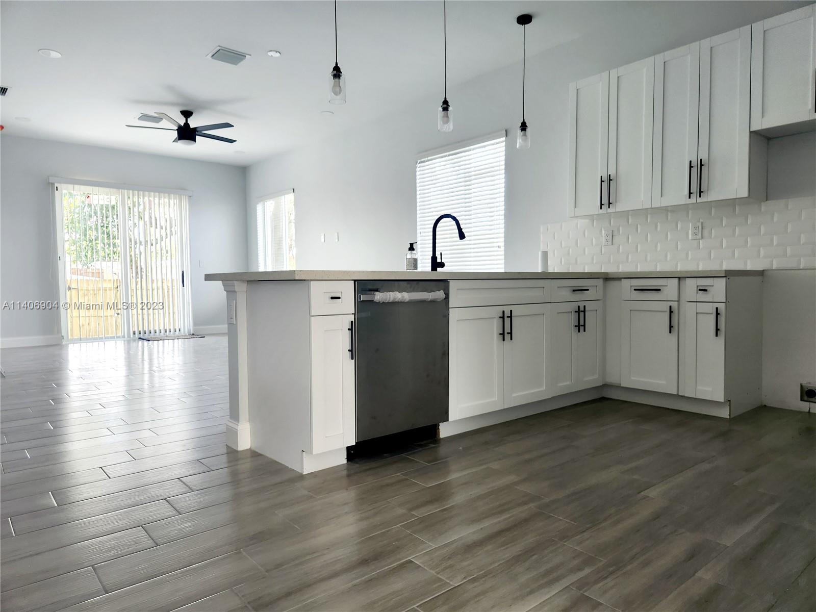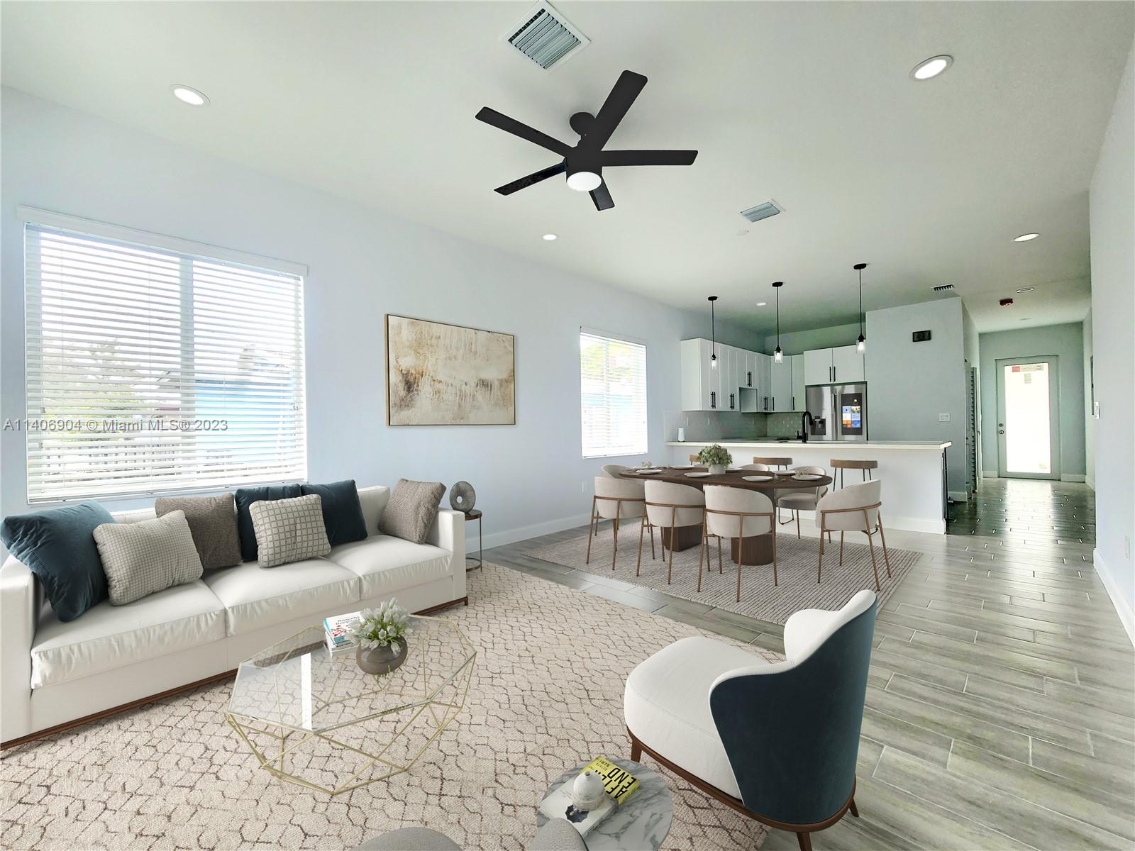 This stunning 2023 New construction residence boasts 4 bedrooms, 3 Bathrooms including a private guest bedroom with a bathroom, ideal for guests or as a mother-in-law suite. The modern design and open layout create a warm and inviting atmosphere throughout. The kitchen features quartz countertops and stainless steel appliances. With 10 ft high ceilings, three parking spots, and impact windows ensuring added security, Experience convenience, tranquility, and peace of mind in the serene backyard of this exceptional home. Strategically located you'll enjoy easy access to Oakwood Plaza and Dania Pointe, recognized as major economic driver in the area, where a variety of dining, shopping, and entertainment options await. The I95 Highway, Airport, Us1, and beaches are all just a short drive away