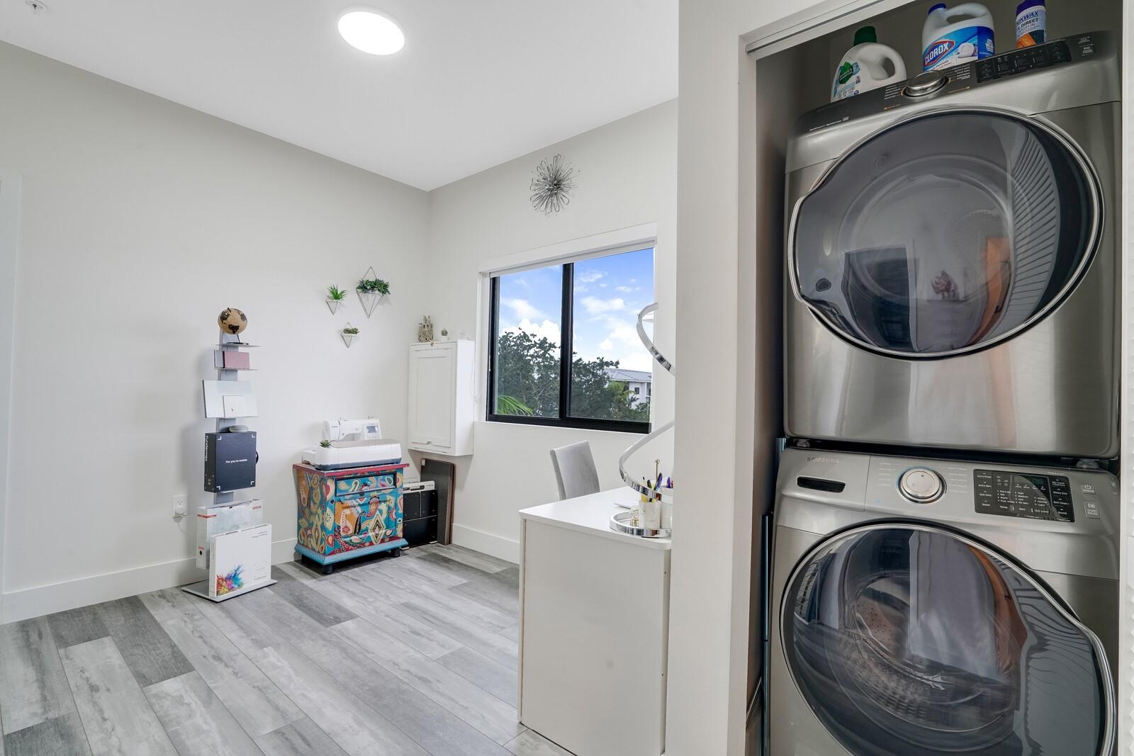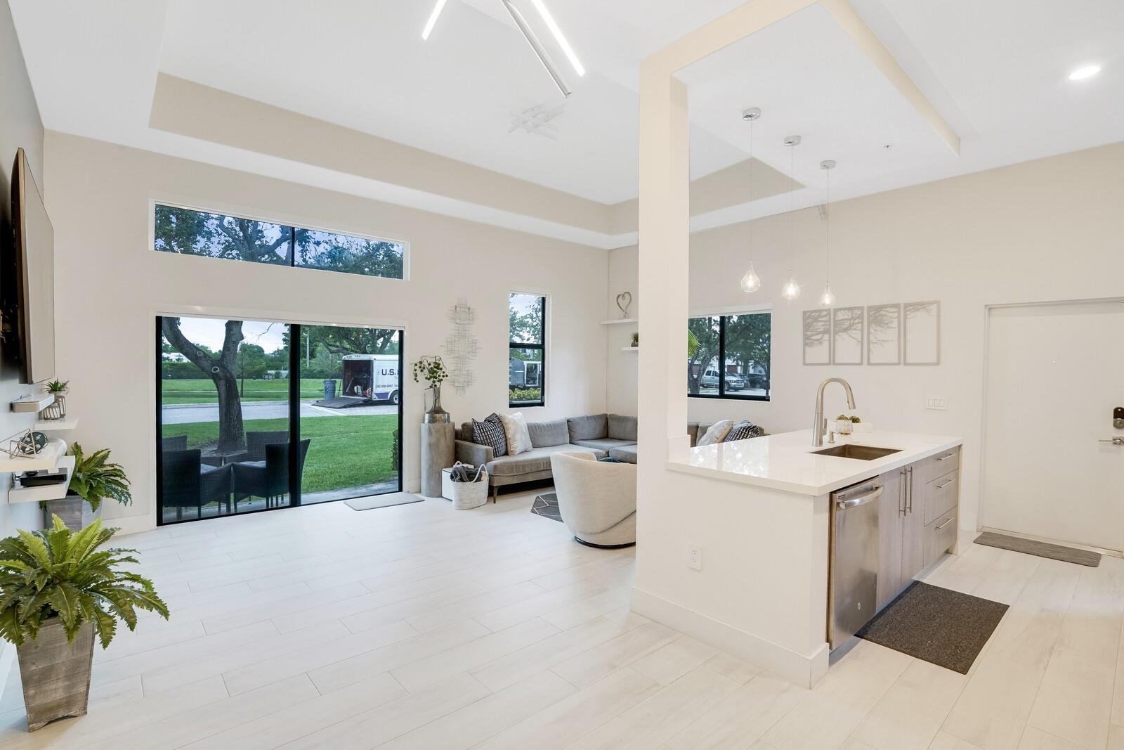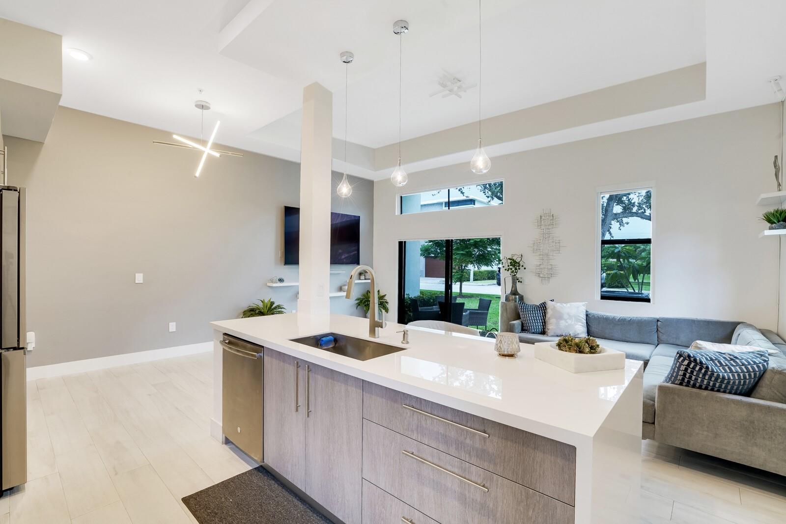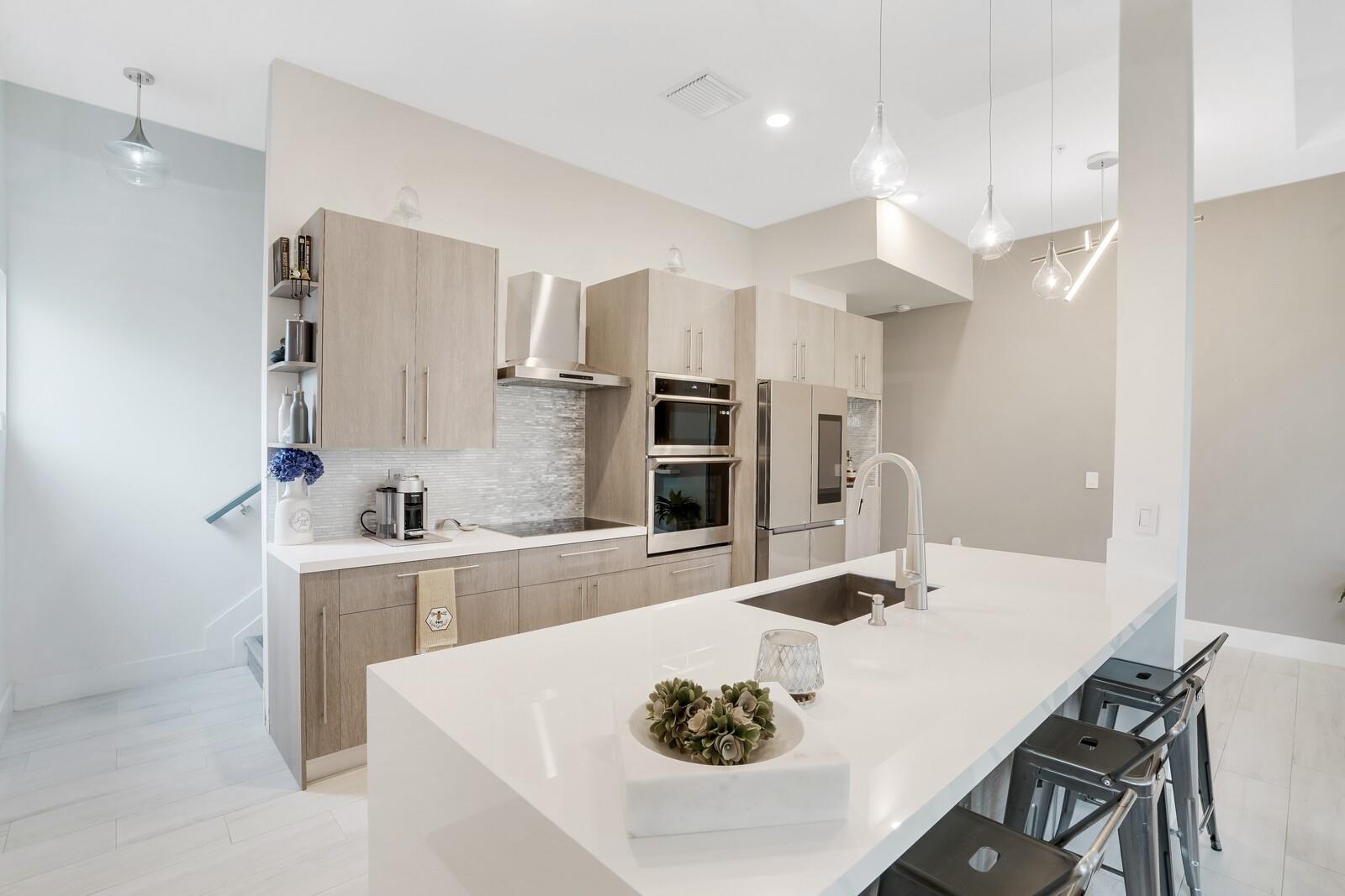 Welcome to Luxury Living in Strata of Plantation! Highly desired corner unit with largest floor plan completely updated from the standard builder’s package. 12’Ceilings on 1st floor with open kitchen, custom Aquabox cabinetry, wall oven & microwave, flat top, XL fridge, gentleman’s bar finished with white porcelain countertops. 2nd floor has Nucore luxury vinyl floor with 2B, 1Den, 1Bath, 1 master suite with his/her closets with built-ins, private balcony, dual vanity and frameless shower. Entire Home can be controlled remotely via SMART system, alarm, gate and more (see attachments). All lighting upgraded to exclusive modern fixtures throughout home. Impact windows/door. Blackout remote shades throughout, bonus workroom in garage. No detail has been spared in this must see home!