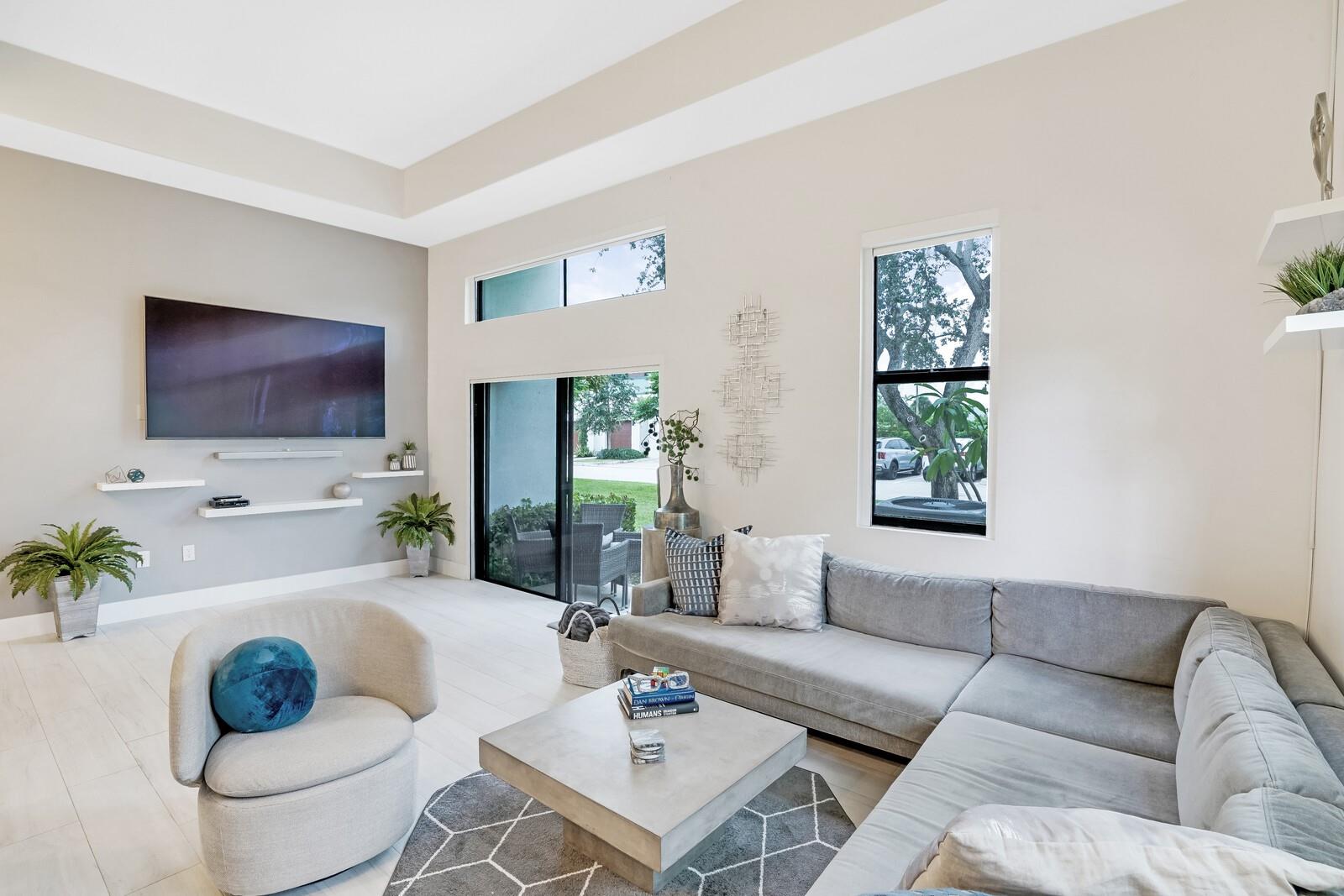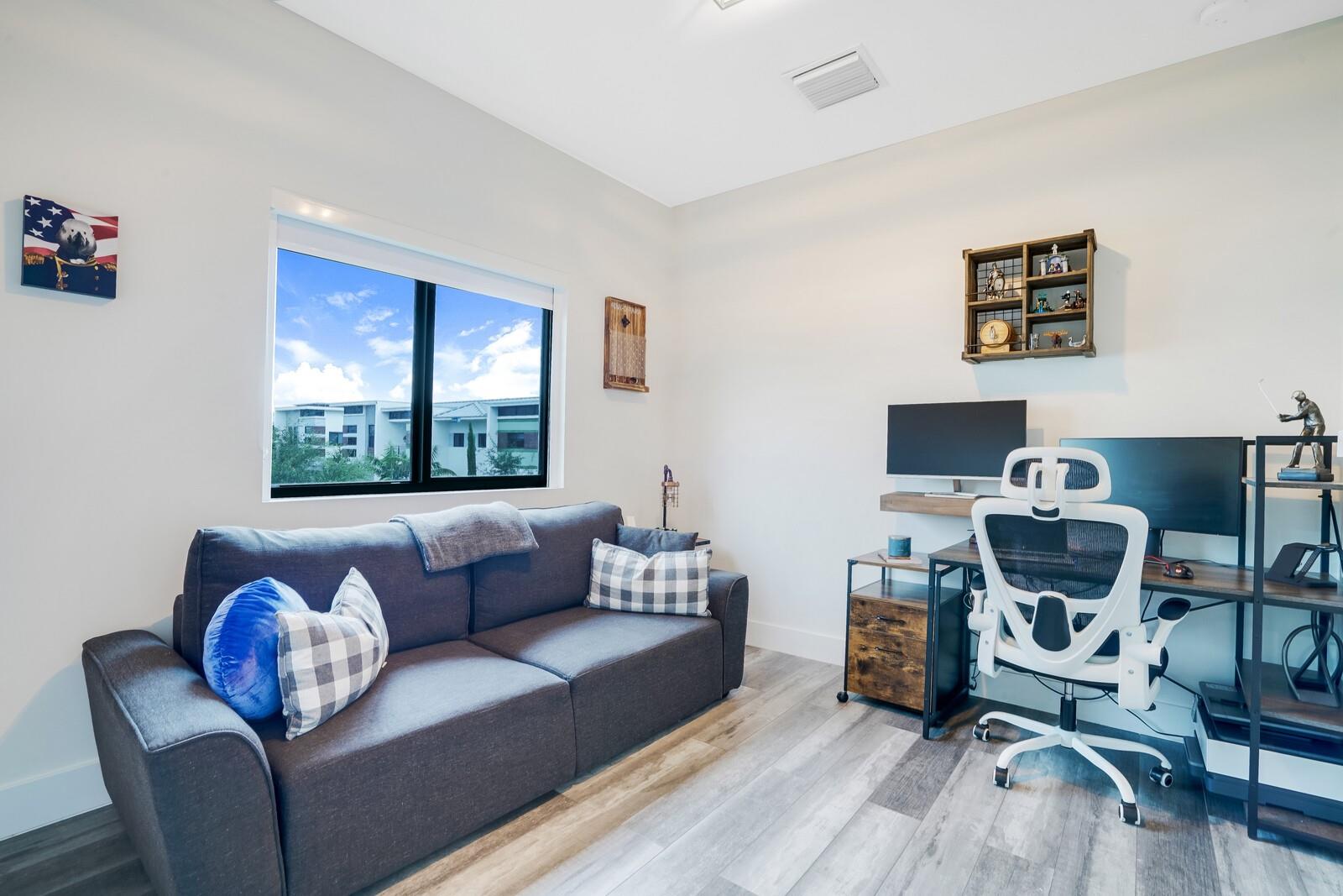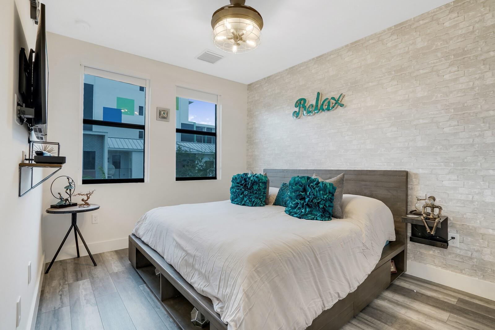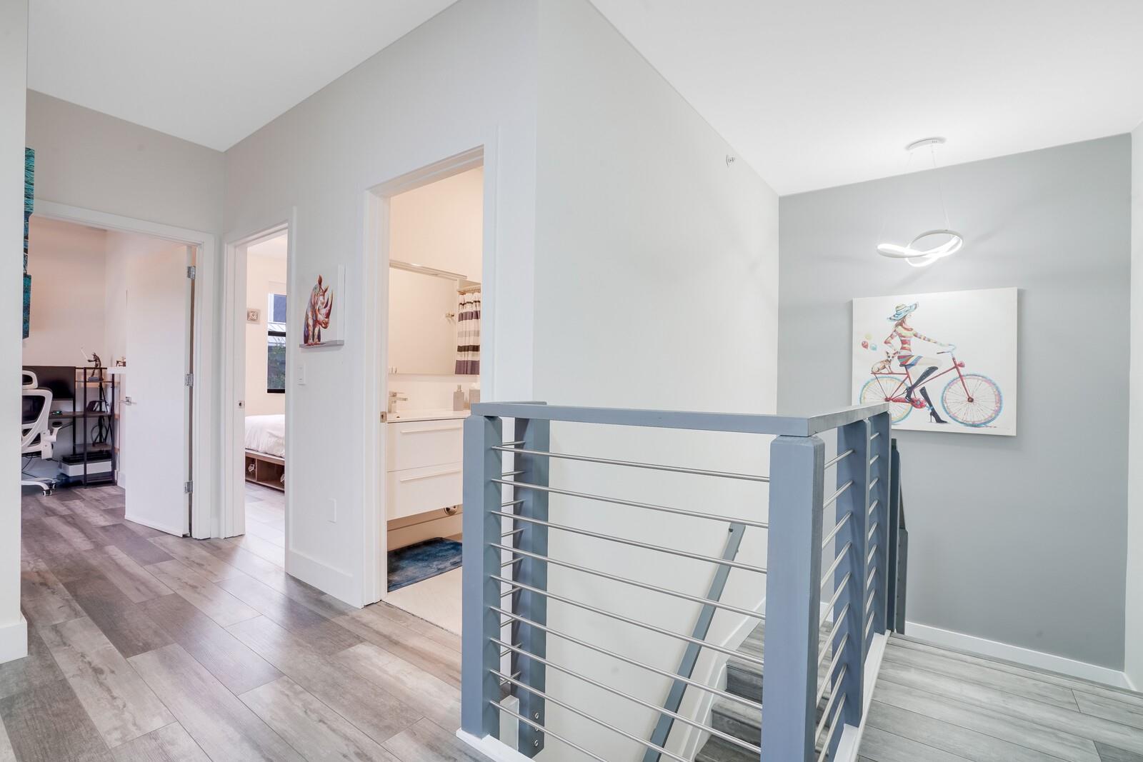 Welcome to Luxury Living in Strata of Plantation! Highly desired corner unit with largest floor plan completely updated from the standard builder’s package. 12’Ceilings on 1st floor with open kitchen, custom Aquabox cabinetry, wall oven & microwave, flat top, XL fridge, gentleman’s bar finished with white porcelain countertops. 2nd floor has Nucore luxury vinyl floor with 2B, 1Den, 1Bath, 1 master suite with his/her closets with built-ins, private balcony, dual vanity and frameless shower. Entire Home can be controlled remotely via SMART system, alarm, gate and more (see attachments). All lighting upgraded to exclusive modern fixtures throughout home. Impact windows/door. Blackout remote shades throughout, bonus workroom in garage. No detail has been spared in this must see home!