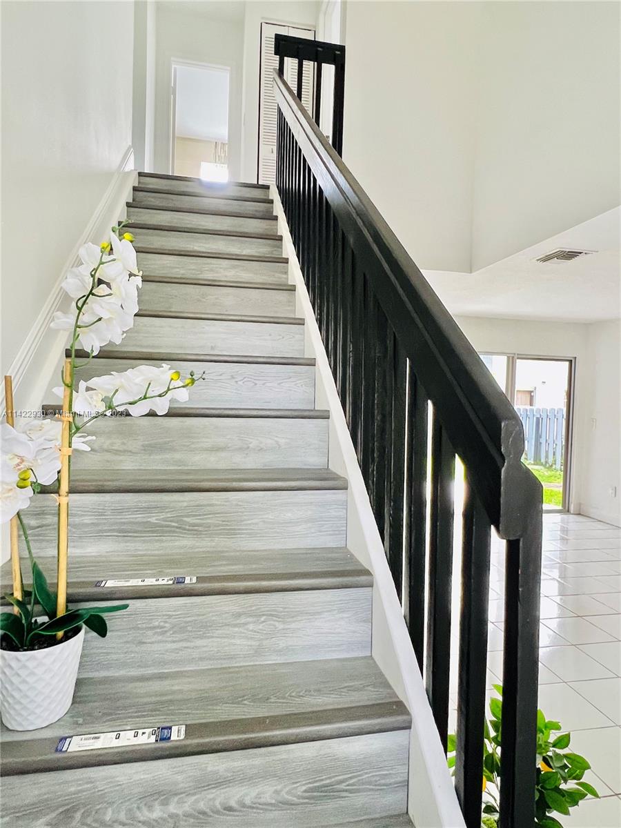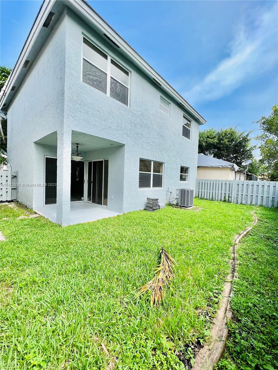 Beautiful 2 Story home, 3/2.5 bathrooms has been updated. BRAND NEW ROOF. It features an open concept main level with living room vaulted ceilings, tile and laminate new floorings in the bedrooms, dining area with a beautiful contemporary "ice-cube" design lighting feature. The kitchen boasts quartz counters with backsplash, stainless steel appliances, white kitchen cabinets and ample storage. Full size washer and dryer. The backyard oasis is ideal for entertaining or just relaxing out on the porch or fenced green space. There is a single car garage, 2 parking pads and guest parking (car garage has been converted into a living area, this area can easily be converted back). Community has a great pool and play areas.