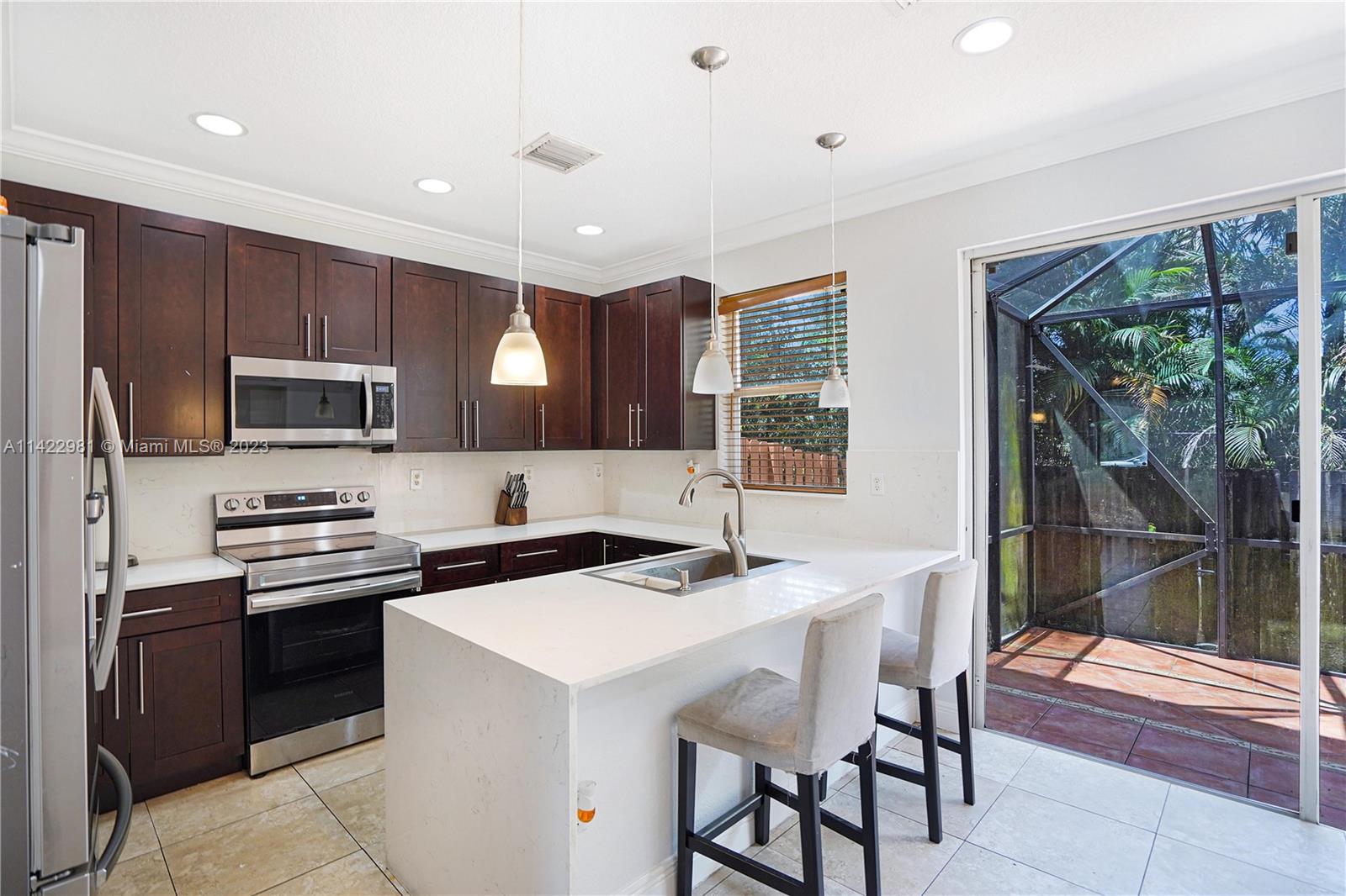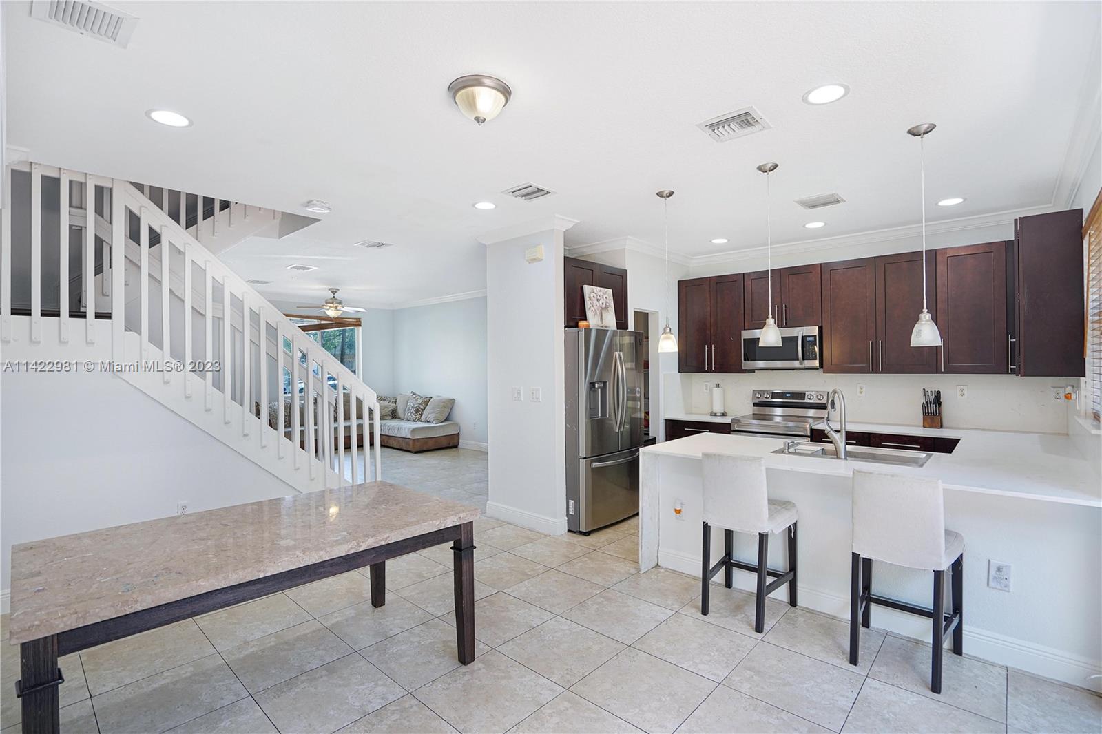 Welcome to this beautiful, spacious, 3-bedroom, 2.5 bathroom townhouse that would fit to create a perfect dwelling. Be captivated by the warm dark brown kitchen cabinetry, complemented by white quartz countertops and stainless steel appliances. The dining area, accompanied by bright sliding doors, connecting to the back patio, inviting the outdoors in. This home offers the convenience of a separate laundry room, with tile flooring downstairs for easy maintenance and wood vinyl flooring in the upstairs bedrooms. Enjoy this quiet community, while being located near major highways and shopping centers, ensuring everything within reach. Don't miss out on the chance to make this dream home yours. Call or text L/A for showings.