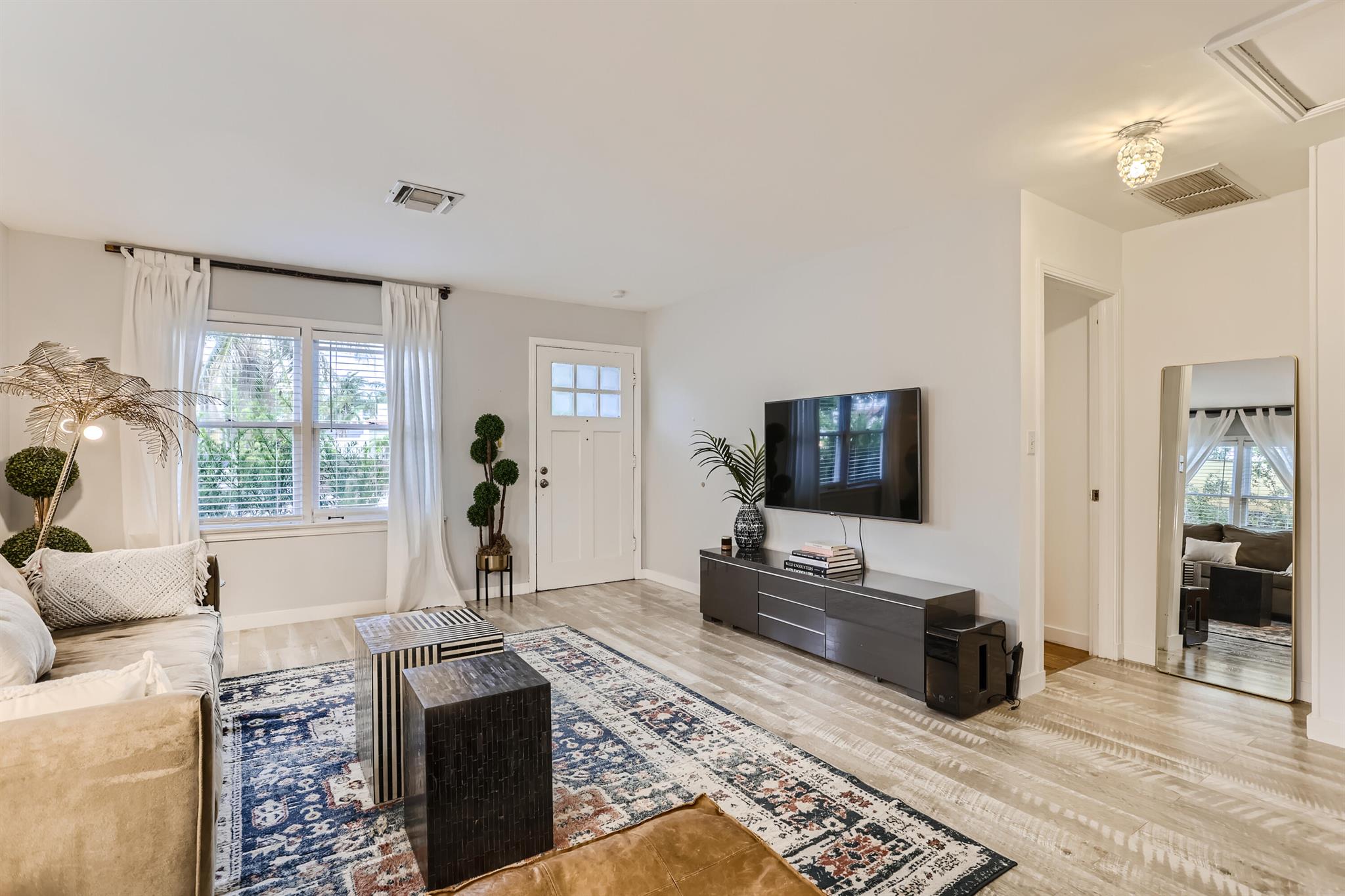 Welcome to Casa Nottingham! Whether your first home or your new, home away from home, this cozy, updated cottage with room for a pool is just a 5 minute drive to the ocean. This beach breeze property has 3 light & bright bedrooms, 2 renovated baths, warm, wood floors, a separate pantry/laundry room/even workshop, & a convenient shed out back to allow for plenty of storage. The kitchen features stainless steel appliances, a gas range, granite countertops, tile backsplash, & white cabinets. You will not find a home this lovely & only a bike ride away from the great shopping of Antique Row, plus the entertainment, culture, dining, schools, museums, & parks that W. Palm Beach has to offer!