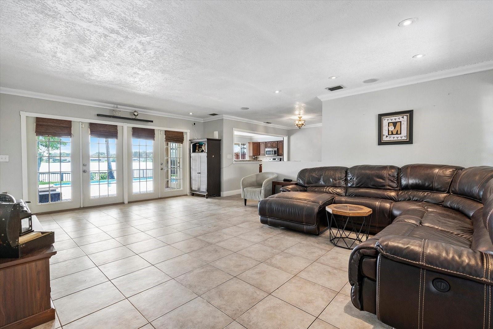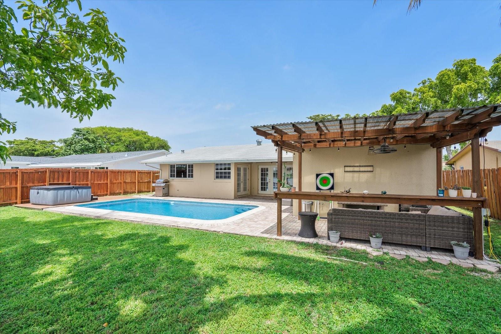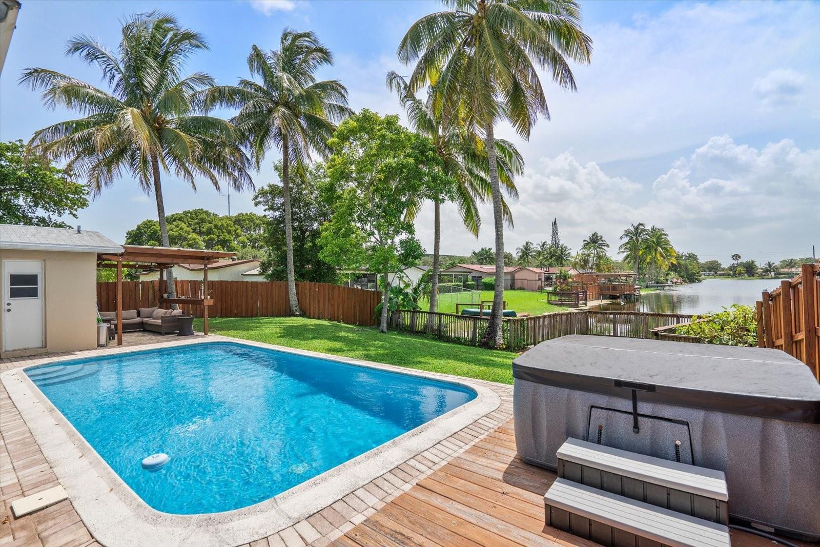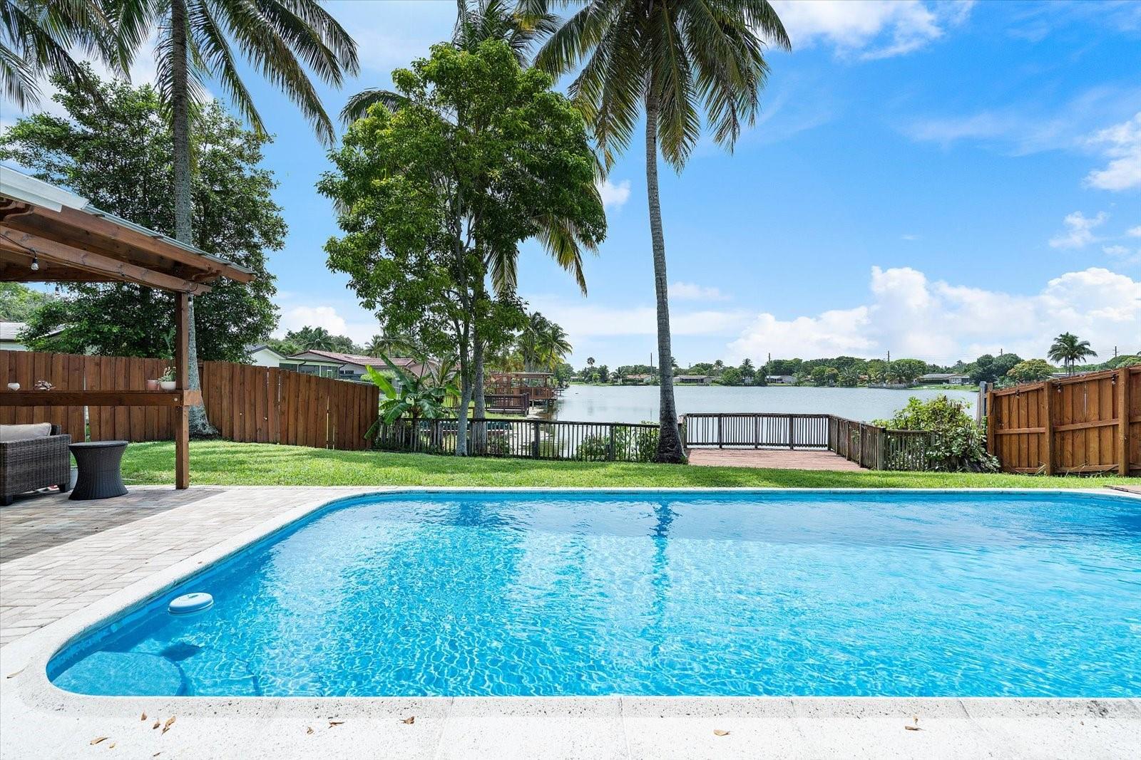 Spacious 3 Bedroom 2 Bathroom Lakefront Home With Pool! This home features tile flooring in the main living spaces, a large primary suite that leads out to the pool, and water views from all main living spaces. The kitchen has ample space with granite counters, stainless steel appliances and is partially open to dining & living rooms. Outside there is a brick-paved covered patio and pool surround, stained pergola for gazing on the lake, and plenty of greenspace. You also have the option of enjoying additional under-air living square footage in the converted two-car garage or to use it as a garage. The roof is approximately 7 yrs, HVAC 3 yrs and hotwater tank 2 years.