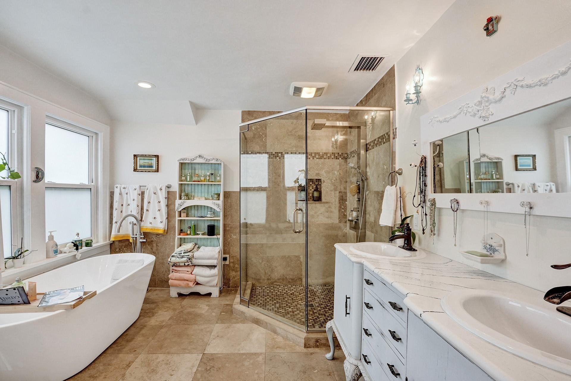 E. Hollywood charmer gorgeously remodeled maintaining all the vintage character! Fall in love w/this 2BR/2BA, 2 story main house w/a massive detached cottage. Hardwd flooring, mosaic tile fireplace, decorative archways in liv. area & formal dining. Beautiful kitchen w/wd cabinetry, gas stove & granite counters. Spacious primary BR w/vol. ceilings & a priv. bath w/custom vanity, lavish spa tub & sep. shower. Updated 2nd bath. Impact picture windows & doors. Chicago pavers & clawfoot tub in tropical courtyard leads to studio & sep laundry rm. High ceilings, updated kitchen & bath & impact sliders in cottage. Income potential! The energy in this house is amazing! The beach is just bike ride away. Walk to ArtsPark, restaurants, shopping & incredible new projects underway in downtown Hollywood.
