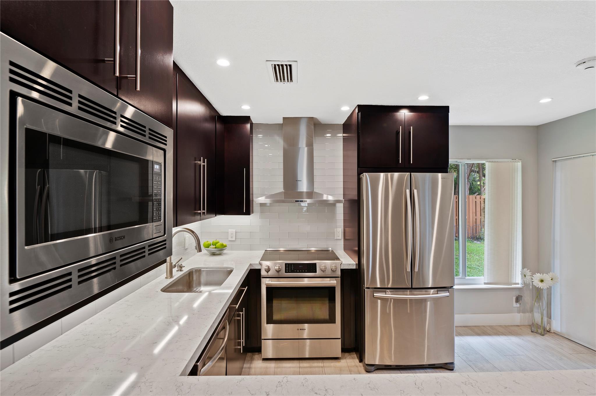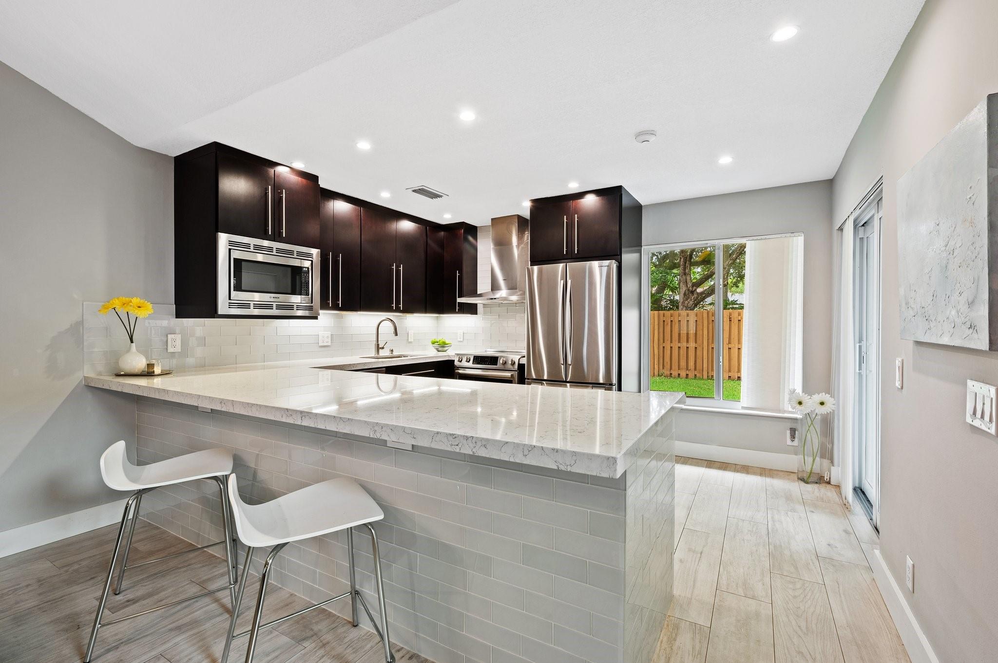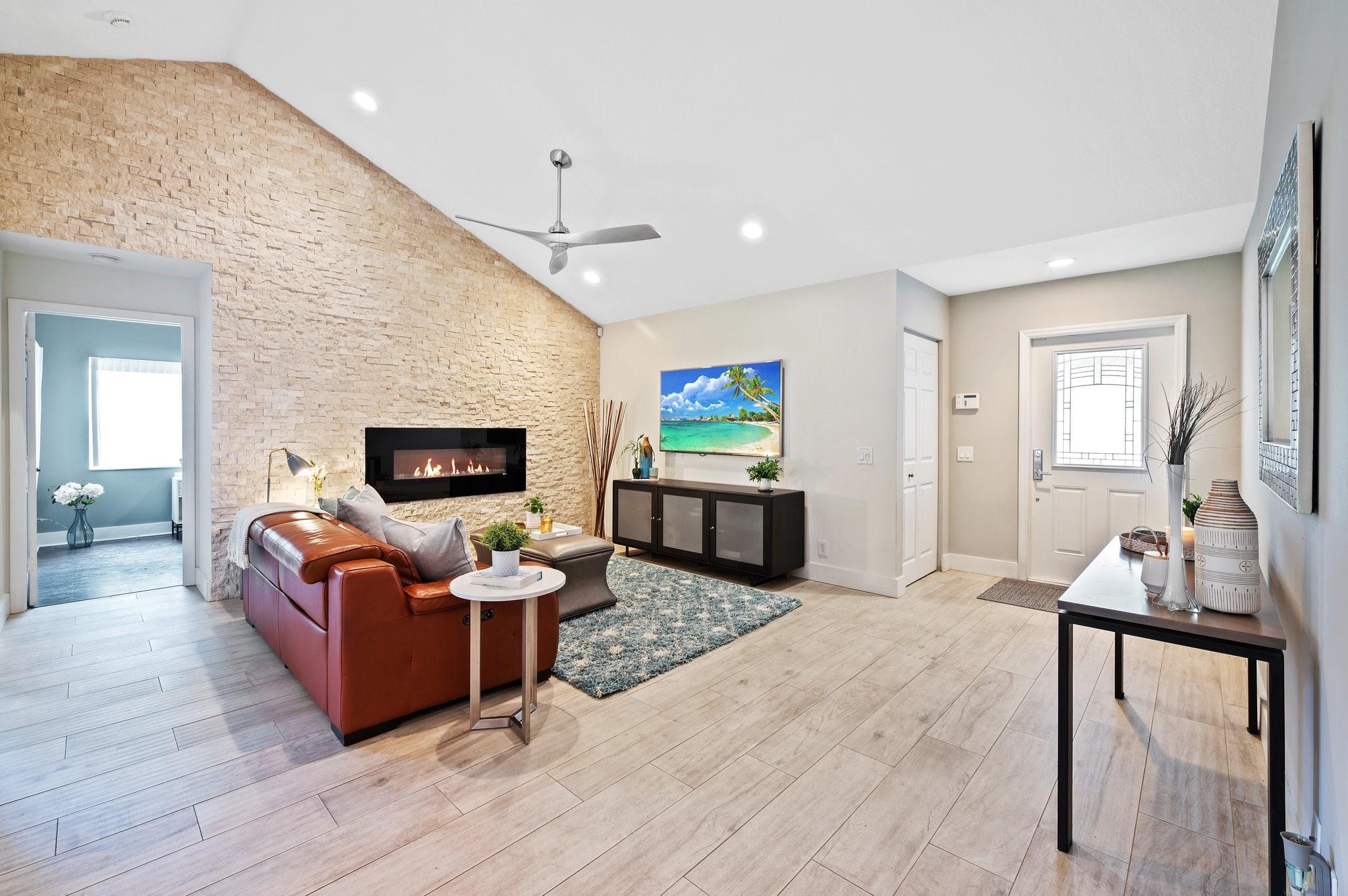 Gorgeous remodeled modern 2BD/2BA single story in charming Country Isles with fully fenced yard & fabulous 18x19 covered screened patio for indoor-outdoor living! IMPACT GLASS doors & windows, incl garage & front door. New porcelain floors, high baseboards, custom stone wall w/decorative fireplace in liv room, high-end ceiling fans, remodeled bathrooms, LED lighting. New modern open kitchen with peninsula island, high-end Bosch appliances, incl wine refrigerator, quartz counters, glass tile backsplash, undermount lights. Wood in bedrms, security cameras, AC & W/D 2019, all electrical replaced & upgraded 2017, patio pavers 2022, water heater 2015, roof 2006. Attic w/storage, 1CG/2Car paver drive/walkway, new professional front landscape, gutters. HOA incl lawn. Near comm pool, park, stores.
