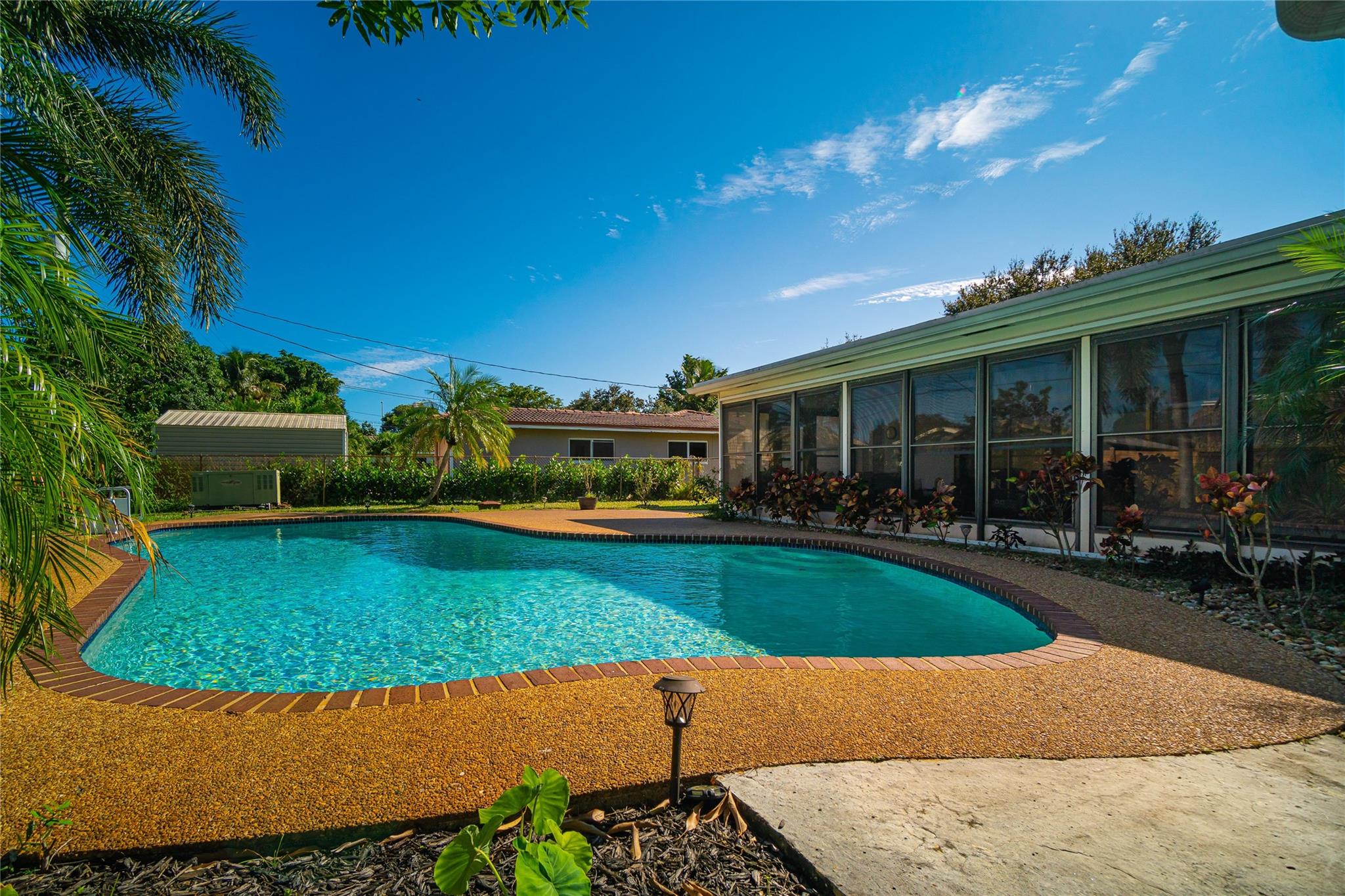 Welcome home to this fabulous 3 bedroom 2 bathroom pool front oasis in Plantation Park - one of the most sought-after neighborhoods in Broward County. This home features updated kitchen with quartz countertops, tile floors throughout, and pocket doors that open to a large patio right next to the pool. Updated bathrooms with large custom closets with lots of storage. Outside, there's a whole house generator (with underground propane tank) and security cameras around the perimeter. HVAC system replaced 2020 and roof 2019. Dining Room chandelier and washer/dryer do not convey with property. Hurry, this home will not last long!
