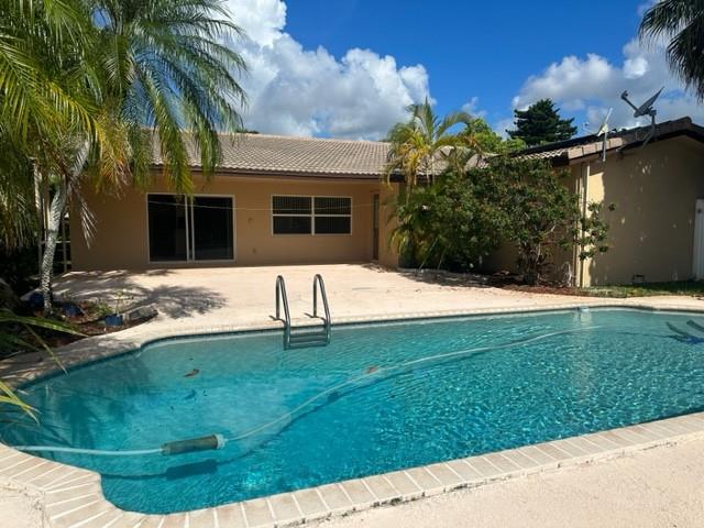 WOW! CLEAN 4 BED/3 FULL BATH WITH SPARKLING, HEATED POOL & COVERED PATIO. CABANA BATH, SPLIT BEDROOMS ON LARGE FENCED CORNER LOT. Freshly painted inside and out, this home has STORM IMPACT WINDOWS/DOORS. Large Eat in kitchen features a cooking island, window and lots of cabinets. With new flooring through out, you can move in and make other updates as you go along. Enjoy your sitting by the pool in your tropical large back yard with fruit trees. NO HOA! ROOF 2008, AC 2016. Don't miss this opportunity! MULTIPLE OFFER SCENARIO; PLS SUBMIT HIGHEST/BEST OFFER BY TUES 8/8/23 AT 3PM.