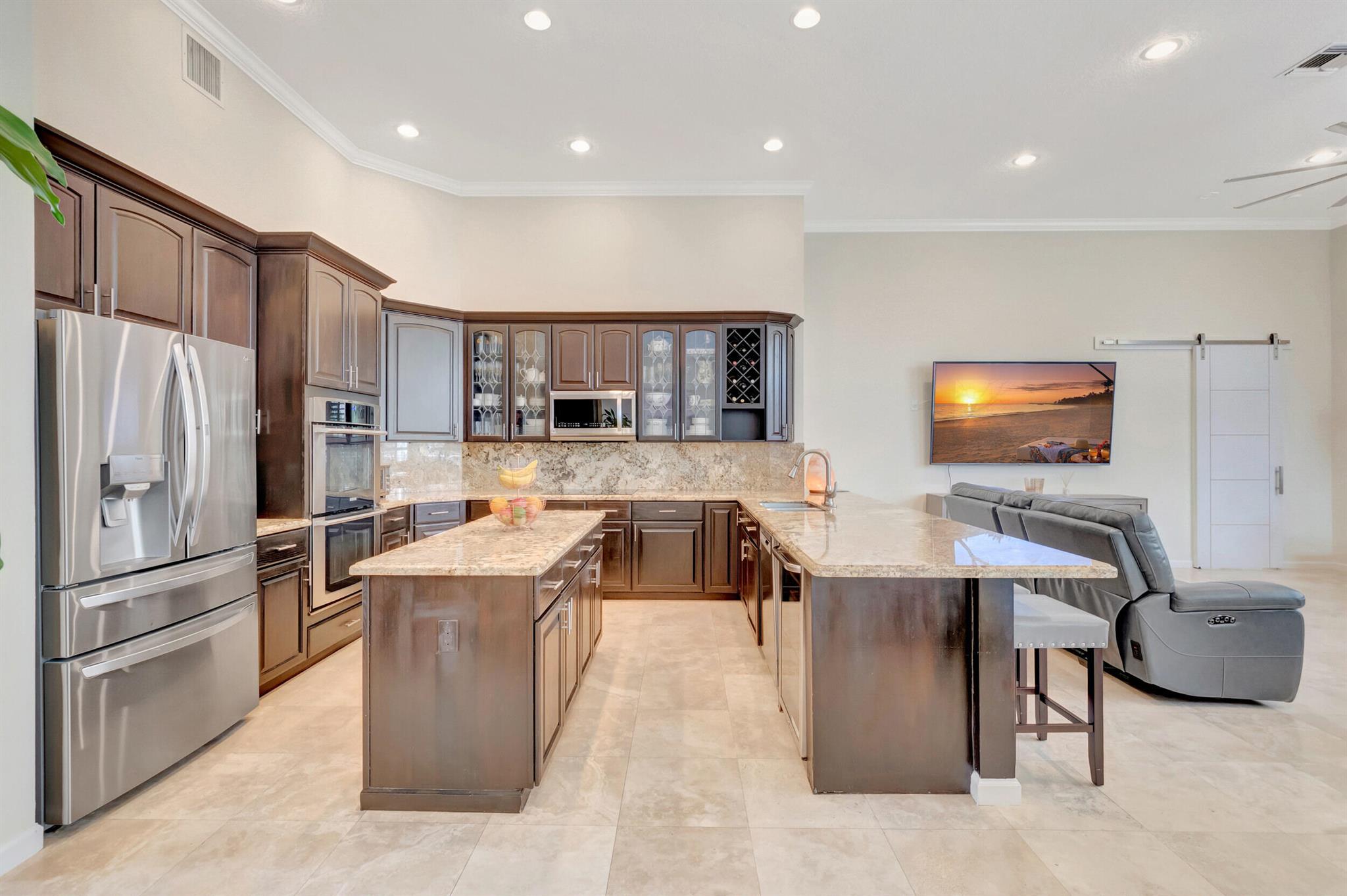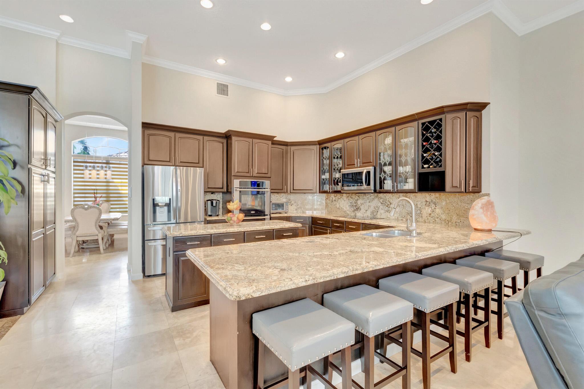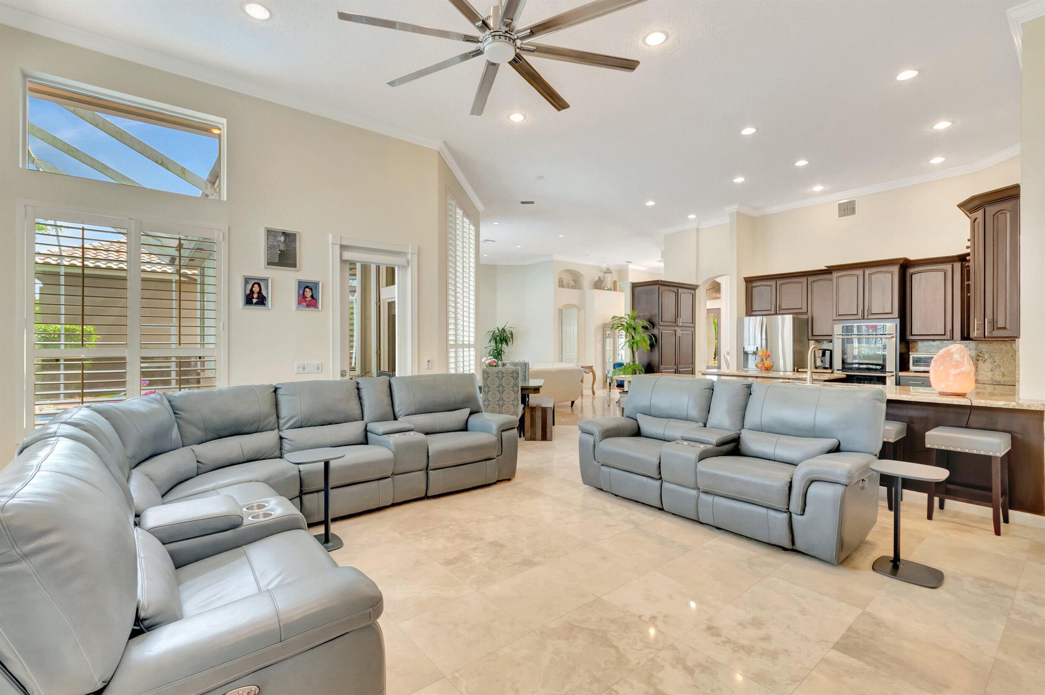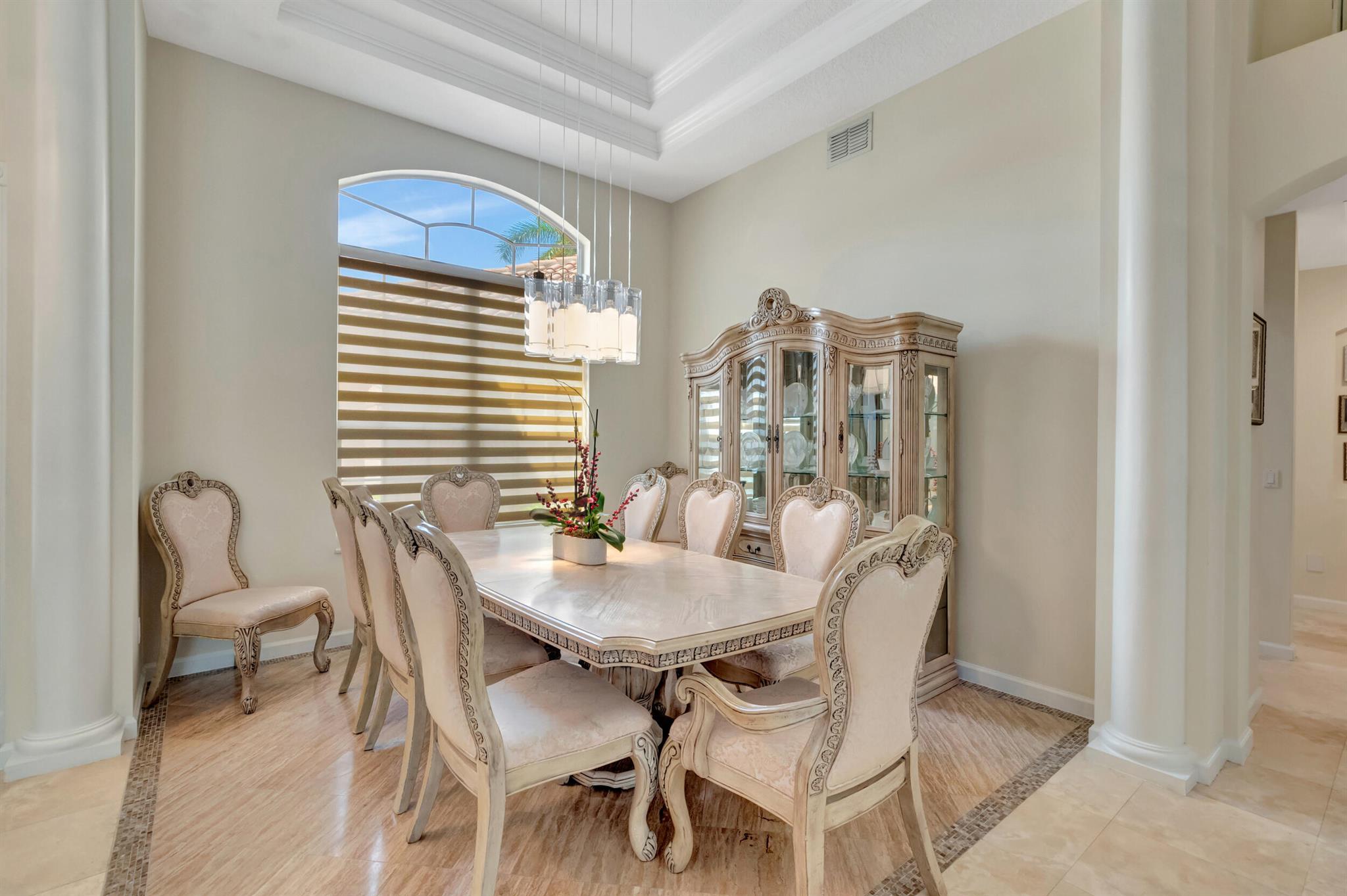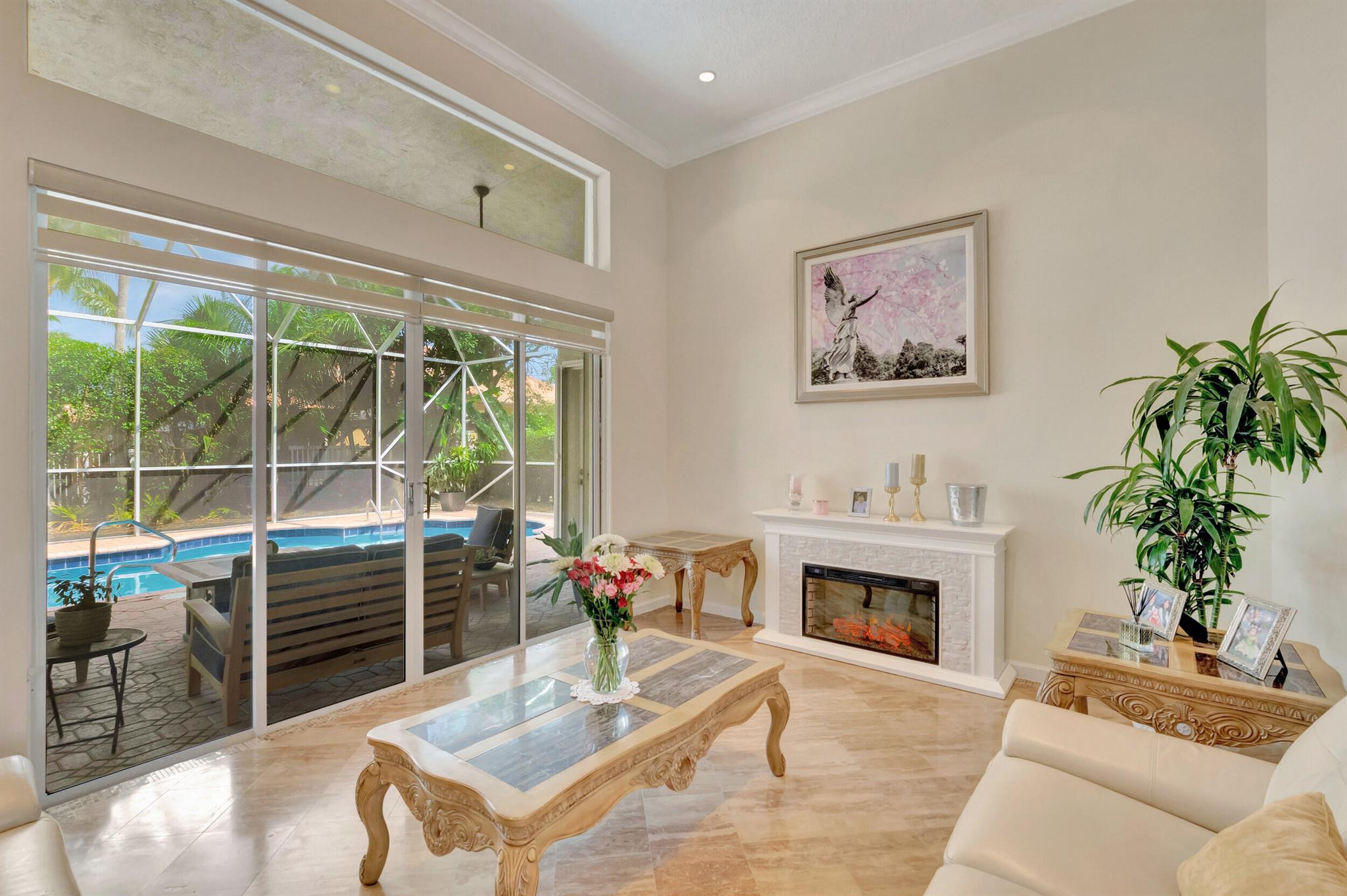 Welcome to your dream home - the Baccarat model, an exquisite, single-level estate nestled in the highly desirable ''Crystal Point'' enclave within the Boca Falls guard-gated community. Where elegance meets privacy and comfort.Spread across a spacious and well-thought-out floor plan are 4 bedrooms 1 Office and 4.5 baths, complete with soaring ceilings adorned with crown molding, opulent marble and hardwood flooring, and an abundance of natural light. The generous living space includes a den, easily convertible into a fifth bedroom, providing flexible options for a growing family or guests.Step inside to discover high ceilings adorned with elegant crown molding, exquisite marble and wood flooring, and an abundance of natural light throughout the home.