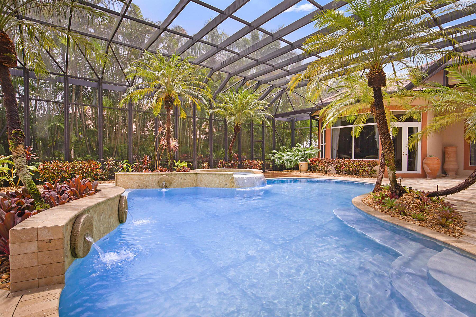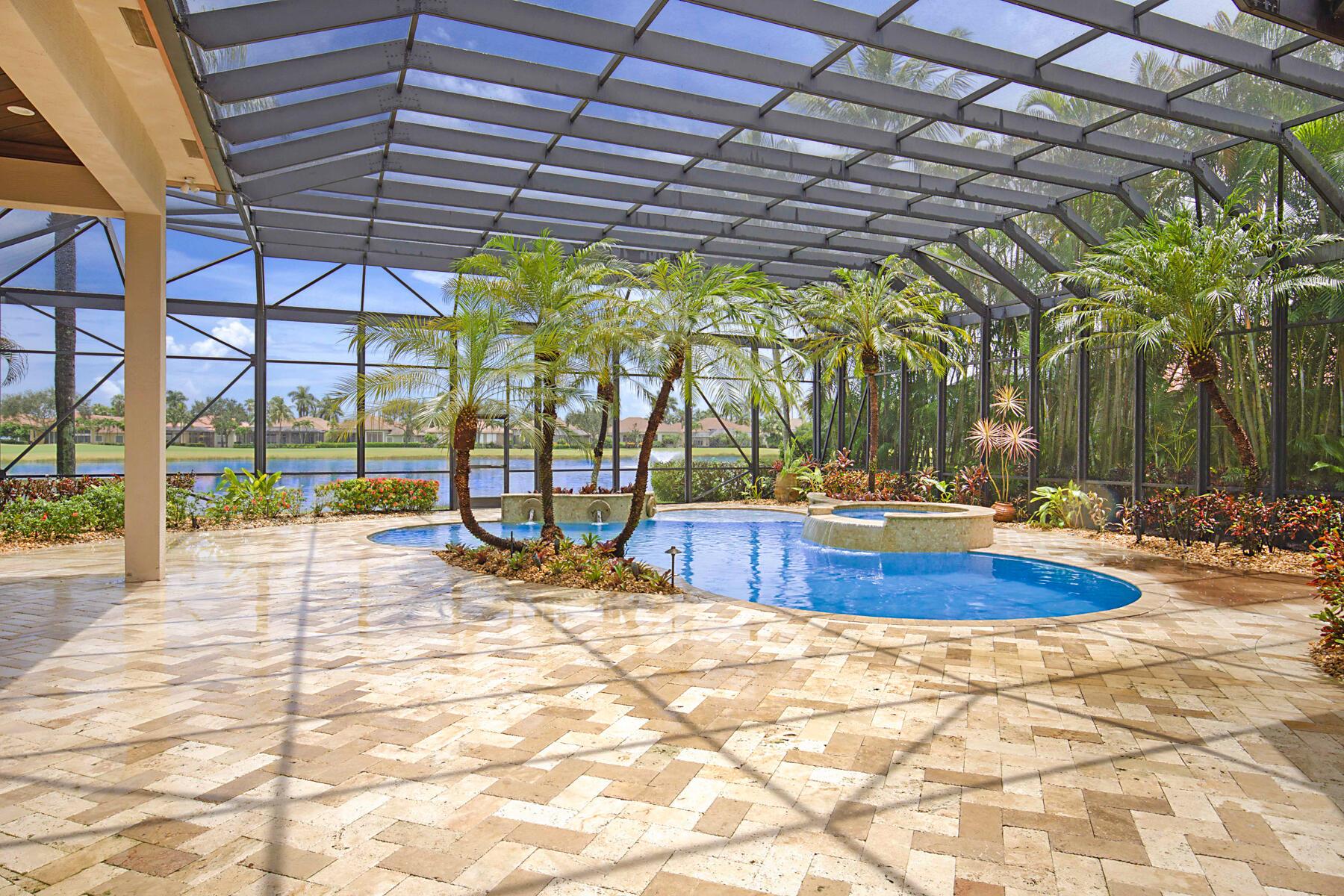 Stunning custom home features expansive outdoor living space, prime unobstructed water/golf views. This Southern home features 4BR/4.5 BA+generous office/library. ''Premier MEMBERSHIP'' available w/this home. Impact windows/doors throughout.Circular drive is set-off by architecturally designed landscape.New LED lighting installed throughout.Chef's kitchen opens to large family room, easy to access outdoor living space. Features kitchen aid side-by-side, wall oven, warming draw, gas range with griddle + pot filler.One bedroom can be used as a private suite. Bring the outdoors in with this enormous screened pool area complete with summer kitchen, one-of-a-kind custom pool/hot tub-perfect for entertaining. Includes rare fenced side yard. Membership to ''The Club at Ibis'' required