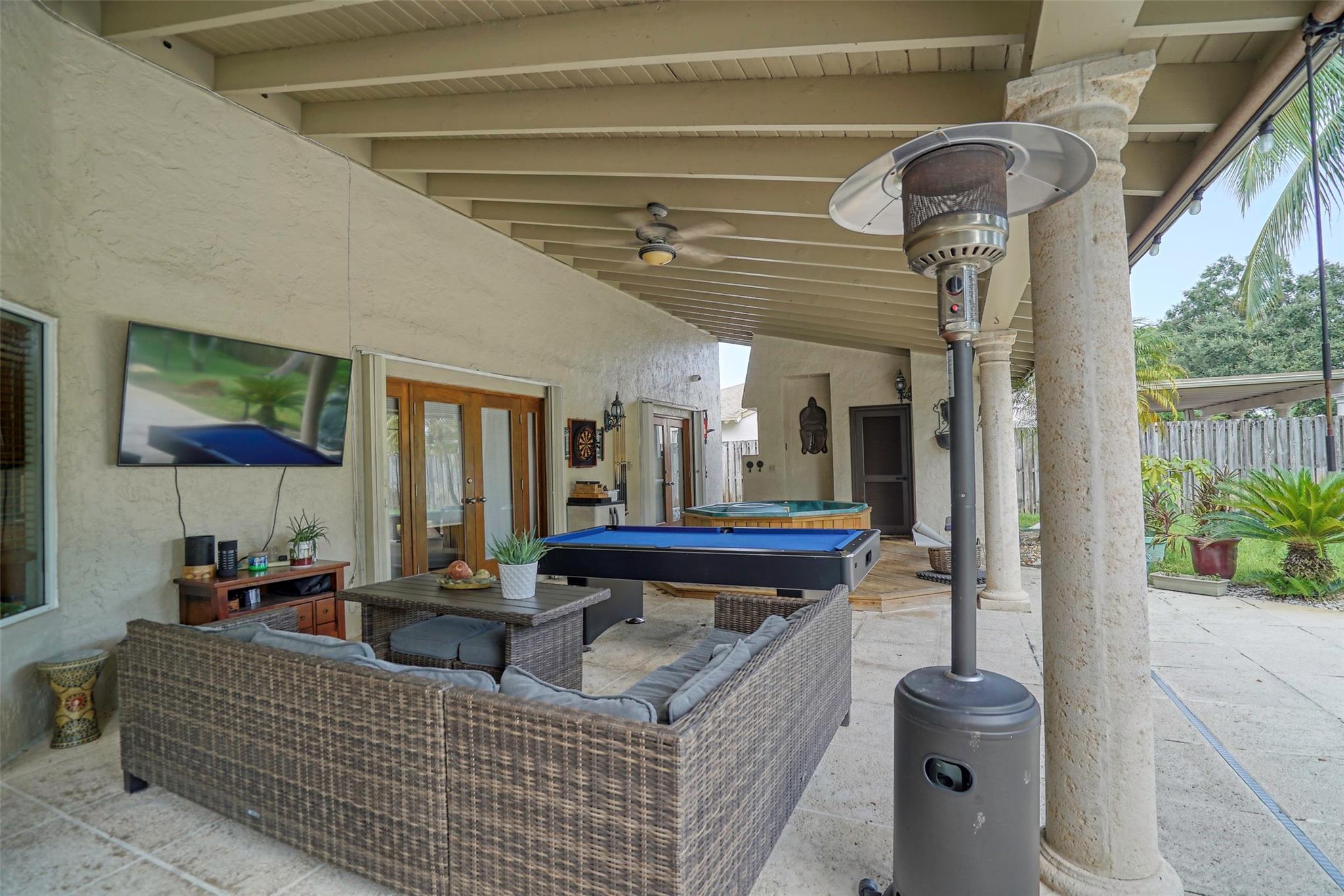 Welcome to this stunning 3-bedroom home with an additional bedroom suite, nestled in the sought-after Shenandoah. The open floor plan, vaulted ceilings, and ceramic tile create a captivating ambiance. The large gourmet kitchen with French doors leads to the inviting pool area. Imagine laughter as guests enjoy the saltwater pool and spa. A full pool bathroom offers convenience for outdoor living. Tranquility awaits in the master bedroom on the 1st floor, with an expansive master bathroom. Upstairs, two bedrooms and an extra bedroom offer versatile spaces. The roof is approximately 4 years old. Excellent shopping, delightful restaurants, and easy access to major expressways, you will have everything at your fingertips.