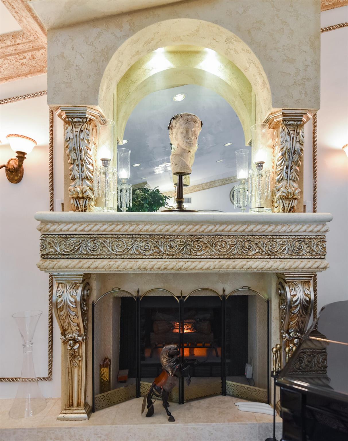 Welcome home to this immaculate, european inspired, single-story lakefront home w/ polished venetian plaster walls & ceilings, highlighted w/ gold leaf pillars & tasteful finishings. This unique, professionally decorated, showcase home, boasts a semi-open floor plan w/ gorgeous golf/lake views. With ample natural light inside, venture outside & discover a peaceful resort style pool, summer kitchen, & lovely gazebo overlooking a tranquil lake & award winning golf course. Perfect for relaxing or entertaining while surrounded by nature's beauty. This home offers a fantastic blend of comfort, style & active community living, in a secure, friendly country club environment, w/ golf, tennis, pickleball, fitness center, pool, clubhouse, restaurants & so much more. Membership Required.