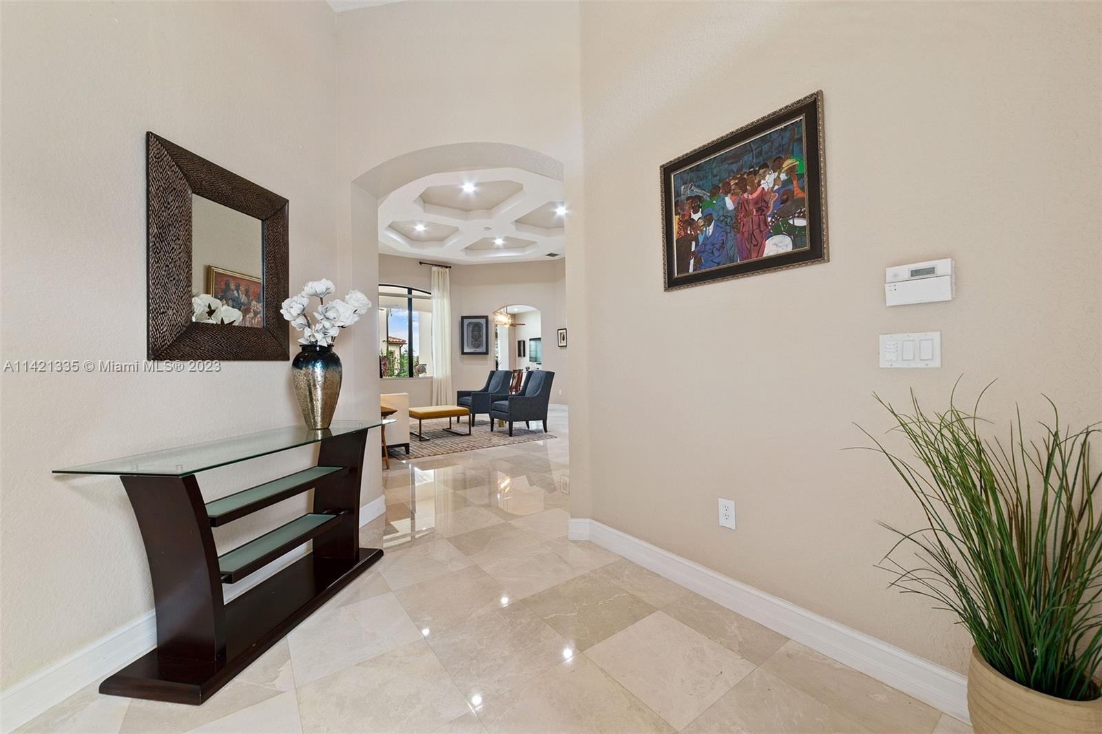 Welcome to Estada at Monterra Cooper city Florida! This one story single family home is situated on a corner lot in Cooper City's most sought after community. Estada is composed of 145 homes which sit behind closed gates with 24 hour man gated security. The Bonita Model offers 4 bedrooms including a massive owner's suite that will not disappoint & 3 full baths. Additional features include formal dinning & sitting room , open concept kitchen to family room, 10 ' ceilings , hurricane impact glass allowing for magnificent views of the pool , marble flooring, laundry room with tub and a 3 car garage. The tranquil outdoor oasis awaits you encompassing a saltwater pool , waterfall, travertine decking & covered Lanai. HOA includes Lawn, Cable & alarm. Proof of funds required.