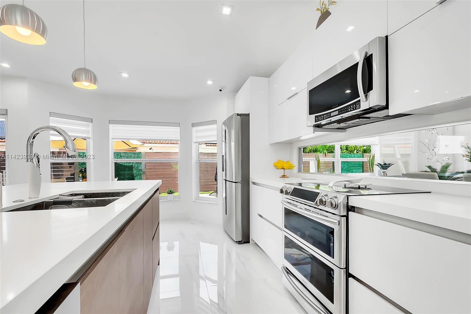 Exquisitely remodeled residence, open floor plan with views of the sparkling pool and private yard! Impact windows, Private garage and additional parking for guests. Enjoy the resort lifestyle of Doral Isles!