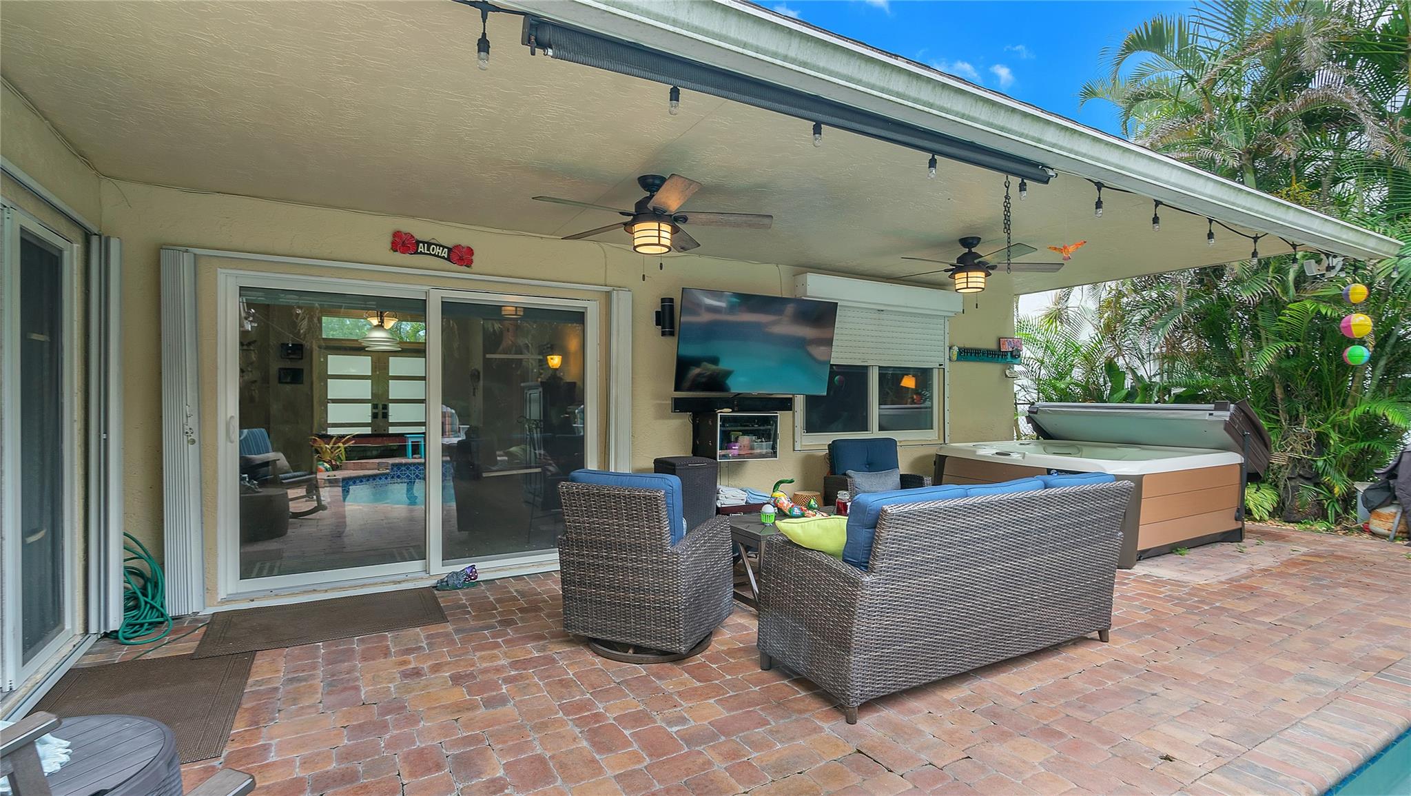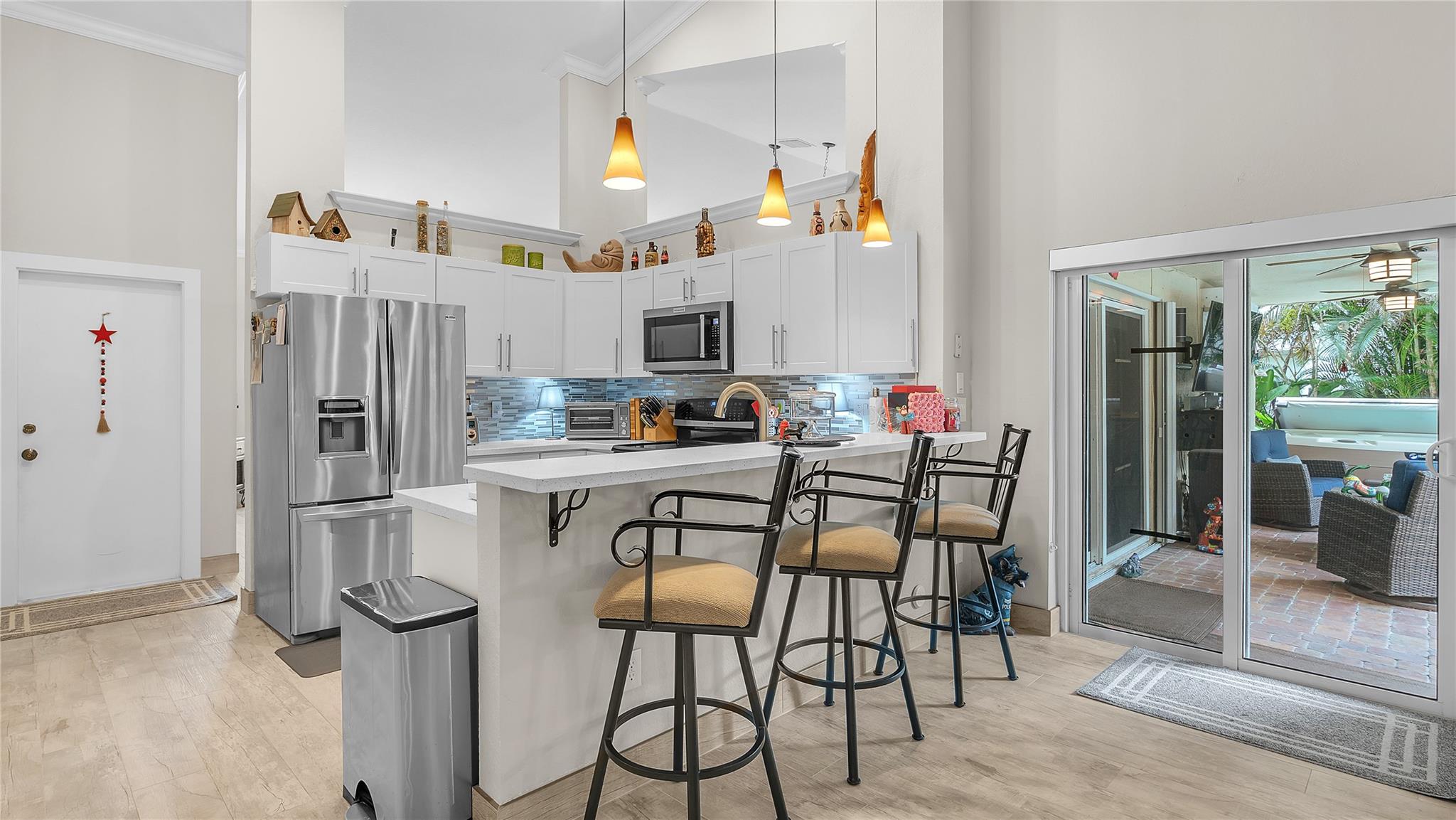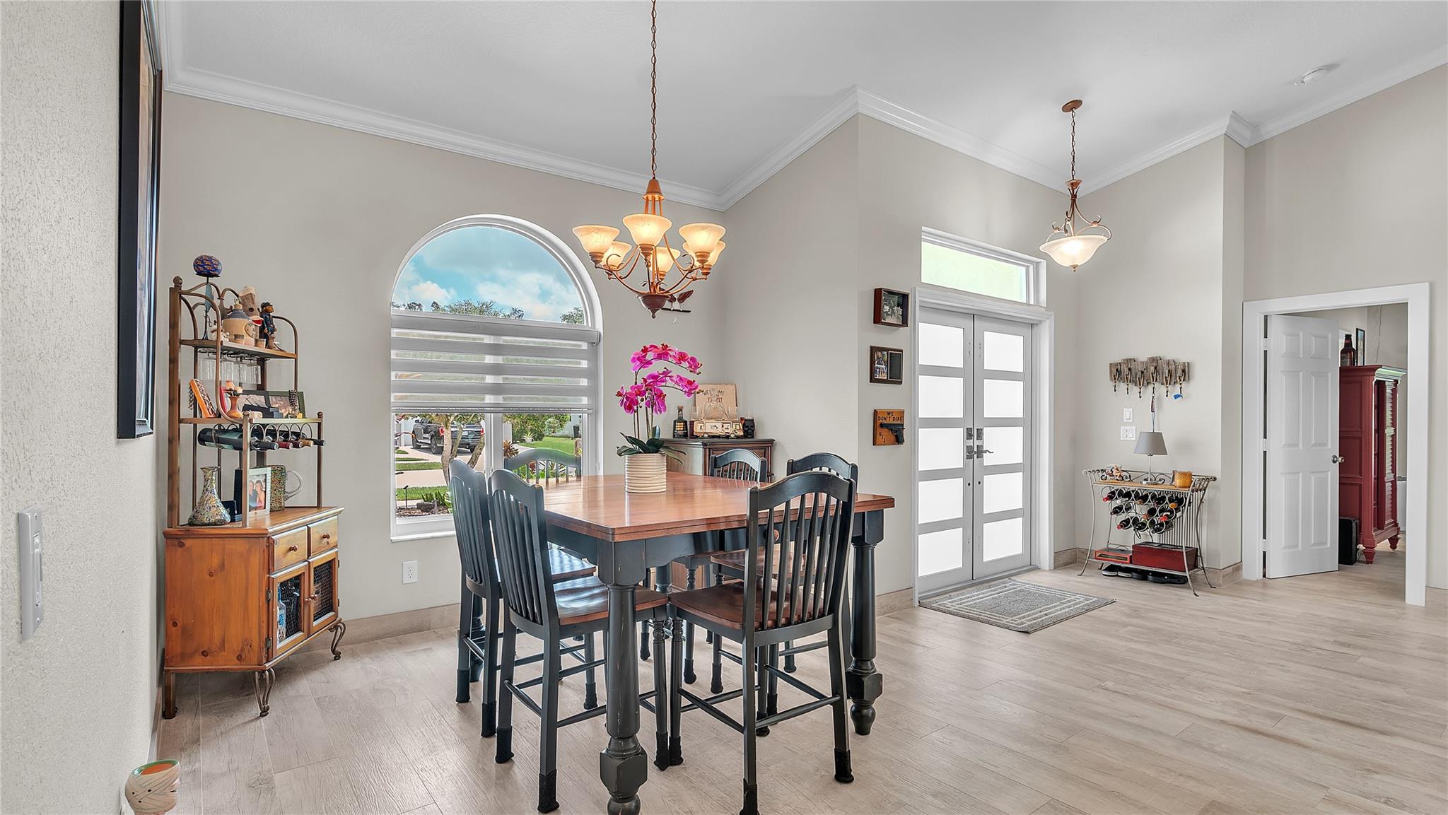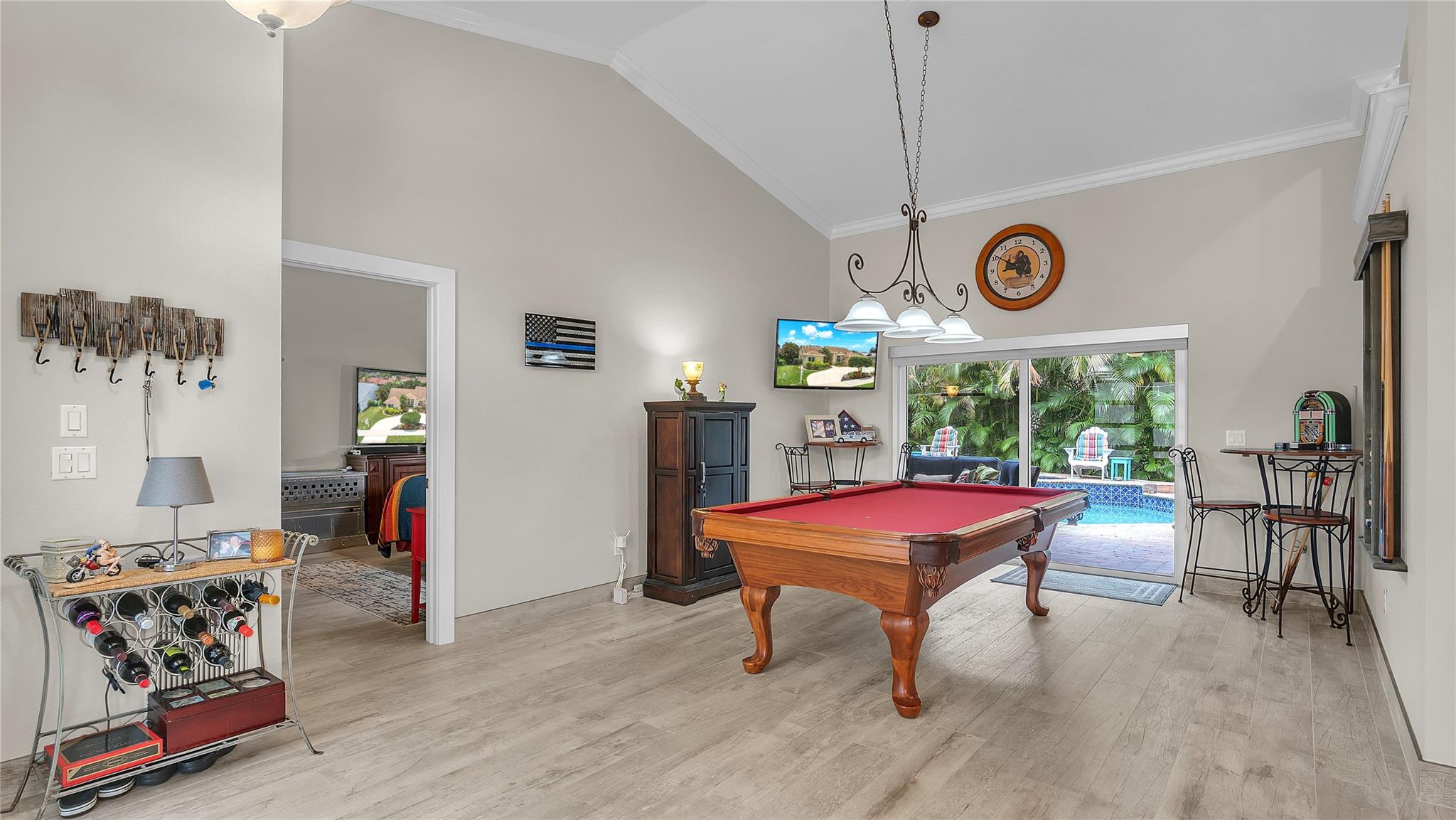 Situated in the quiet community of Nob Hill Palms, ½ Mile from Excellent schools, this pristine 3BR/2BA home boasts Heated Swimming Pool! No detail overlooked with Wood-like Tile flooring throughout the entire home, vaulted ceilings w/crown molding, high impact windows & doors! Gourmet kitchen boasts lots of counter space, pantry, SS Appliances & double oven! Walk in closets in the oversized bedrooms with lots of natural light & all custom Light Filtering Dual Shades throughout! Both modern baths feature double vanities but nothing says Relax & unwind like your stunning master en suite! Fully fenced private backyard, huge covered lanai & still ample room for playsets & toys! Features include 2 New Dual AC Zones, Roof 2016, 50 amp RV Hookup, epoxy sealed garage w/ silent opener & much more!