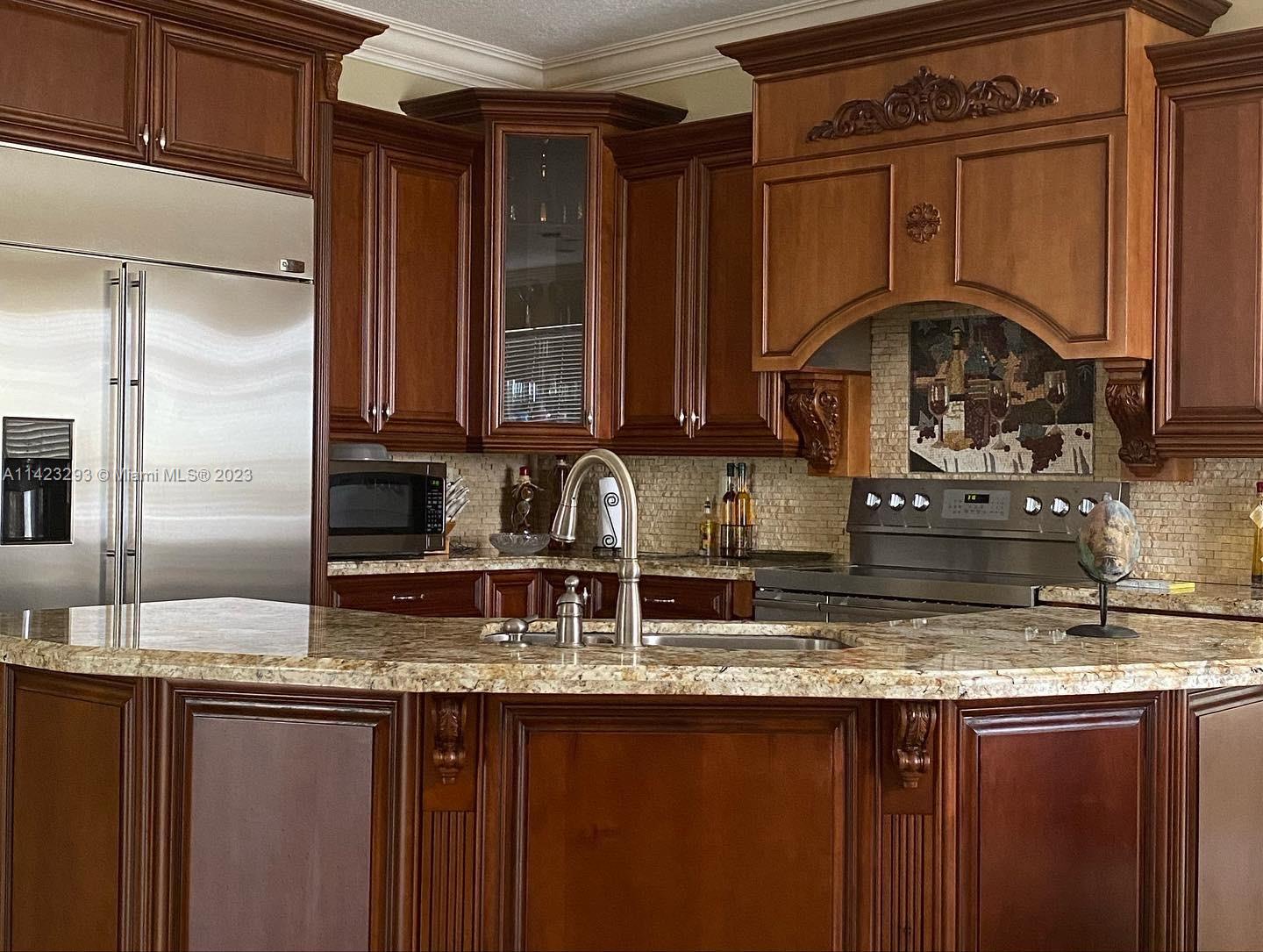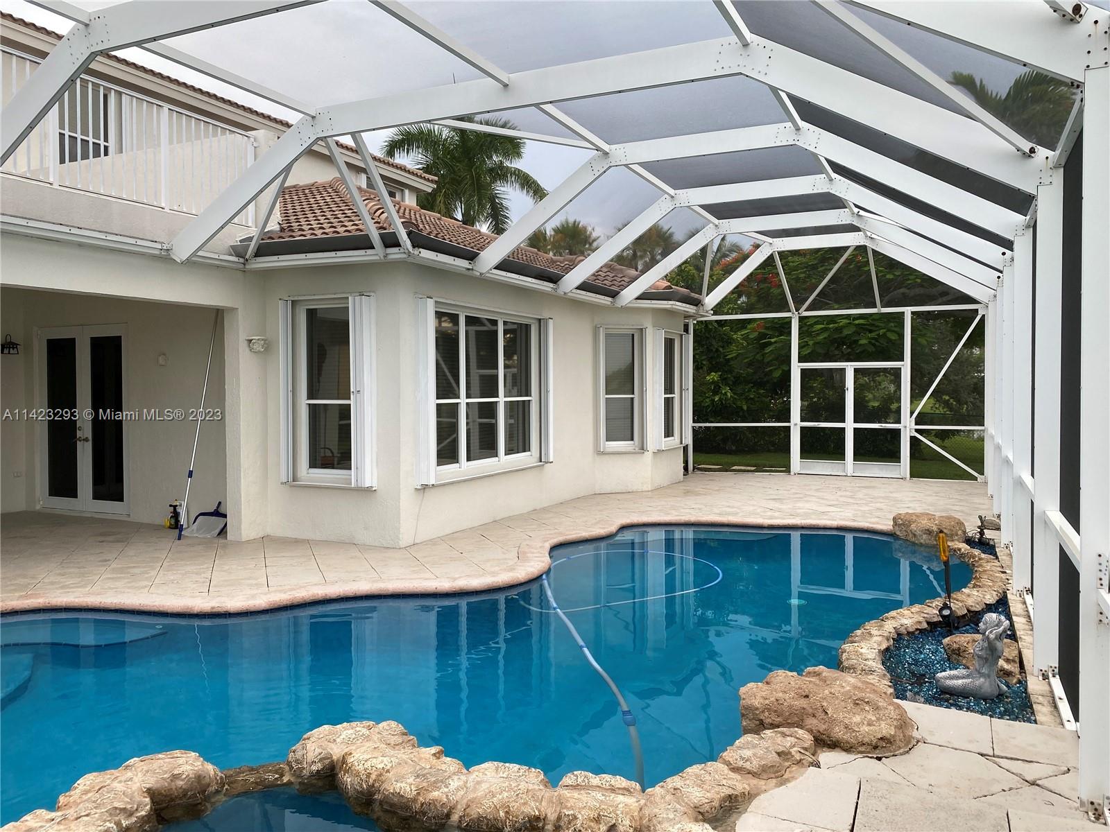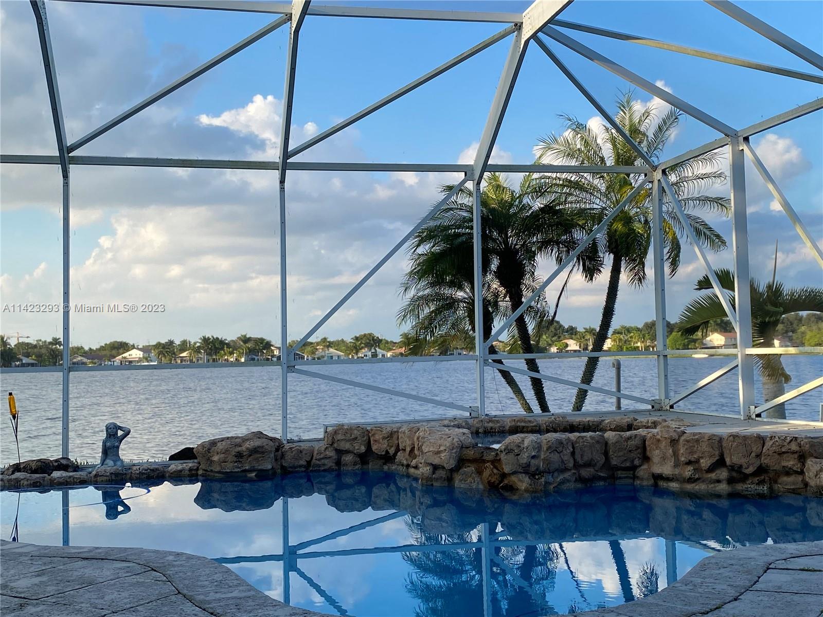 A rare opportunity to own the largest model (Saturn) in a highly desirable keystone lake. 5 beds 4 baths with breathtaking panoramic water views. Heated saltwater pool & spa surrounded by keystone decking. Large primary suite, dual walk-in closets & private balcony overlooking the magnificent water views on one of the largest lakes in Pembroke Pines. Enclosed screened-in patio with plenty of yard space. 2 split bedrooms with 2 baths on the main level and 3 bedrooms 2 baths on the second floor. Travertine flooring throughout the main areas. Accordion hurricane shutters, and impact French Doors. 2 ACs, complete CBS construction.