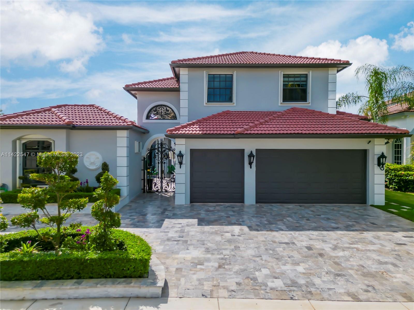 UPGRADED MODERN COURTYARD HOME IN SUNSET LAKES! MAIN HOUSE IS 5 BEDS, 4 BATHS, PRIMARY & 2ND BED ON LOWER LEVEL. GUEST HOUSE HAS 6TH BED W/BUILT-IN BAR & 5TH BATH. INTERIOR FEATURES: VOLUME CEILINGS, NEW CUSTOM SHADES, CUSTOM CALIFORNIA CLOSETS, HARDWOOD FLOORING & NEW PORCELAIN TILE FLOORING ON LOWER LEVEL & UPPER LEVEL. KITCHEN IS COMPLETELY UPGRADED W/NEW HARDWOOD CABINETRY, GRANITE COUNTERTOPS & SS APPLIANCES. 4 OF 5 BATHS COMPLETELY UPGRADED W/NEW VANITIES, NEW TILE & NEW SHOWERS. EXTERIOR FEATURES: NEW TRAVERTINE CIRCULAR DRIVEWAY, TRAVERTINE PATIO, NEW CUSTOM WROUGHT IRON GATES, NEW LANDSCAPE W/NEW LANDSCAPE BORDERS. POOL RESURFACED IN 2021 W/NEW POOL EQUIPMENT. NEW OUTDOOR COVERED KITCHEN W/GRILL, FRIDGE & SINK, NEW TURF, NEW GUTTERS. FRESHLY PAINTED, ACCORDION SHUTTERS THROUGHOUT!