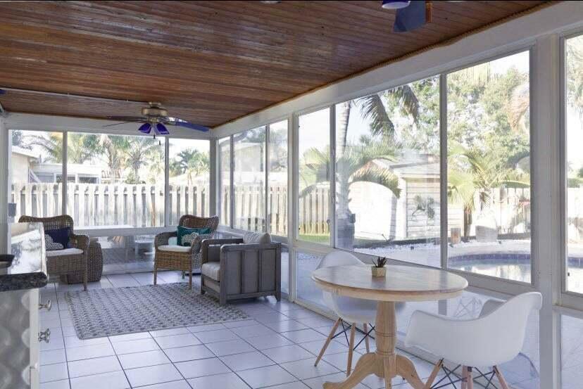 Escape to this great Boca Raton 2/2 Bath Home in a great neighborhood with a great backyard with Salt Water Pool! Very Spacious & seems larger then it is. BBQ area in enclosed hut, open patio, enclosed patio, wet bar, no rear neighbors! Immaculate interior including hurricane soundproof windows and doors, stainless steel GE Profile appliances, granite counters, remodeled bathrooms, walk in master closet. AC is roughly 20/21, Water Heater is brand new, Roof Is roughly 2010 . Potential to add 3rd bdrm. Great schools, low traffic . Walking distance to Sugar Sand Park. 8 mins from beach. Close to Town Center Mall. 5 mins to Mizner. NO HOA. Home was used as a vacation home & seasonal rental. Furniture does not convey. Home is Also listed for rent month to month at $5k. Bring all offers.