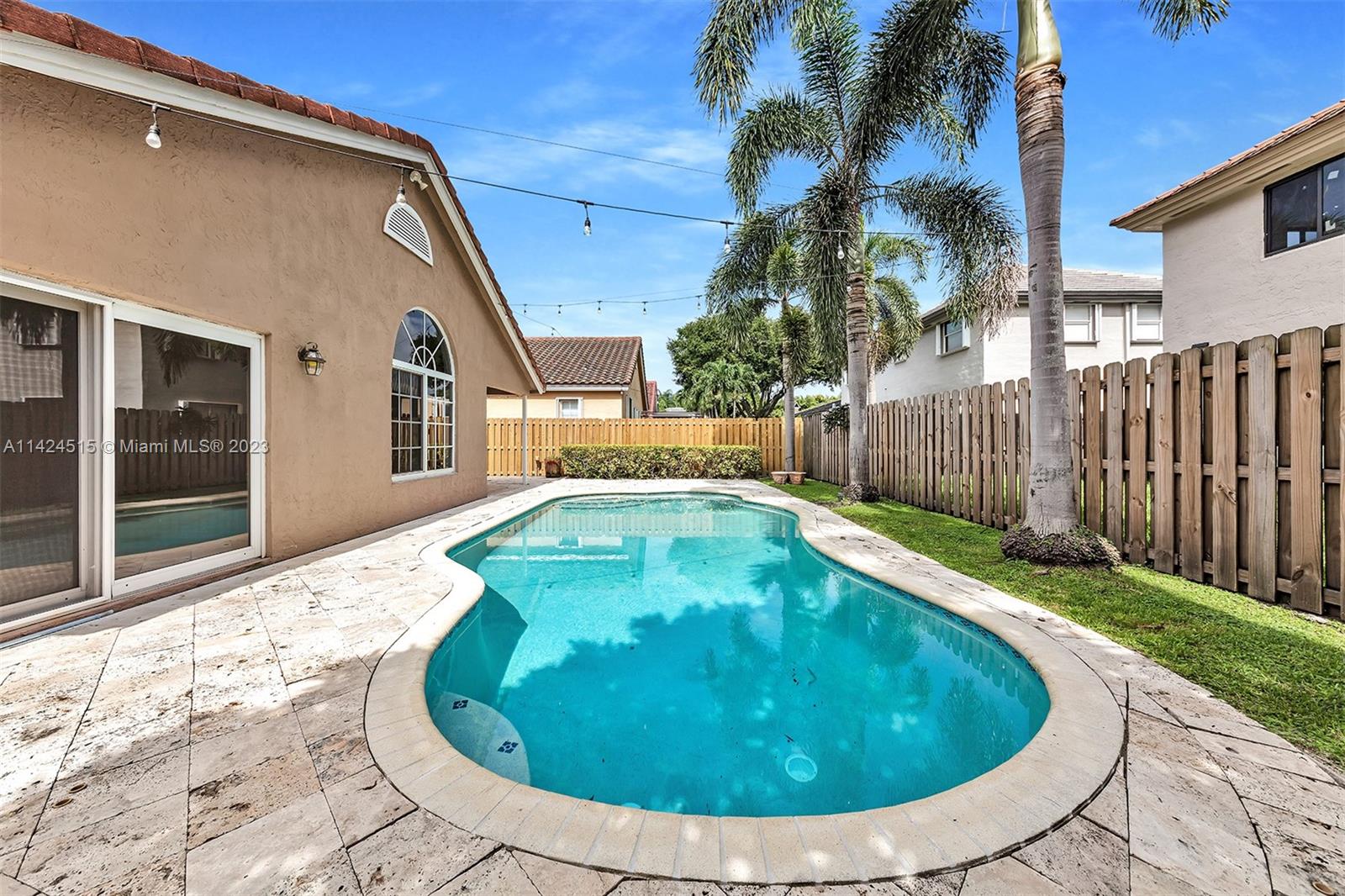 Welcome to this well-maintained Embassy Lakes pool home. Features 4 beds, 2.5 baths & 2 car garage. Two story living room w/lots of natural light. Open kitchen w/island, granite countertops & new SS refrigerator. Eat-in kitchen & spacious family room overlooking the pool. Two new A/C units, full impact windows, newer water heater, new W/D, vinyl flooring, fresh interior paint & roof approximately 8-12 yrs. Primary bedroom on main floor & sizable walk-in closet. All guest bedrooms upstairs plus loft area w/shared full bathroom. Sparkling pool w/travertine deck, new fenced-in yard perfect for gatherings. Gated community with resort style amenities. Community pool, gym, basketball, pickleball, tennis, volleyball & playgrounds. Located in a highly coveted top-rated school district.