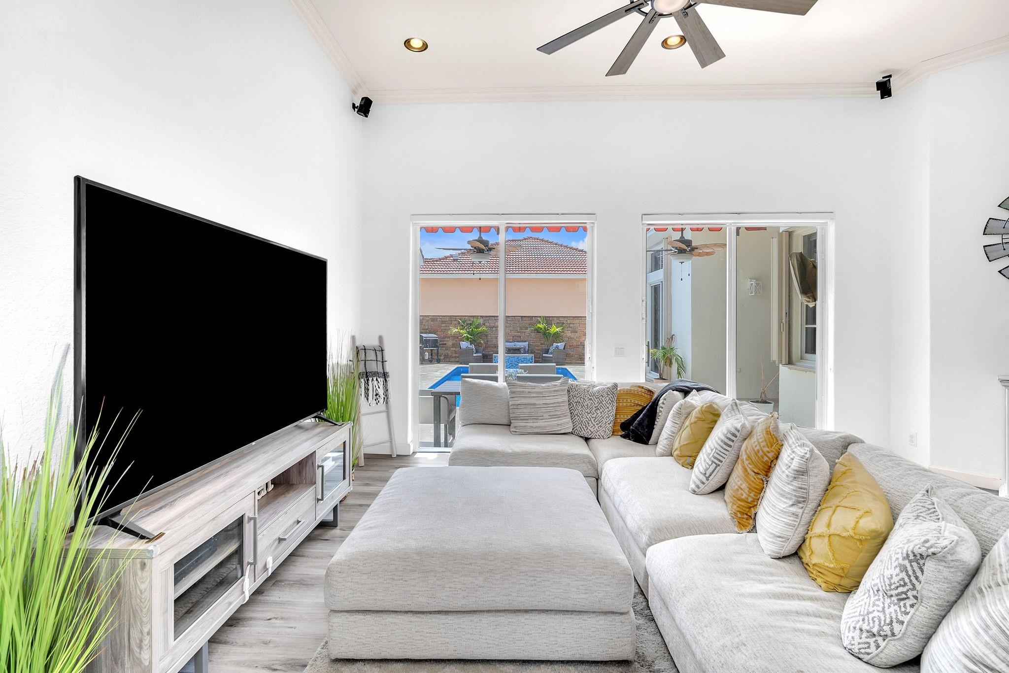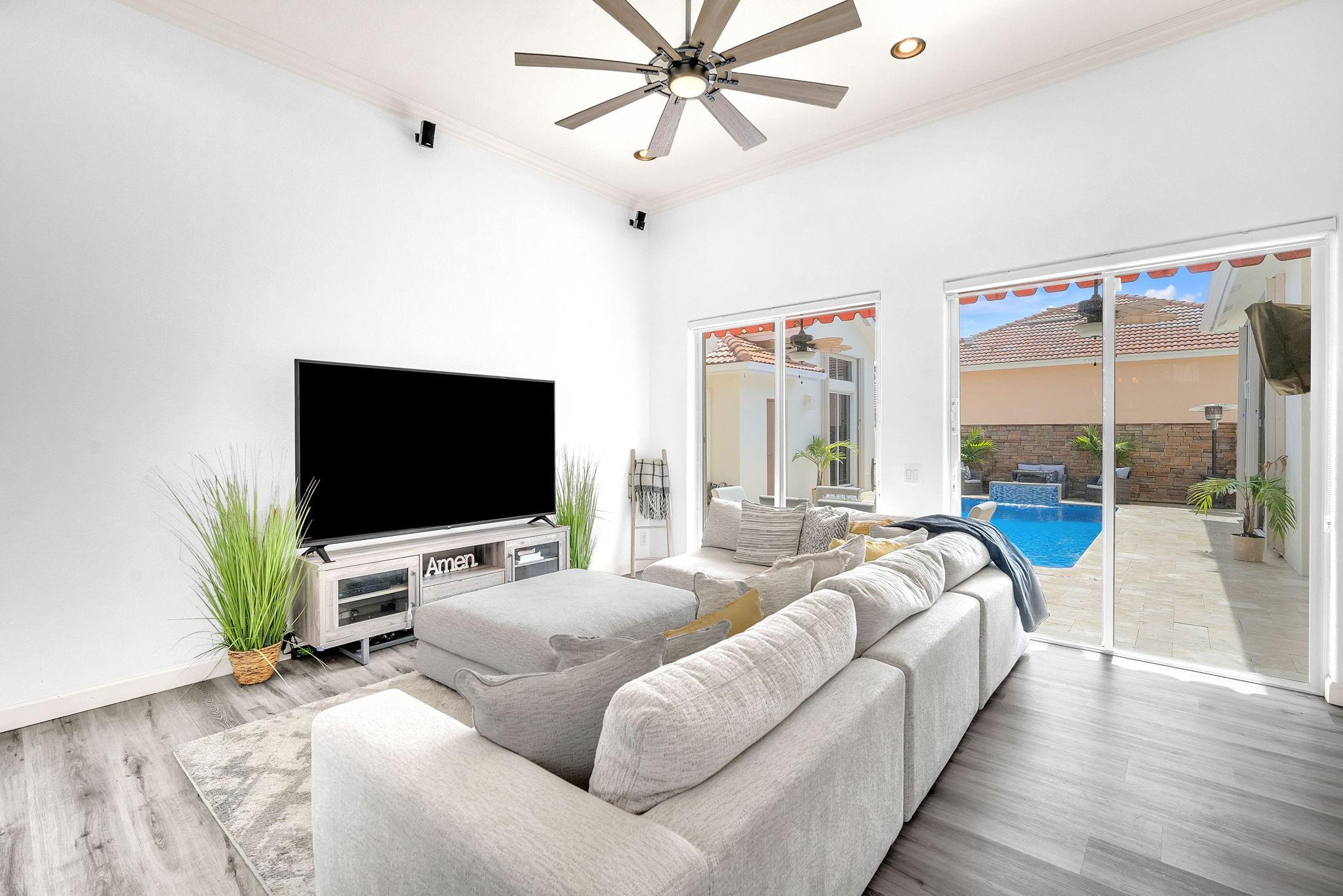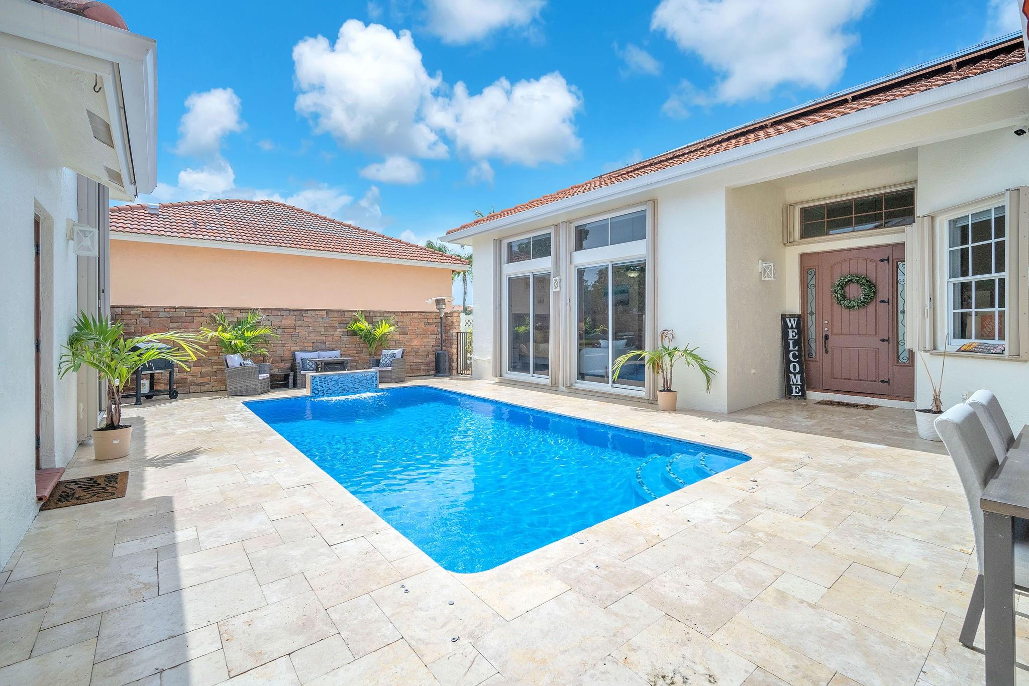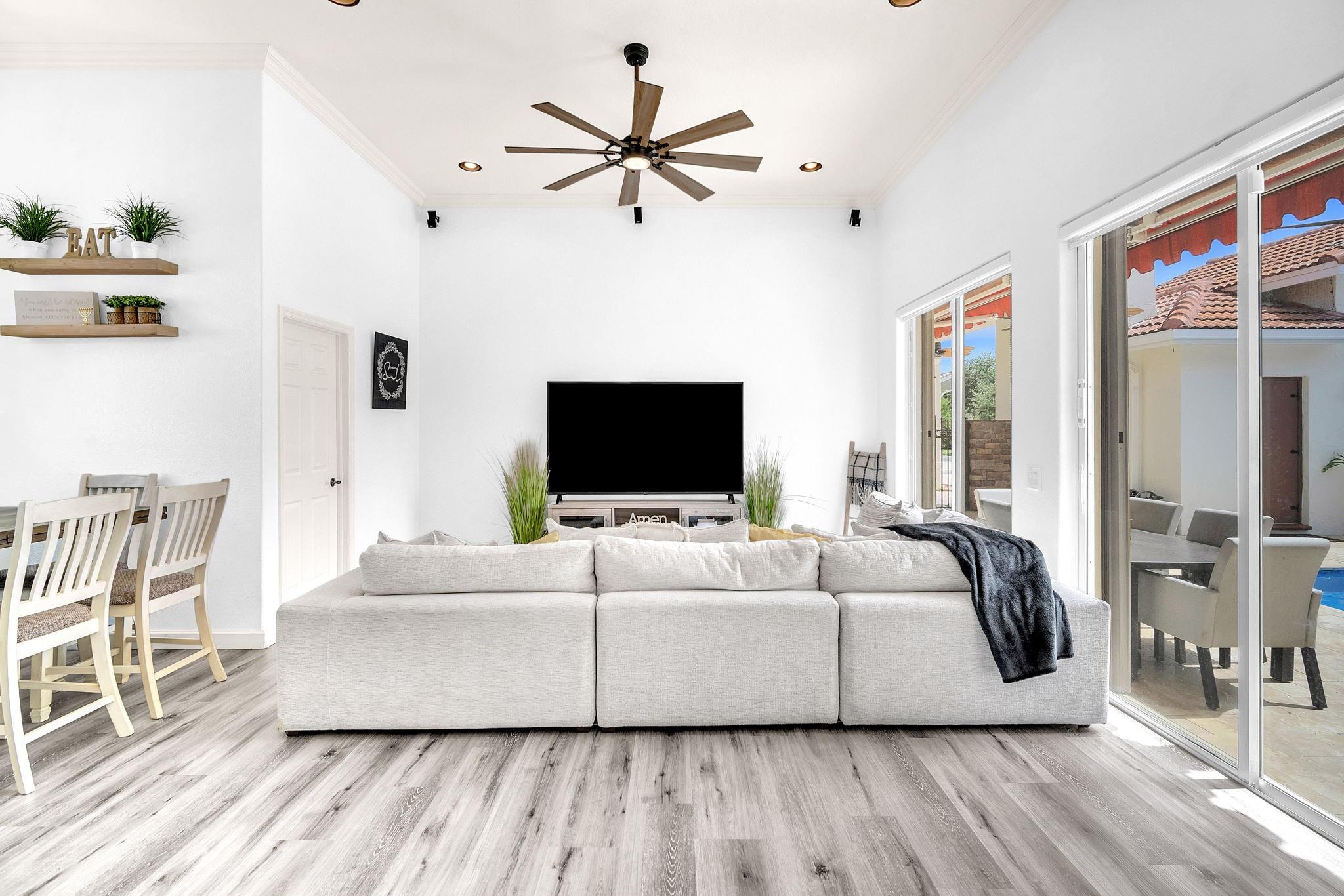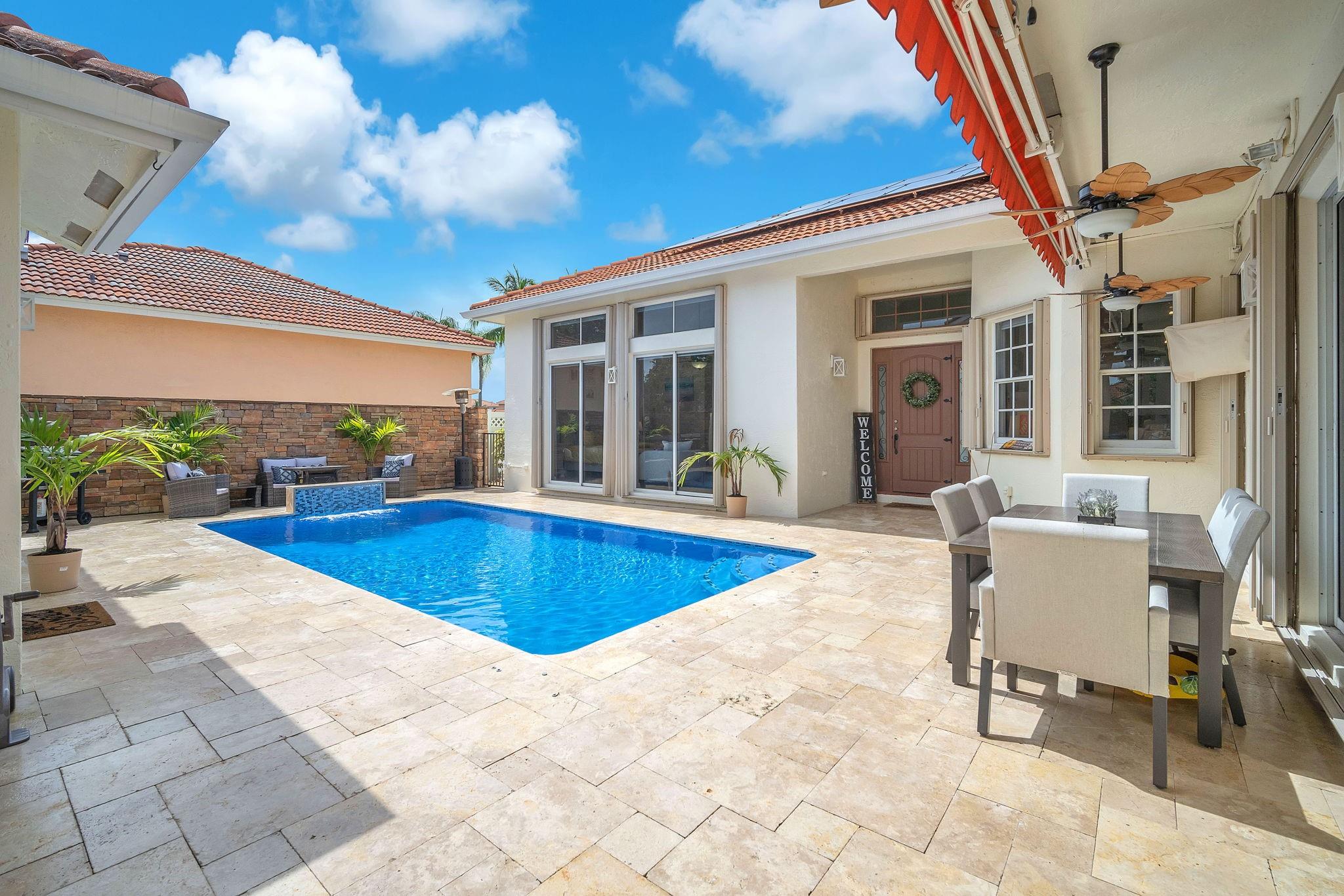 Welcome to this exquisite 4-bed, 3-bath estate with stunning updates & improvements. Exterior features fresh paint, new fence, remodeled pool area with stunning waterfall and saltwater pump impress along with the new French travertine pool deck. Step inside to find waterproof wood flooring, Zebra blinds, new light fixtures and fans throughout creating a comfortable & inviting atmosphere. Dream kitchen with new cabinets, marble countertops and top-of-the-line appliances. Bathrooms feature updated vanities, toilets, and fixtures. The garage, now being used as a man cave has fresh paint, epoxy flooring & a new AC unit. New air ducts ensure optimal air quality and solar panels provide energy efficiency. AC unit is under a 3-month maintenance plan. This is a true gem in Spring Valley Estates.