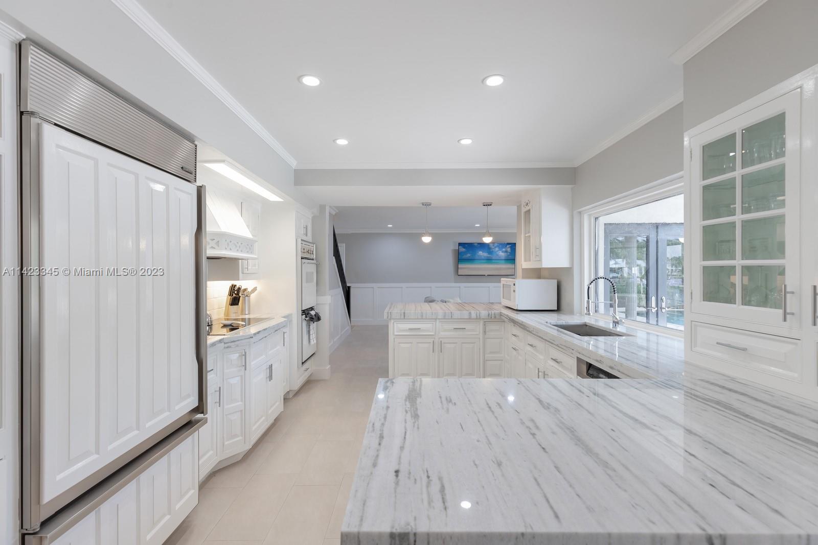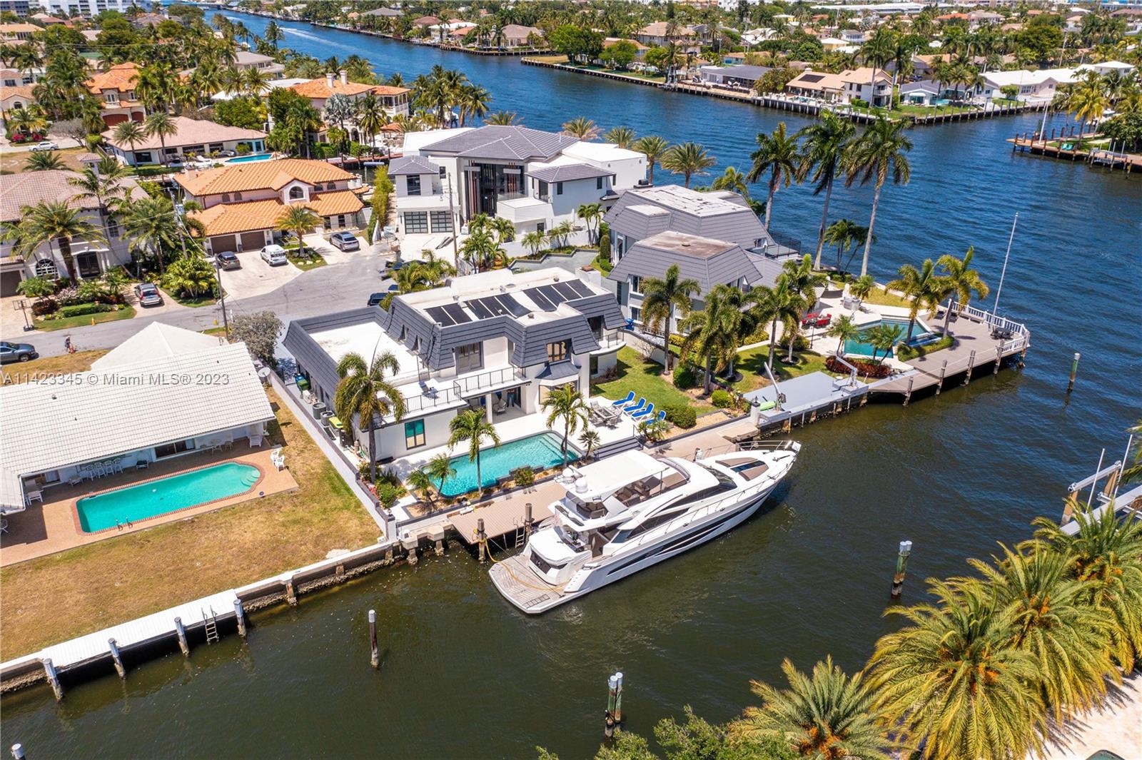 Welcome to this exquisite waterfront home with a pool, nestled in the highly prestigious Coral Ridge Country Club community. This stunning home embraces the epitome of waterfront living, offering breathtaking views of the sparkling waters from nearly every angle. Whether you're gazing out from the living room, kitchen, or master suite, you'll be captivated by the serene beauty of the water. 90' of Trex dock provides the perfect spot to dock your yacht and sets the stage for unforgettable boating experiences along the Intracoastal Waterway. The homes layout is thoughtfully designed, seamlessly blending comfort with elegance. Enter through the formal double door with a grand circular staircase. The open kitchen seamlessly integrates with the living and dining area.