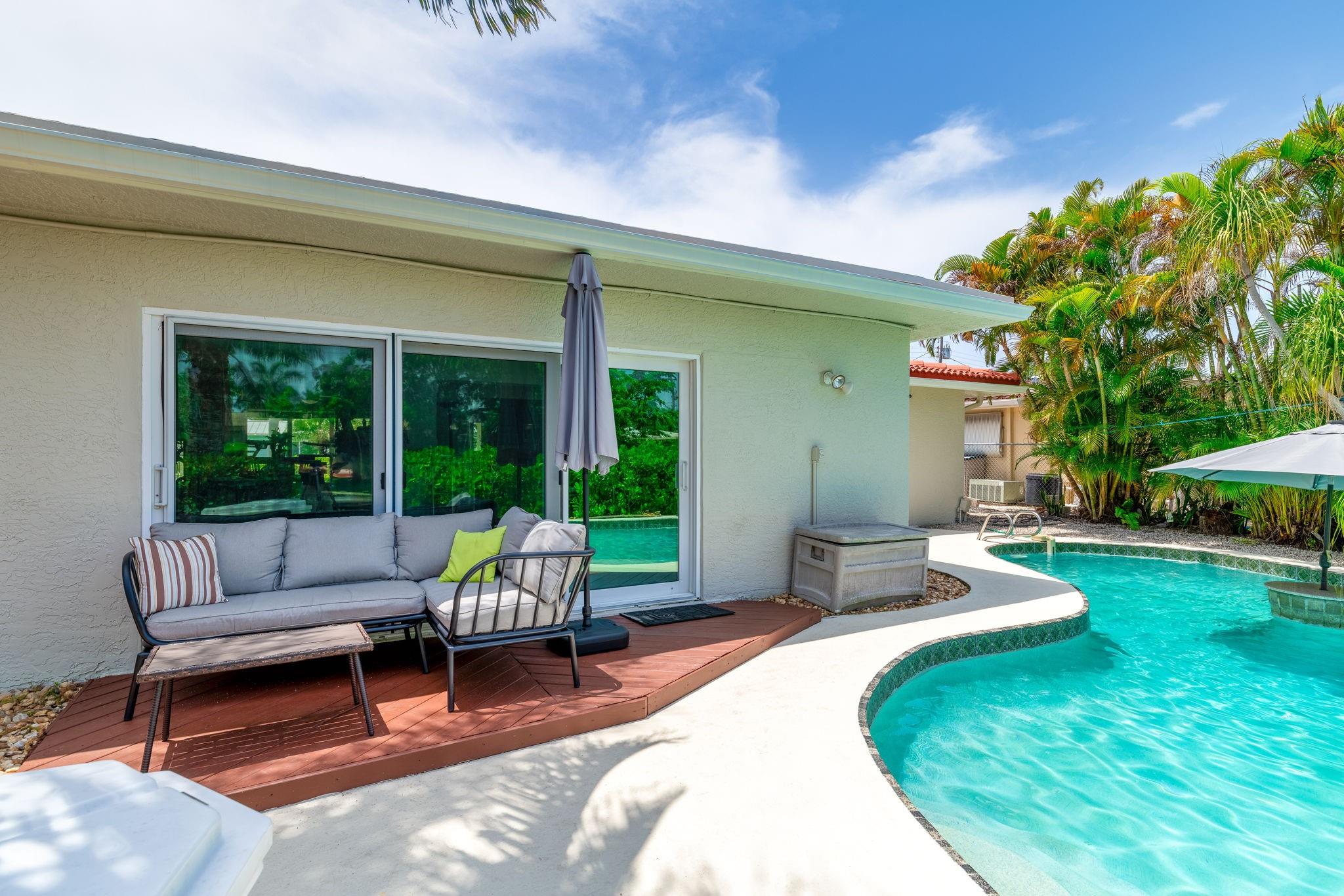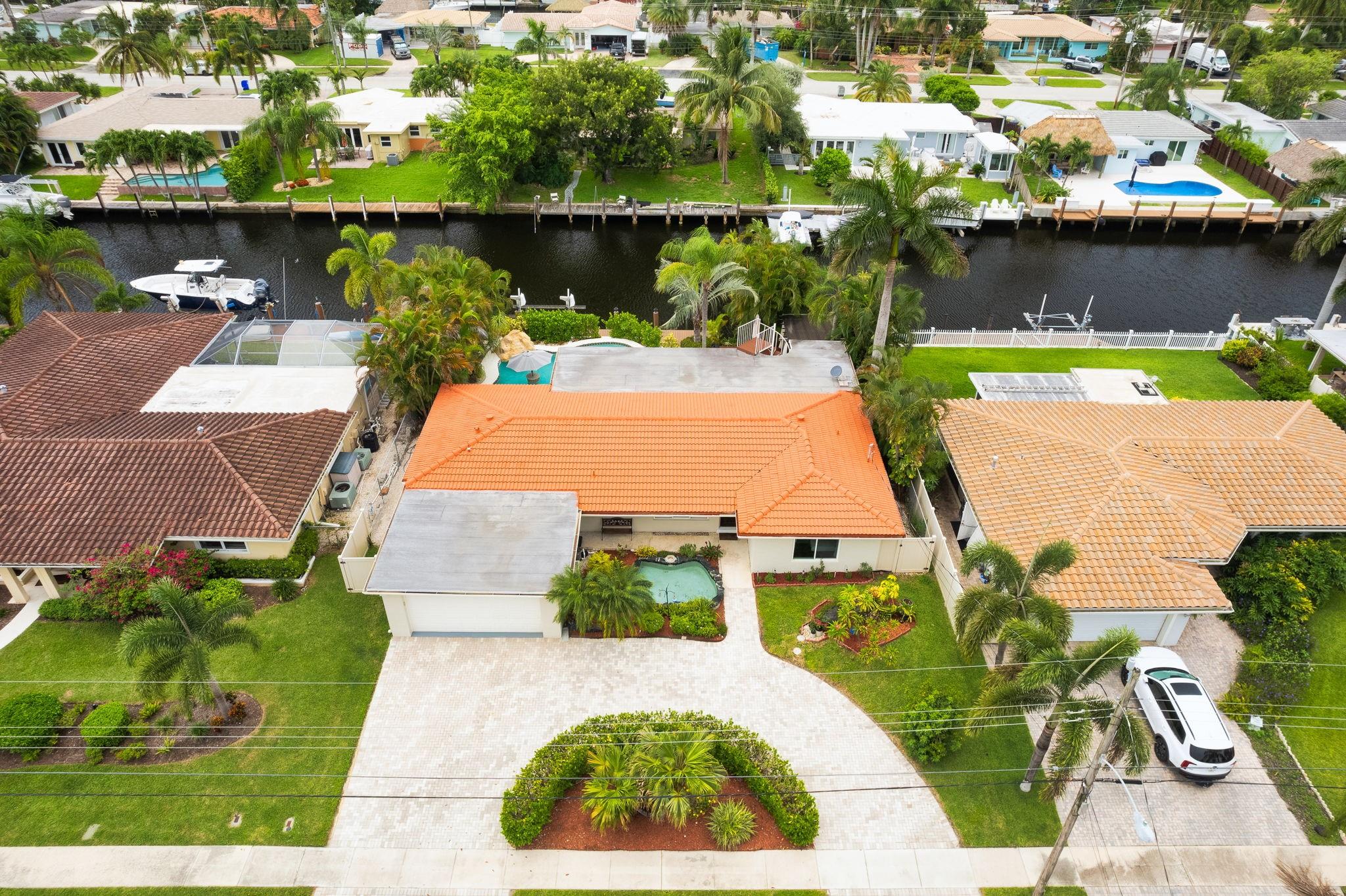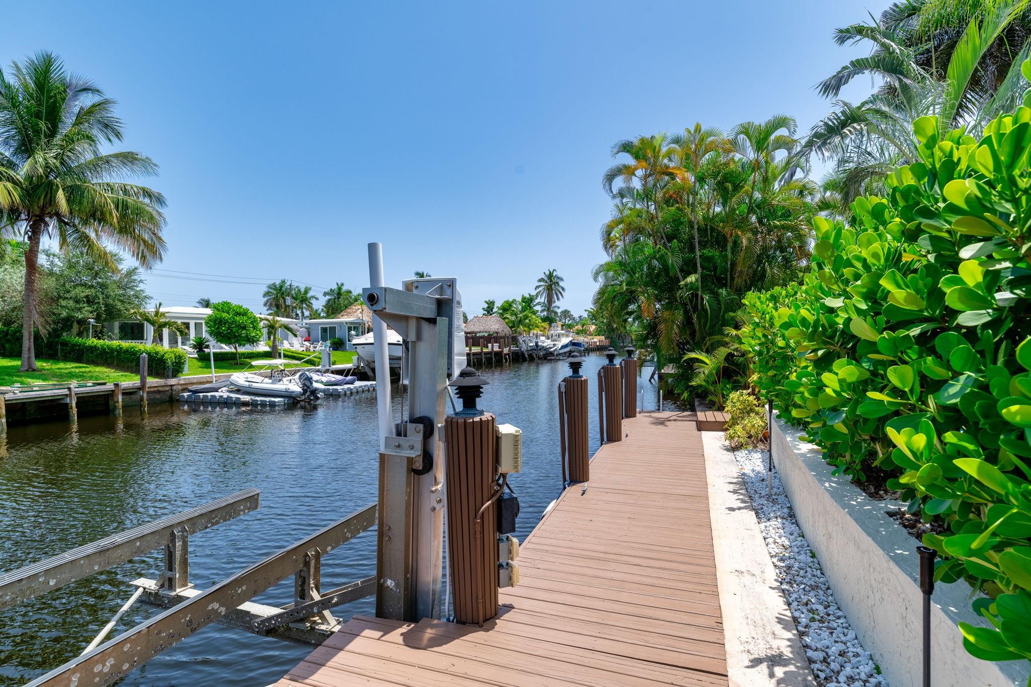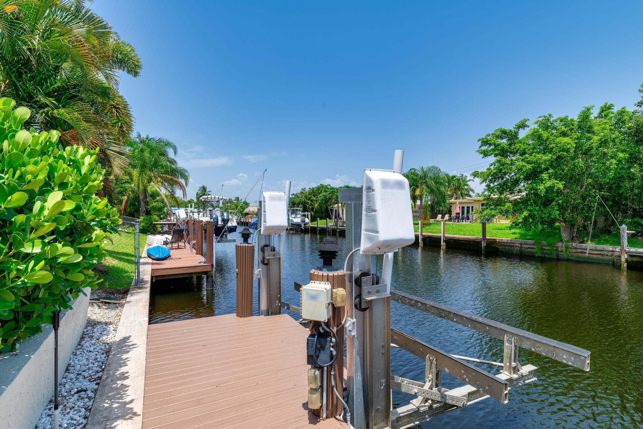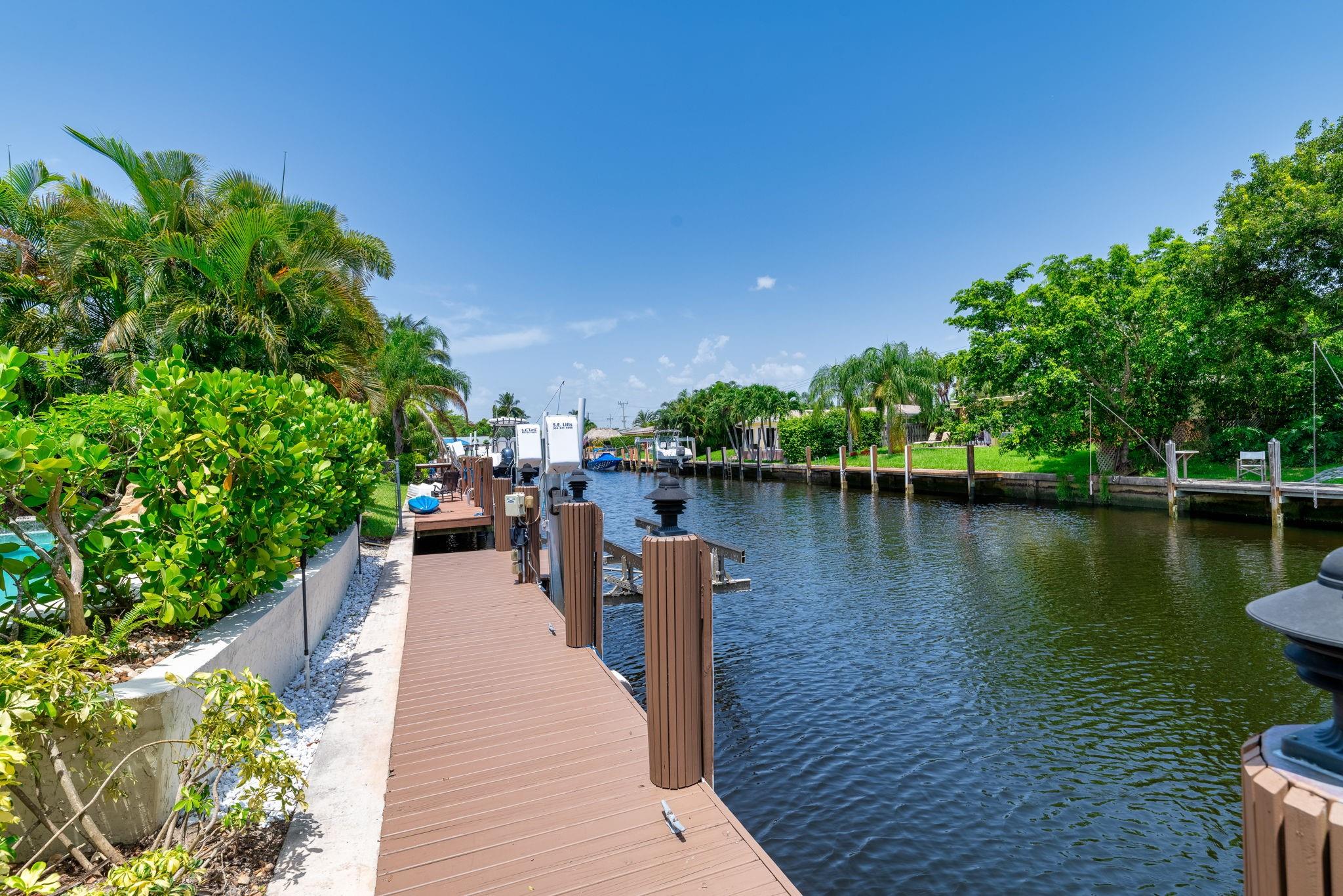 True Florida living abounds in this bright updated open plan 4bed2.5bath pool home on quiet cul-de-sac. Enjoy 75' of frontage on a wide ocean access canal with 10,000lb boat lift and 11 foot clearance at high tide. Large white tile floors with modern vinyl flooring in the bedrooms. Kitchen has new countertops. Primary bath enjoys new dual sinks and custom tile shower with rain fall and body jets. Large curved paver drive with two car garage. Impact windows, doors and garage door. Generator ready! Heated pool! Complete fresh paint inside and out top to bottom. Seawall footer four years new. Relax and enjoy your pool, pergola and water view day or night on a freshly painted wood deck. Come take a look! This one won't disappoint.