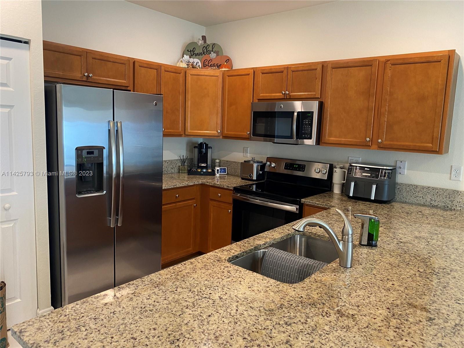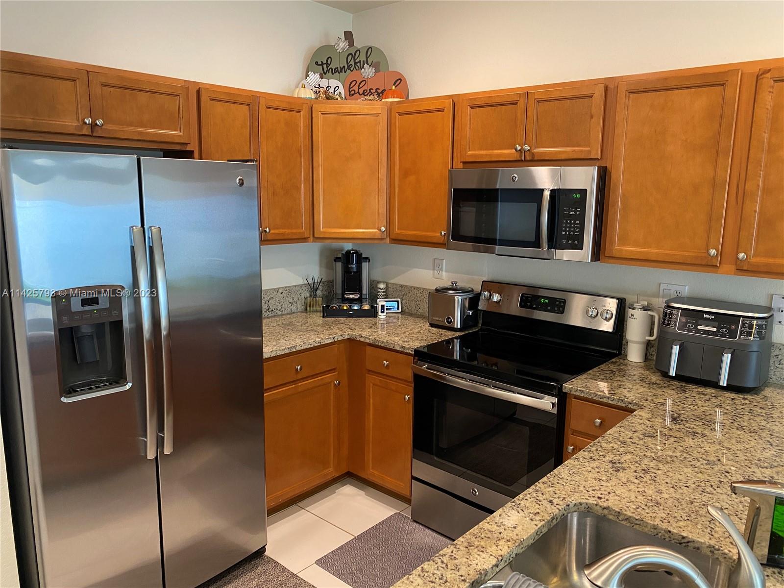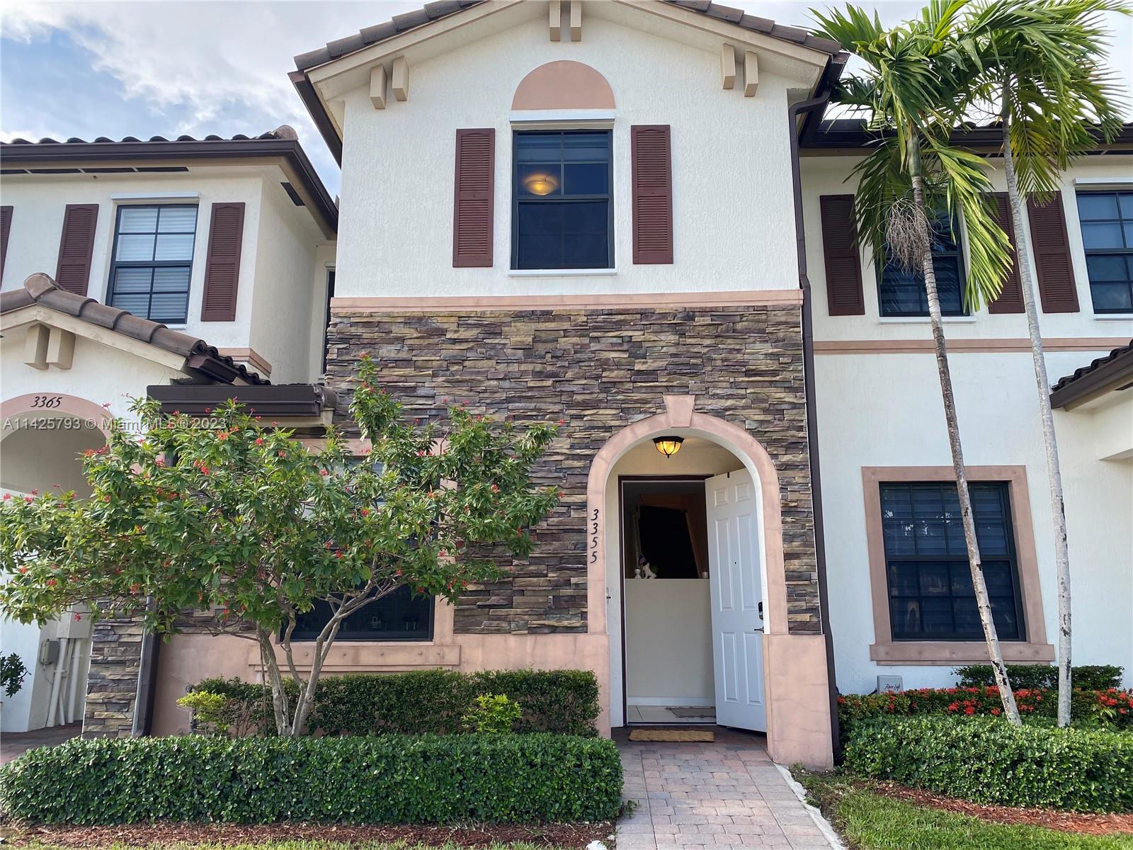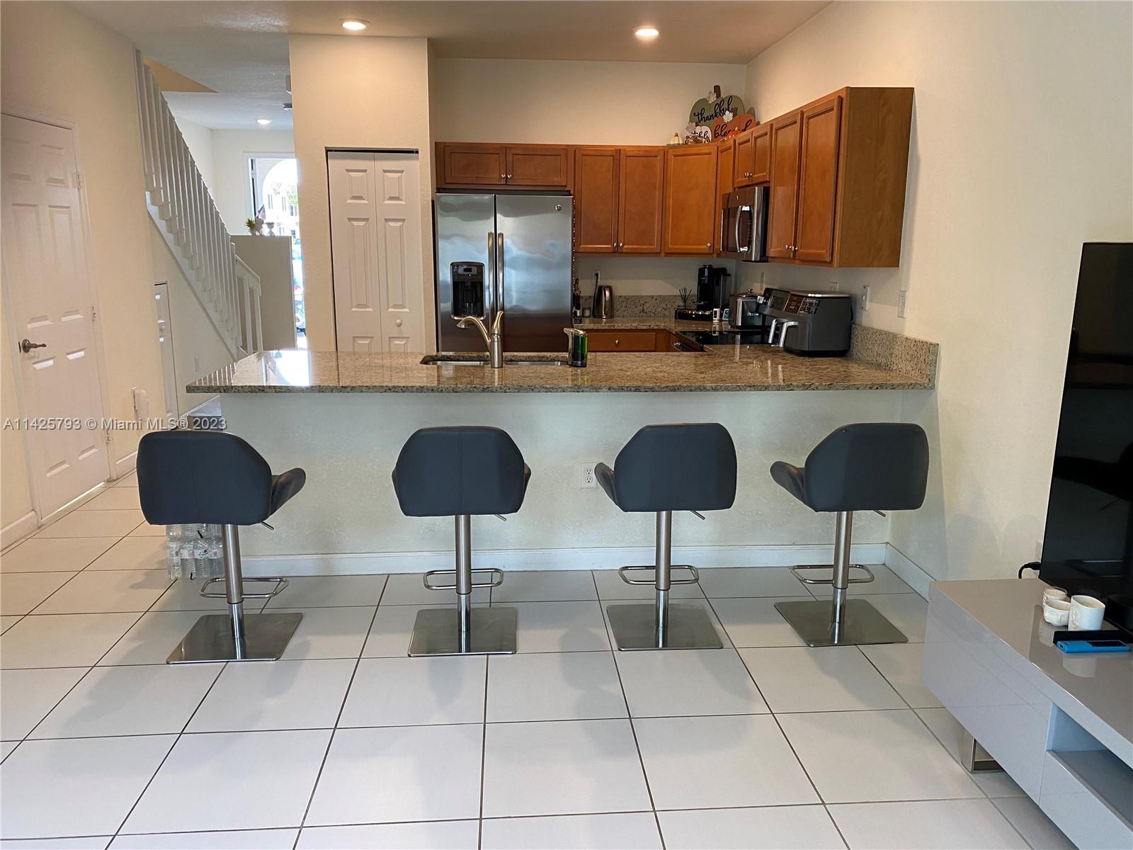3 bedrooms & 2.5 baths, providing ample space for families Elegance of tile floors downstairs and the coziness of carpet in the bedrooms. The kitchen is a chef's delight with stainless steel appliances and stunning wood cabinets topped with granite. Tankless water heater for enhanced energy efficiency. Every room, including the living room, is thoughtfully equipped with blinds and lamps. The private patio with a fence is perfect for relaxing & entertaining. Gated community. Club House and community pool for leisure and recreation. Location is a true advantage. Situated near I-75, Palmetto & Turnpike. Excellent schools, shopping malls, and a variety of restaurants . This townhouse is an exceptional opportunity to own a piece of paradise in South Florida. Don't miss out on the chance.