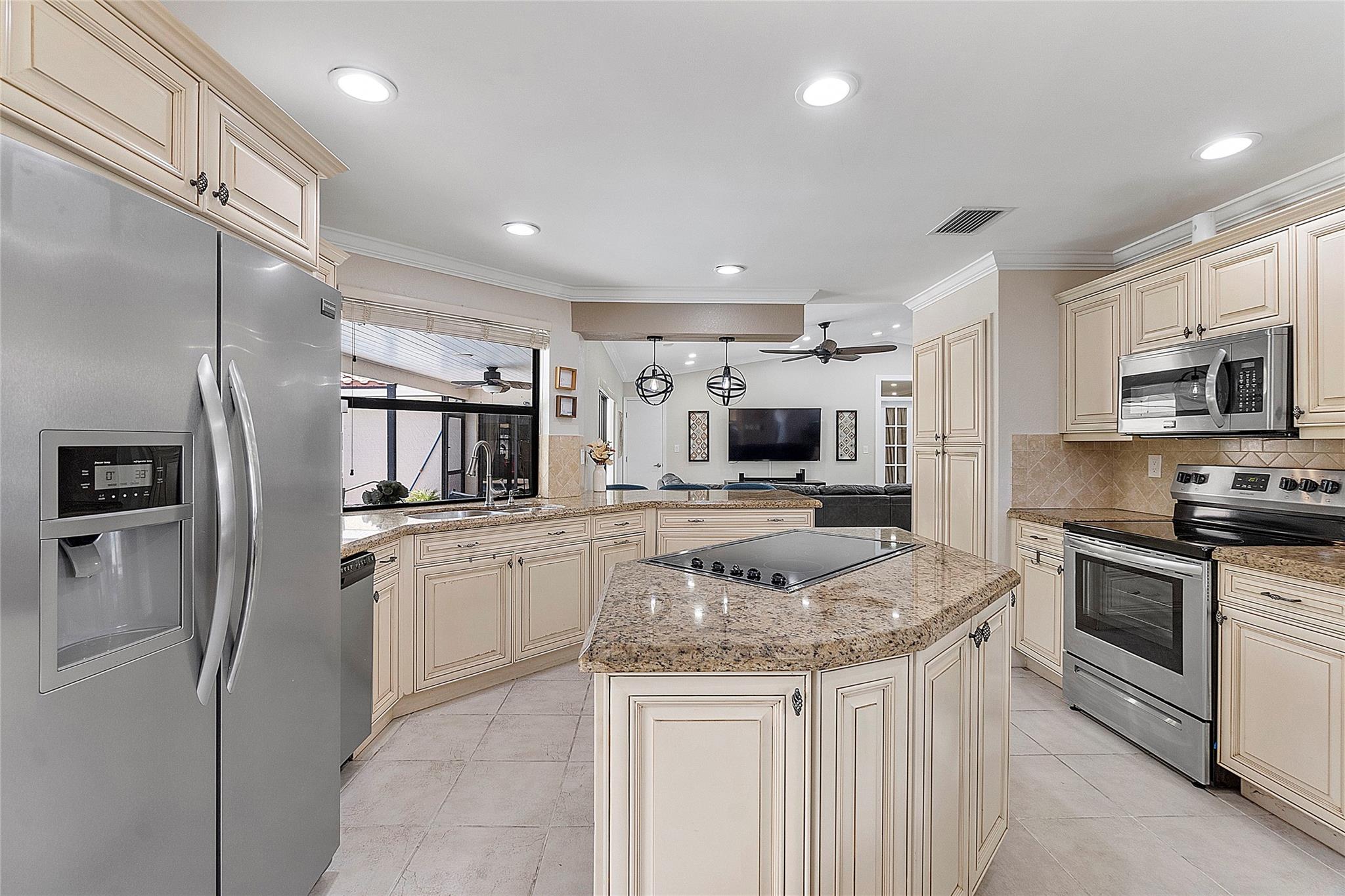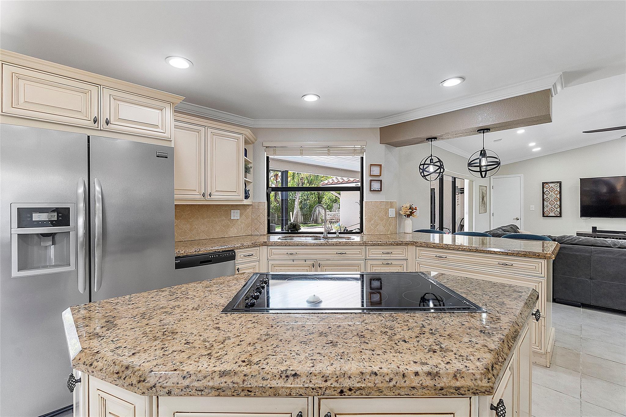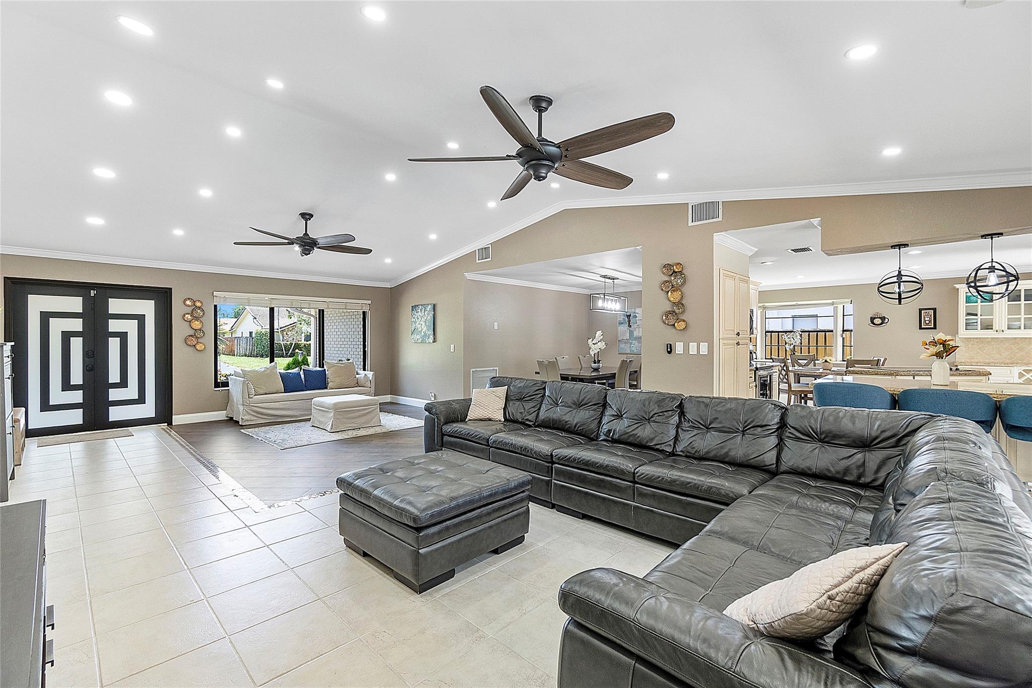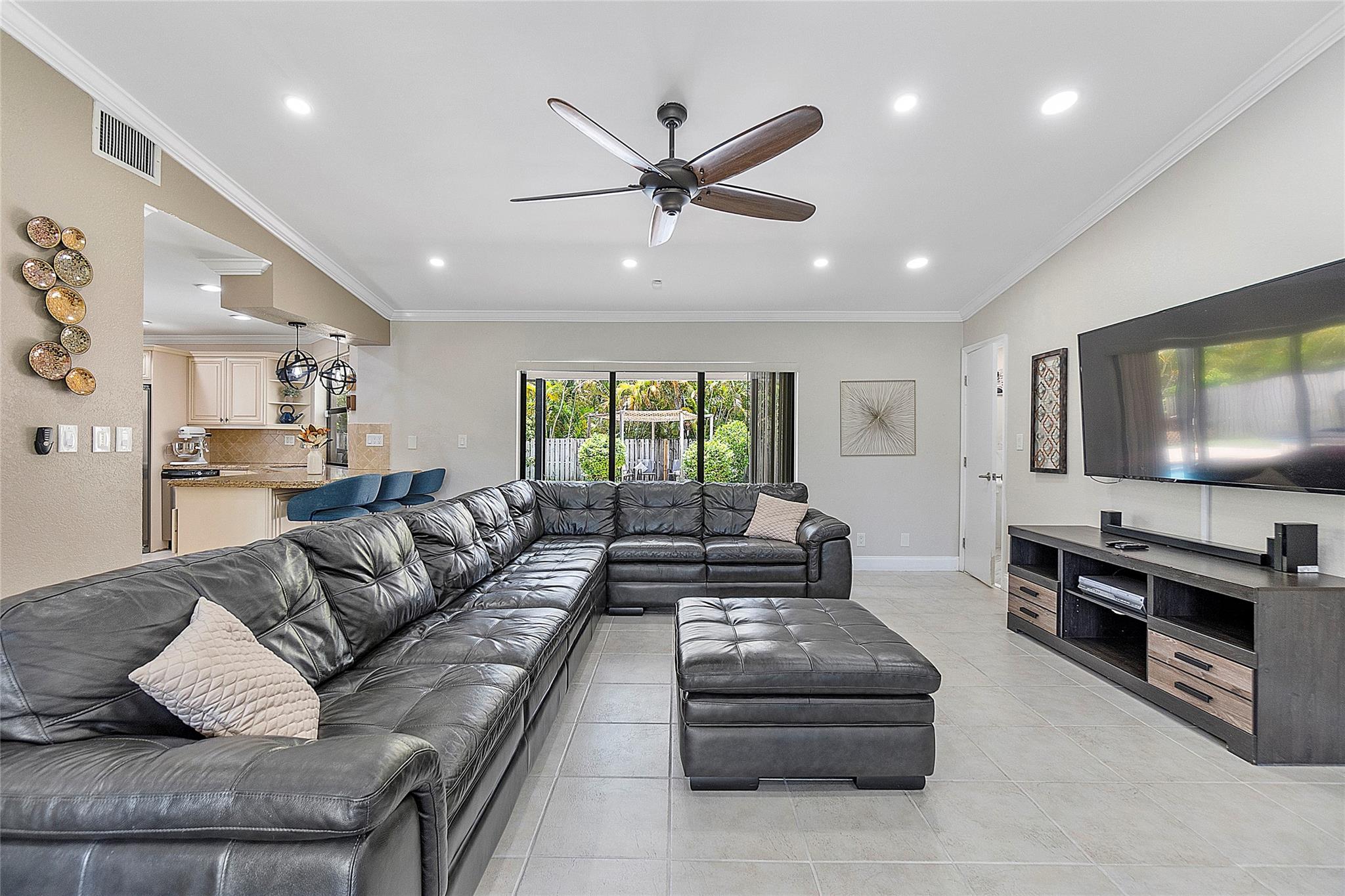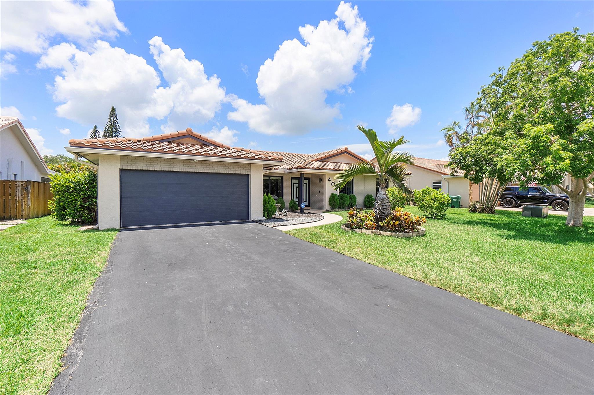 This remarkable 4 bedroom, 3 full bathroom oasis is in the Cypress Glen neighborhood of Coral Springs. No HOA! Enjoy outdoor lighting, resort style pool for entertaining any guests. Along with custom impact French doors, impact windows in the front and panel coverings for the back. Vaulted ceilings and recessing lighting for any mood desired. Custom cabinetry, center island with granite countertops, stainless steel appliances with oven and a built in wine cellar to inspire your inner chef. Crown molding all around, luxurious primary bedroom leading to the resort style bathroom. Secondary bathrooms are updated! Laundry room with a full size washer and dryer with deep sink, tankless water heater, impact garage door and cutting edge inverter AC. Come make this exceptional home yours!