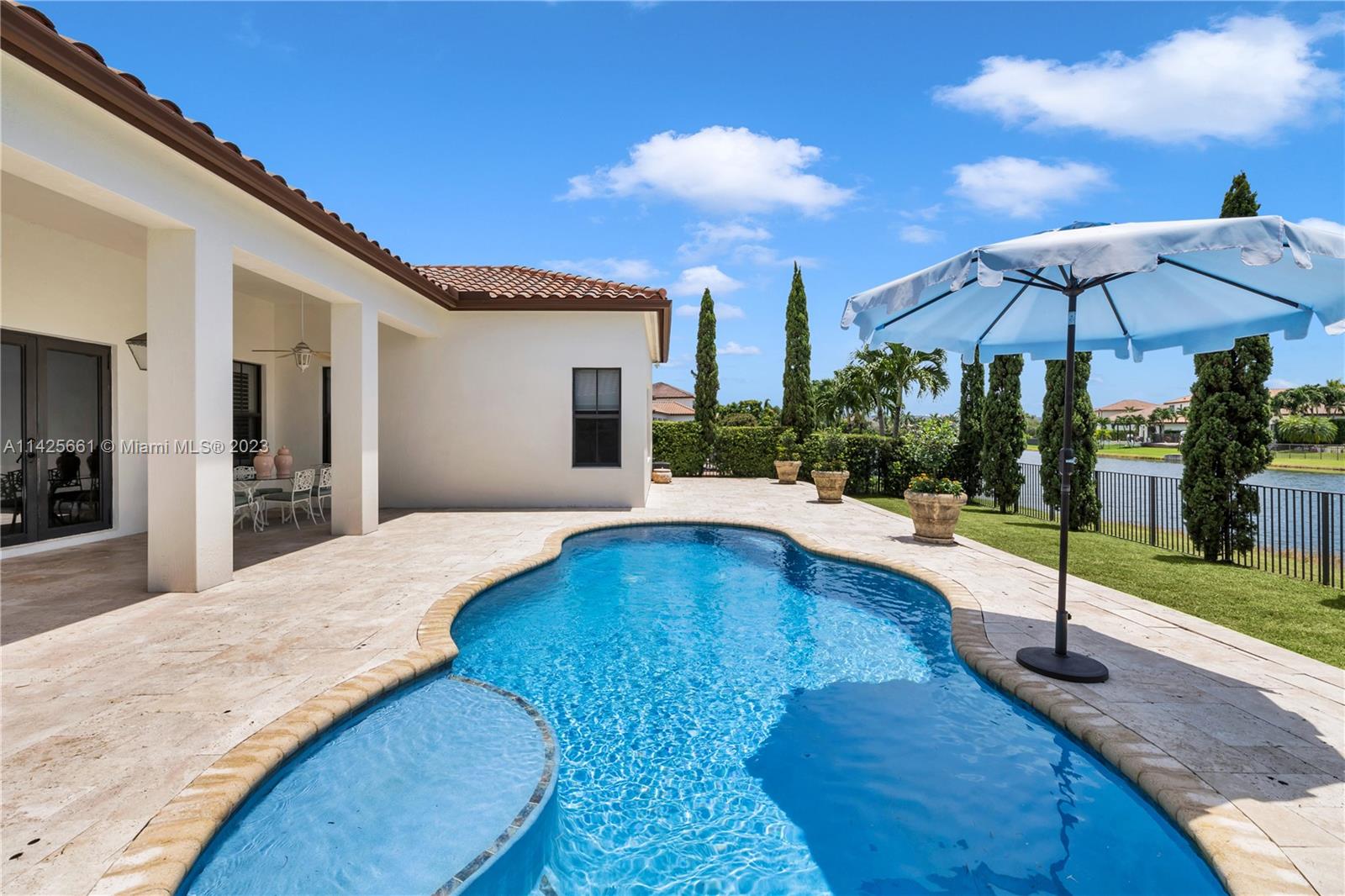WELCOME TO COOPER CITY, FLORIDA! MONTERRA IS 24-HOUR MEN GATED COMMUNITY OFFERING AN UNPARALLELED LIFESTYLE. THE RARELY AVAILABLE AMADOR MODEL IS A ONE-STORY HOME SITUATED ON A WATERFRONT LOT, OFFERING 4 BEDROOMS, 3 FULL BATHS AND A 2-CAR GARAGE. ADDITIONAL FEATURES INCLUDE HURRICANE IMPACT, WINDOWS AND DOORS, 12' CEILINGS, CUSTOM BUILT-INS, PLANTATION SHUTTERS, CUSTOM BUILT OFFICE SPACE AND MUCH MORE. THE OUTDOOR SPACE ENCOMPASSES A SALTWATER POOL, EXTENDED DECKING, FENCED AND HIGHLIGHTED BY EXPANSIVE LANDSCAPING.