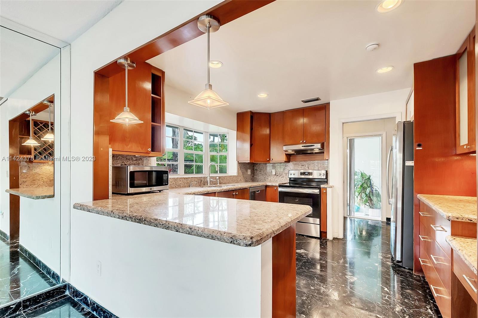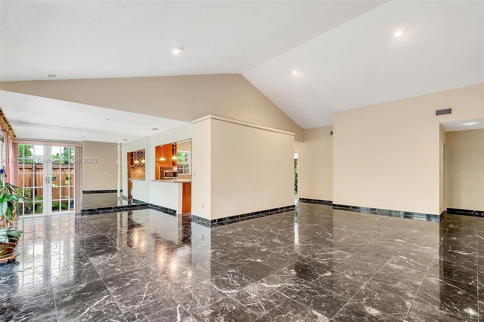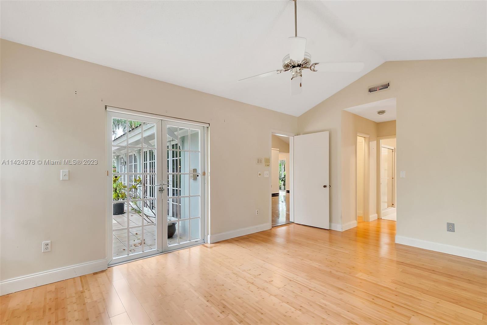 Amazing opportunity to own in sought-after Doral Woods. A prestigious secured, Country Club Gated community located in the heart of Doral. This spacious three bedroom, two bath home located at the end corner of a cul-de-sac, adjacent to the greenway with easy access to the community pool, clubhouse and playground, situated across an ample guest parking area. Home is located on a private corner lot with no back neighbor to your private yard/patio. Kitchen has been tastefully updated with stainless steel appliances and granite countertops. Open floor plan, with high ceilings, and multiple French doors leading to your private patio oasis. Oversized bedrooms and bathrooms. laundry room, Titan water Heater, plus a two-car garage. Do not miss out on this one! Easy to show, call listing agent.