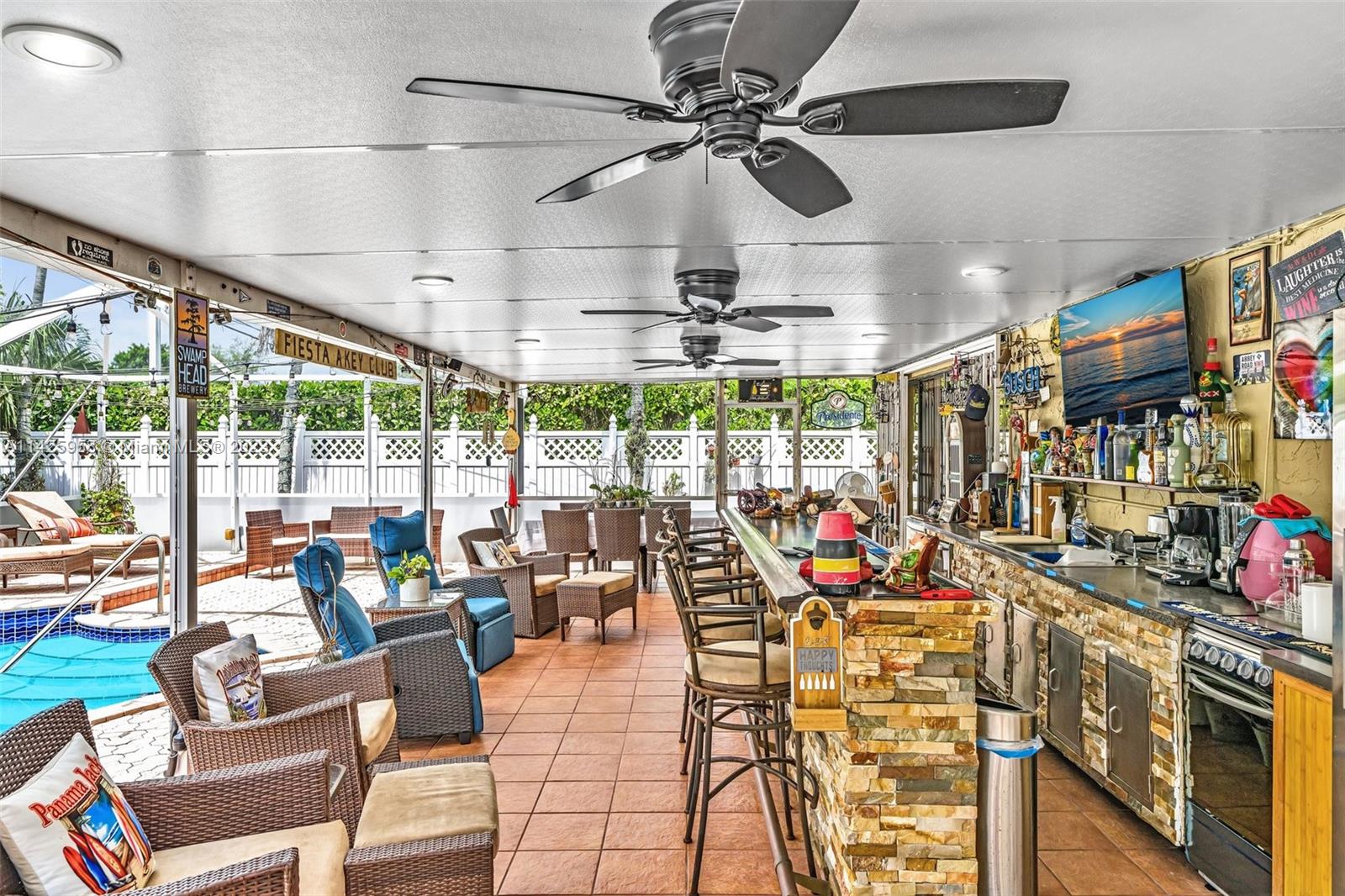 Welcome to your dream home! This exquisite, cozy & spacious house in the peaceful & family-friendly neighborhood of Edgewood features 2130 interior Sq ft, open floor plan, porcelain floors, granite countertops, top-of-the-line stainless steel appliances, tankless water heater & plenty of natural light. Your own outdoor paradise, the backyard boasts a full outdoor kitchen, lighted heated pool area completely enclosed & surrounded by fence & pavers, creating a stunning outdoor space. Enjoy privacy w/ no residents to the rear & Ring security. The 4-car driveway & parking garage offers ample space for storage & workspace. Located in the heart of Fort Lauderdale just minutes from the beach, Las Olas, I-95 & shopping. Perfect for a family or investment property/Airbnb & priced to sell!