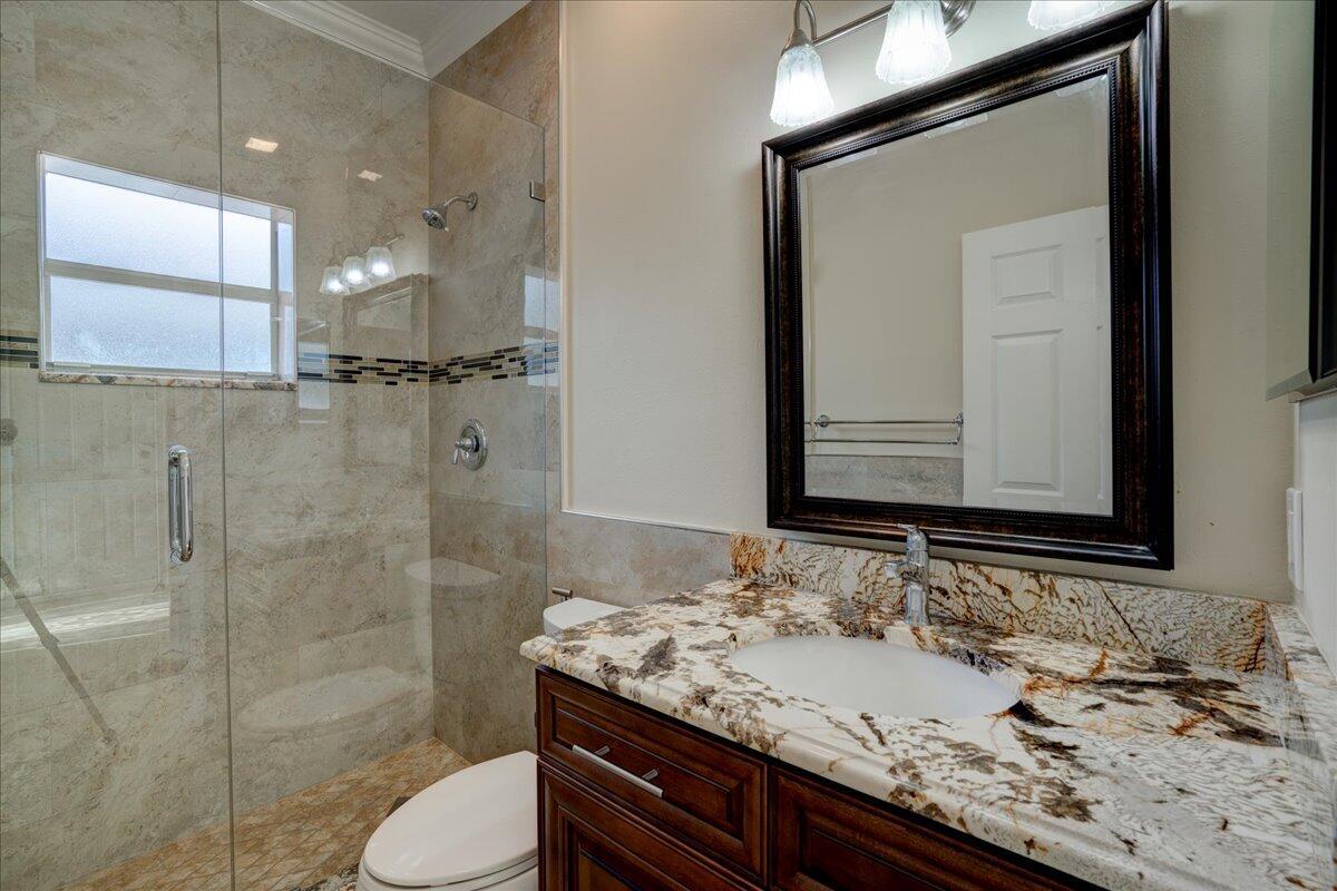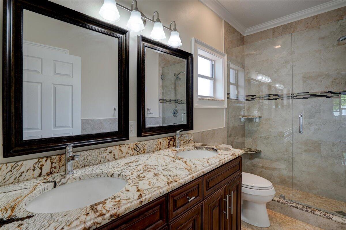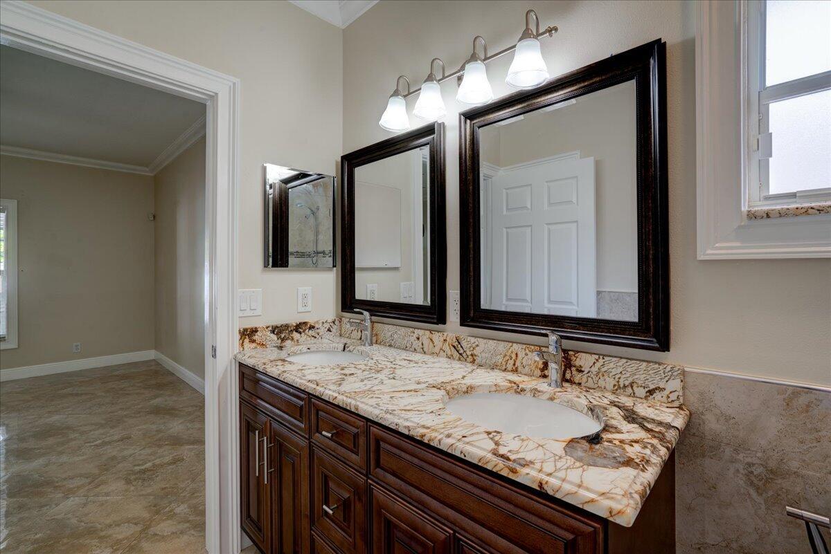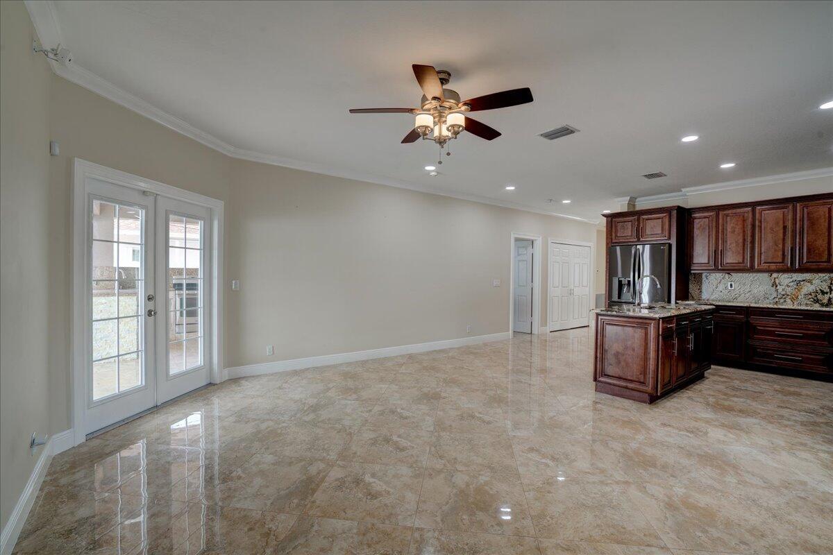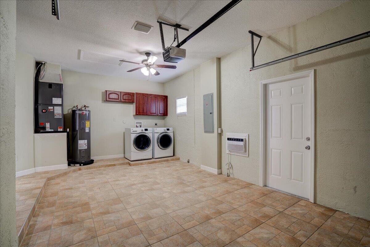 MOVE-IN READY POOL HOME. It features tile throughout, renovated kitchen and bathrooms, kitchen island, crown molding, impact windows and doors, outside kitchen and grill with remote control retracting awning, 2 years old air conditioning and water heater, and appliances are less than 5 years old. Alarm system with motion sensors monitors cameras with ADTIt also features, 2 driveways, the main driveway will accommodate 3 cars and 2 inside the garage for a total of 5 vehicles. The second driveway will accommodate in front of the gate and 4 additional cars inside the gate for an additional 7 vehicles.