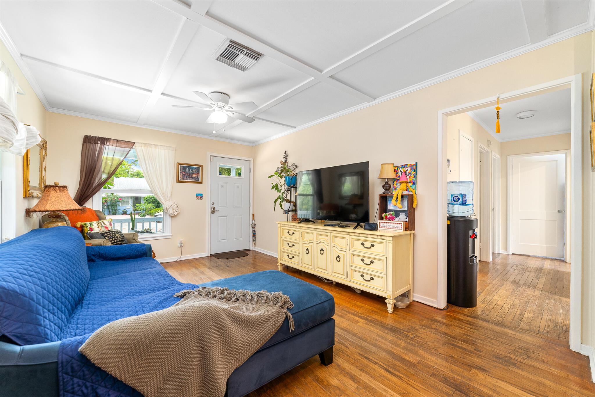 Welcome to the charming neighborhood of Pineapple Park, located within minutes of downtown West Palm Beach, restaurants, PBI and the beach! This 1949 cottage has a mix of historic charm with modern amenities on a lushly landscaped lot. From Dade Co. flooring throughout to Impact rated windows and doors. The bathroom was updated in 2018, kitchen and AC duct work in 2019, including many more upgrades to preserve its original charm. From new siding, to fully painted and restoring the original patio. The backyard is fully fenced in and big enough to accommodate a pool! You are sure to fall in love!