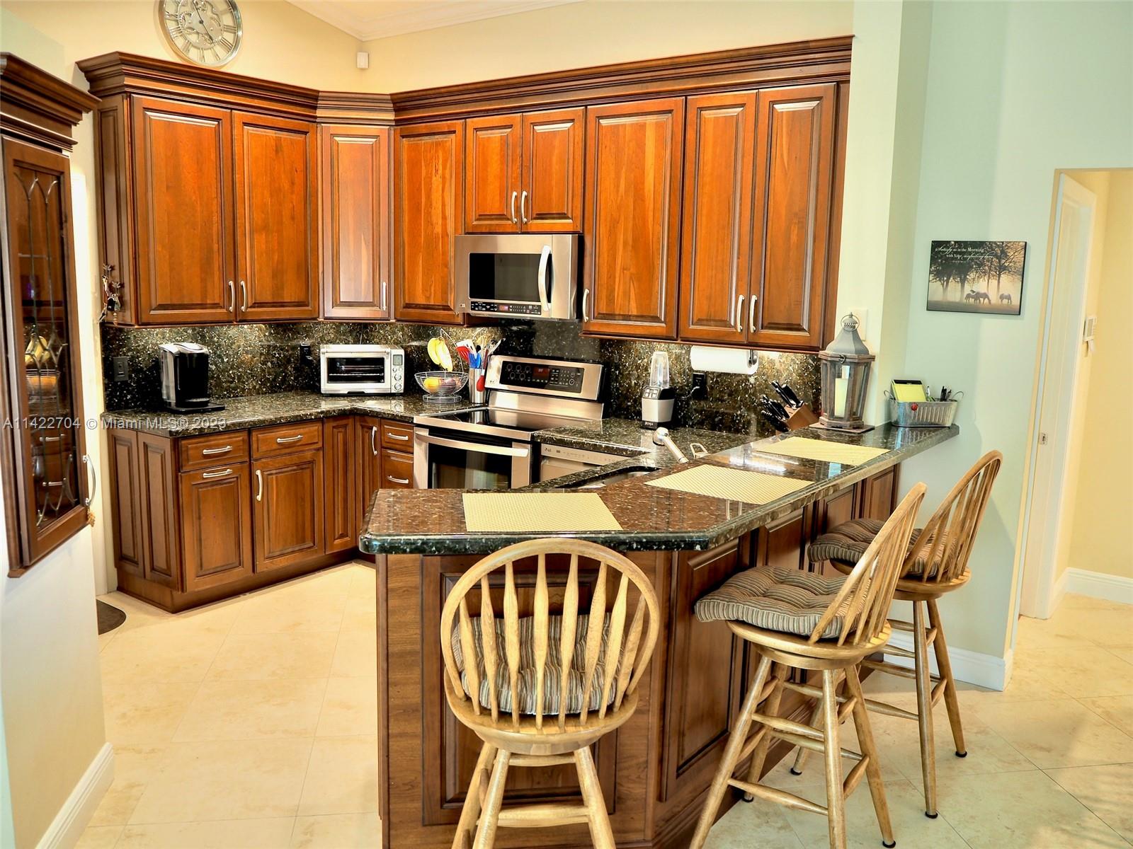 NEW ROOF!(2022), AC (2018), HIGH IMPACT GLASS WINDOWS! This beautiful, 3-bedroom, 2-bath, 2-CG, lake view home has everything you need in a beautiful setting. Some of the features are; 42" kitchen cabinets with soft-close drawers, crown molding in all rooms and hallways, 2" Hunter Douglas wood blinds, Ademco 4119DL security system (hard-wired with glass break and interior motion detection; contacts on all openings), House Wall Garage Systems cabinets and epoxy floor coating, exterior landscape lighting, screened front porch and patio, new rain gutters w. leafguard, ceiling fans, sprinklers, recent exterior paint and one of the best views in Weston. Easy access to 595 and 75. 20 minutes from Ft. Lauderdale airport, 15 minutes from Sawgrass Mall. THIS ONE HAS IT ALL!