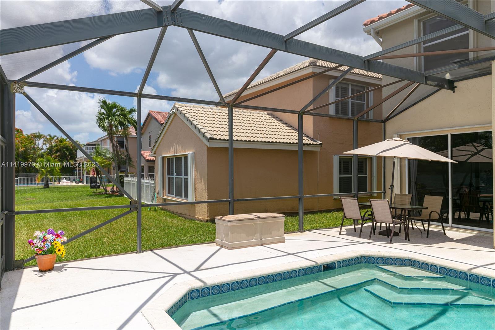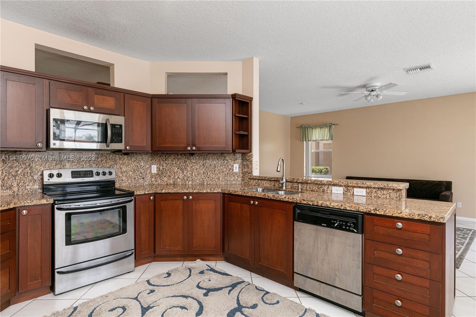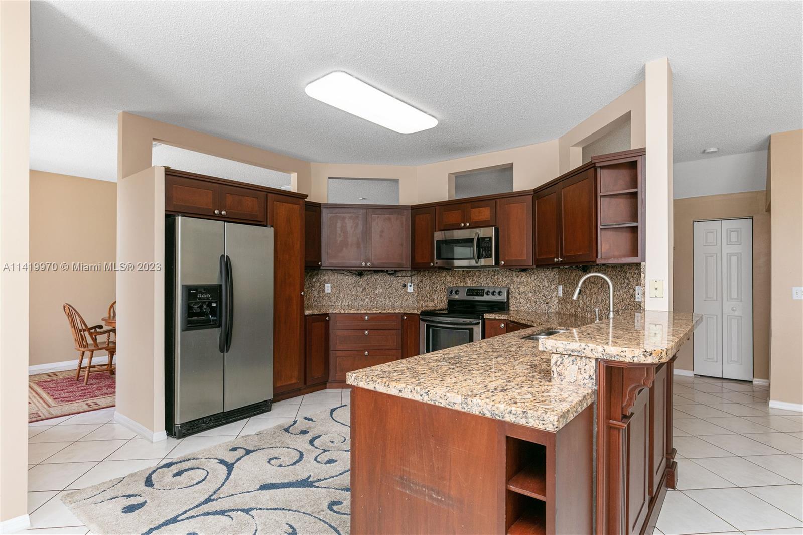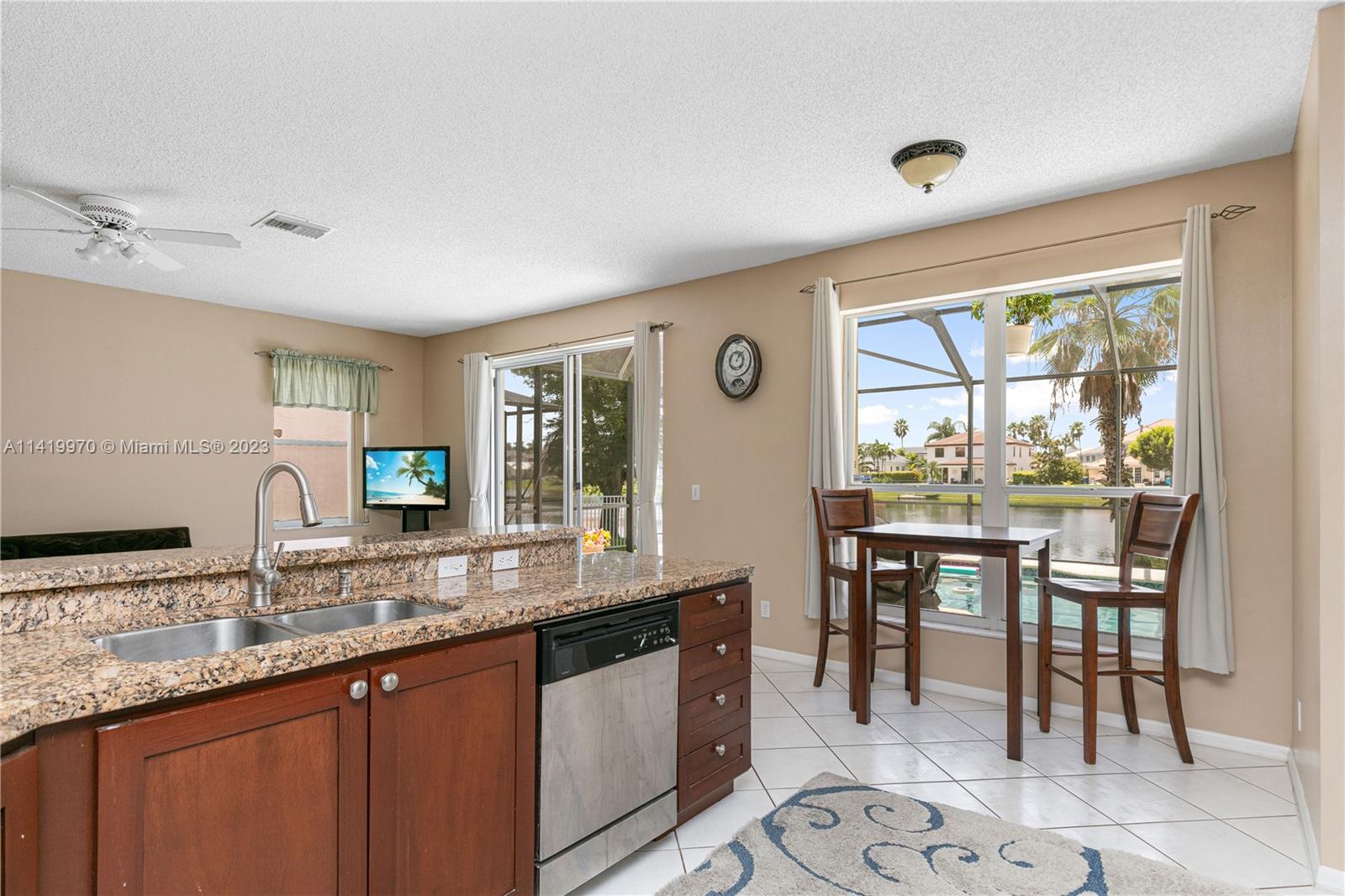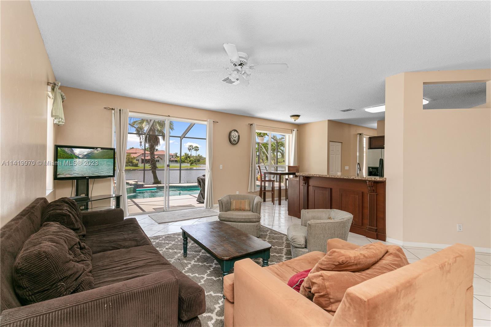 "Wow... what an incredible waterfront and pool home with numerous upgrades! This stunning property features beautiful wood cabinets, granite countertops, and stainless steel appliances. The walk-in pantry provides ample storage space, and the energy-saving A/C (2013) and water heater (2012) help reduce utility costs. Additionally, a sprinkler pump that utilizes lake water (2014), an auto chlorinator and energy-efficient pump for the pool and spa (2014), accordion shutters, a new roof 2022, painted exterior 2023. You'll find plenty of extra storage throughout the home. This property is situated in a well-maintained community, close to top-rated schools, shopping, restaurants, and i-75. Don't miss out!"