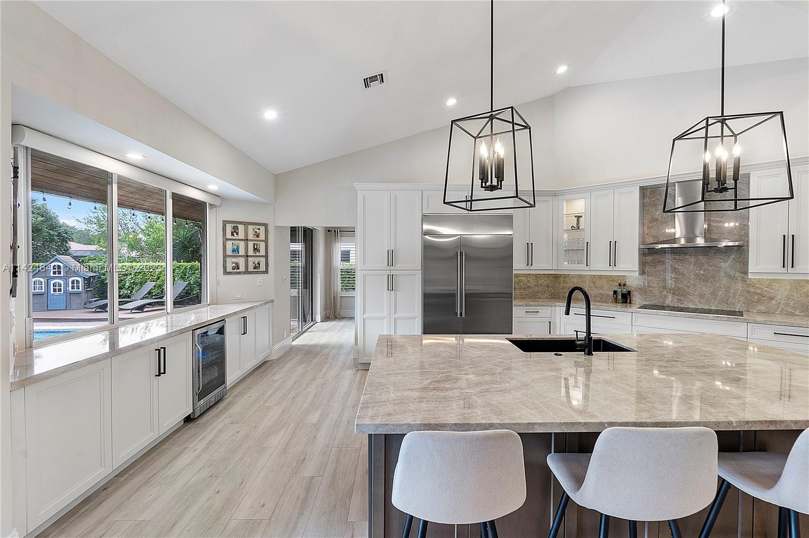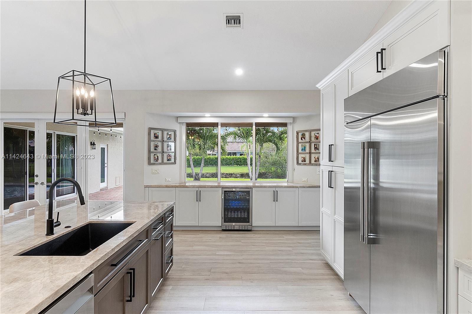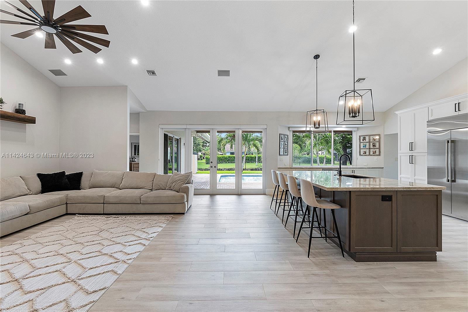 Amazing 4 Bed 2.5 Bath Waterfront Pool Home In Prestigious Pine Ridge Coral Springs. Featuring A Large Open Split Floorplan W/ Living, Dining & Family Rooms. Over 3000 Sq Ft, Impact Windows, Doors, & Garage Door. Upgraded Custom Kitchen Has Large Island W/ Storage & Seating, Quartzite Counters & Backsplash 48" Built-in Monogram Refrigerator. Wood Cabinets, Under & Upper Lighting. Wine Fridge, Double Wall Oven, & Induction Cooktop. Wood-look Plank Tile In Common Areas And Luxury Vinyl In Bedrooms. Primary Suite W/ Dual Walk-In Closets, Large Bathroom W/ Dual Sink Vanity, Roman Tub & Shower & Water Closet. 3 Other Bedrooms Share Updated Hall Bath W/ Dual Sink Vanity. Custom Shiplap Wall Feature. Outdoor Summer Kitchen, Pool Safety Fence, Renovated Salt Pool, New Pool Pump, Widened Driveway.