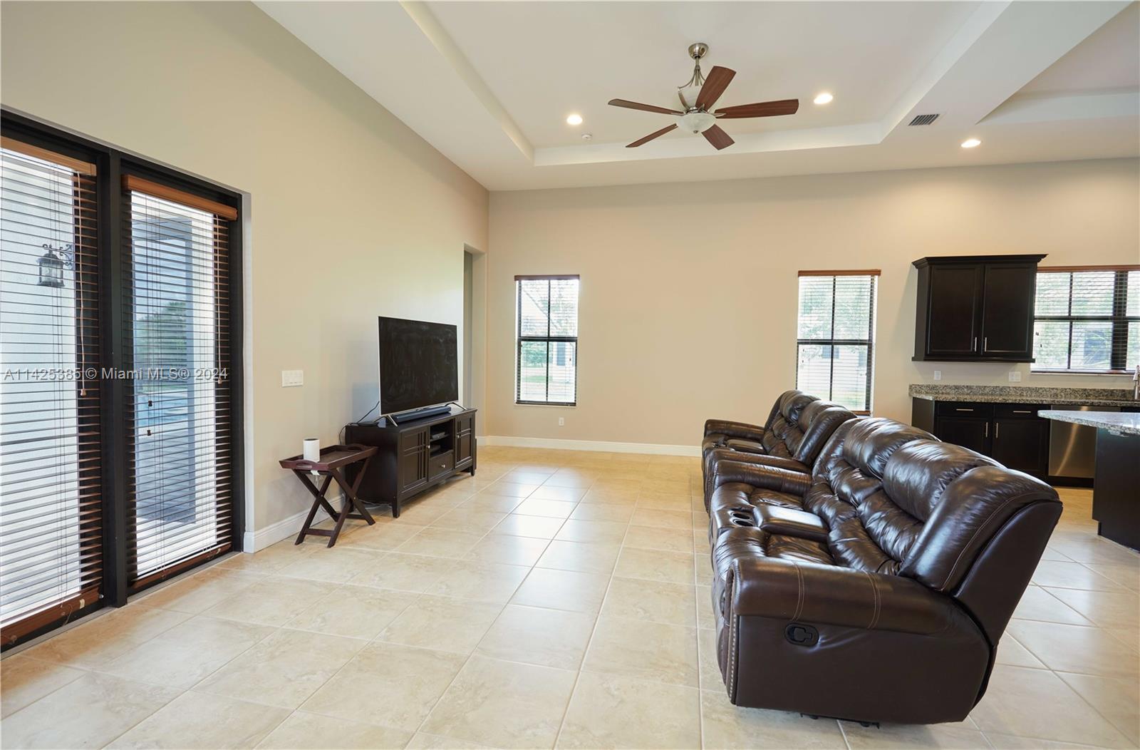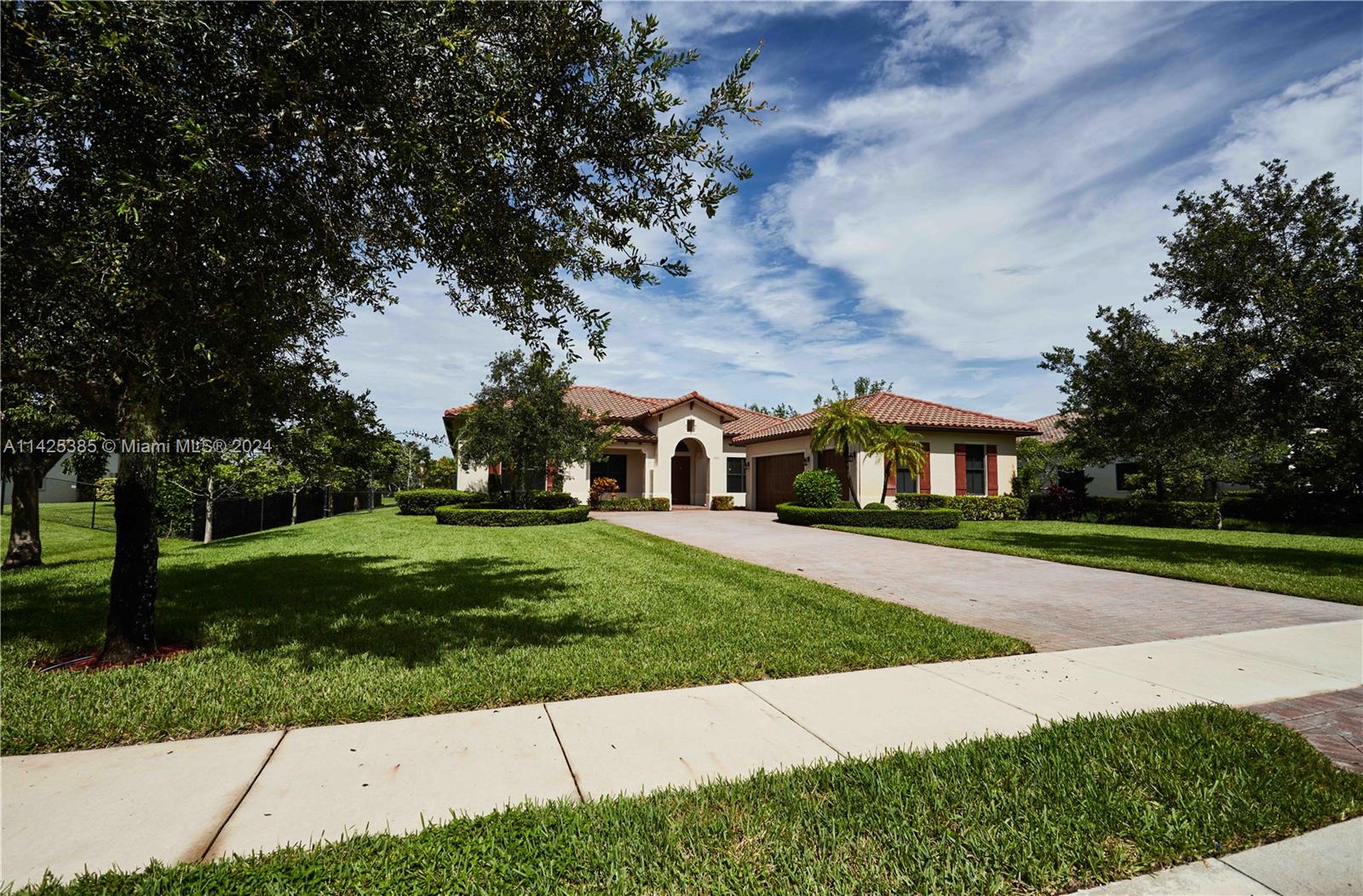 Welcome to Parkside Estates, a boutique luxury gated community in Davie, offering charm, beauty, security & privacy! This stunning Estate Home sits on a premier large lot just under an acre, featuring an expansive main bedrm w/ extra bonus room (library or gym), an oversized main bathrm w/ jacuzzi tub & shower, 3 bedrooms, large office, grand chef's kitchen w/ a huge island, SS appliances & granite counters, accompanied by a walk-in pantry. Troughout the home, 12' coffered ceilings, porcelain tile & wood lam. flrs exude elegance. The outdoors boast a large waterfall pool & deck, overlooking a vast backyard w/ water features & mesmerizing sunset views. Conveniently located next to parks(pickle ball, tennis, soccer, olympic pool, baseball) dining, shopping, major hwys, & Nova U.