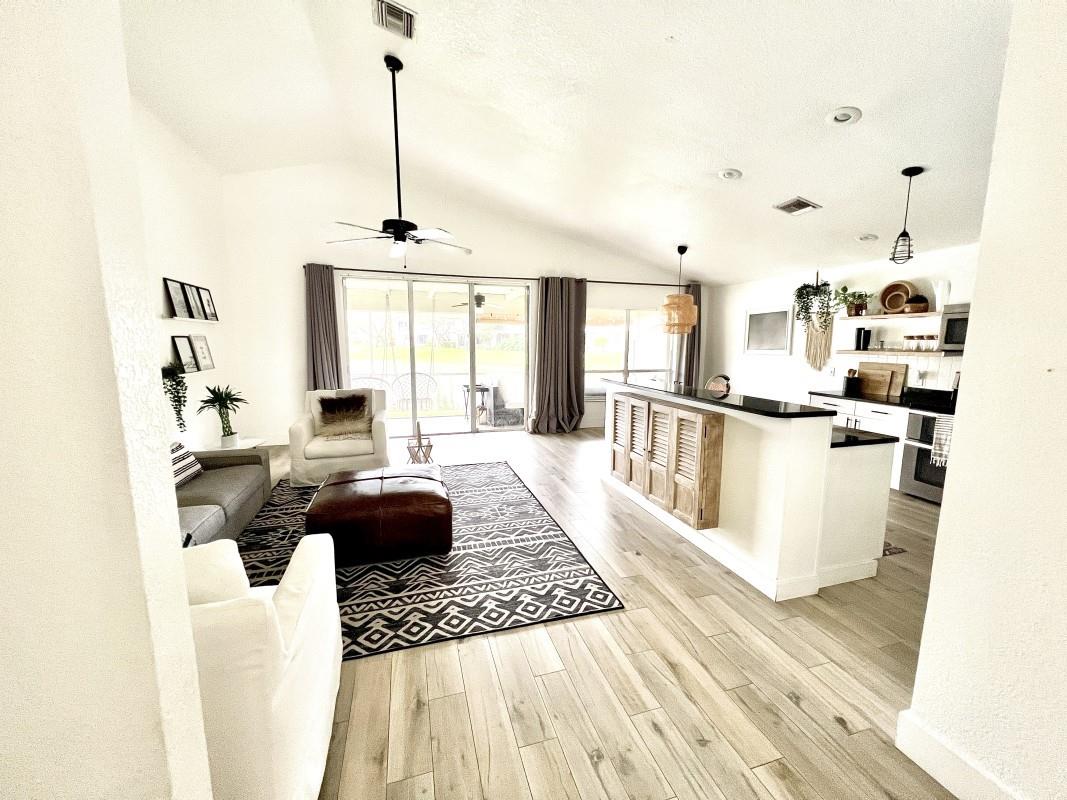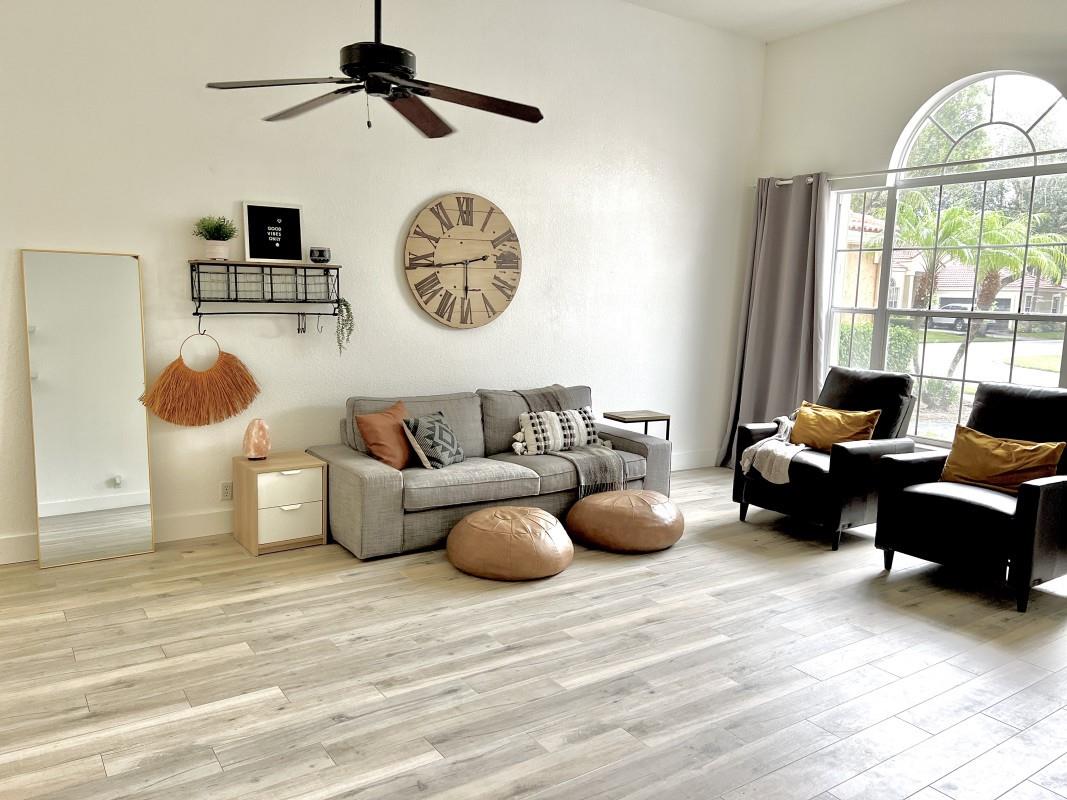 Fully Furnished with complete home gym! This 3/2, 2364 sq. ft gem! Open concept design, vaulted ceilings & tons of natural light! Tranquil lake view. Recently renovated spa-like bathrooms. Dreamy kitchen! Sliding glass doors to screened-in patio for entertaining. Eye-catching porcelain tile floor! Primary has 2 walk-in closets. Private fenced-in side yard with artificial turf. Move-in ready! Nearby: places of worship, Parkland schools, & Terramar Park. A rare Parkland beauty!